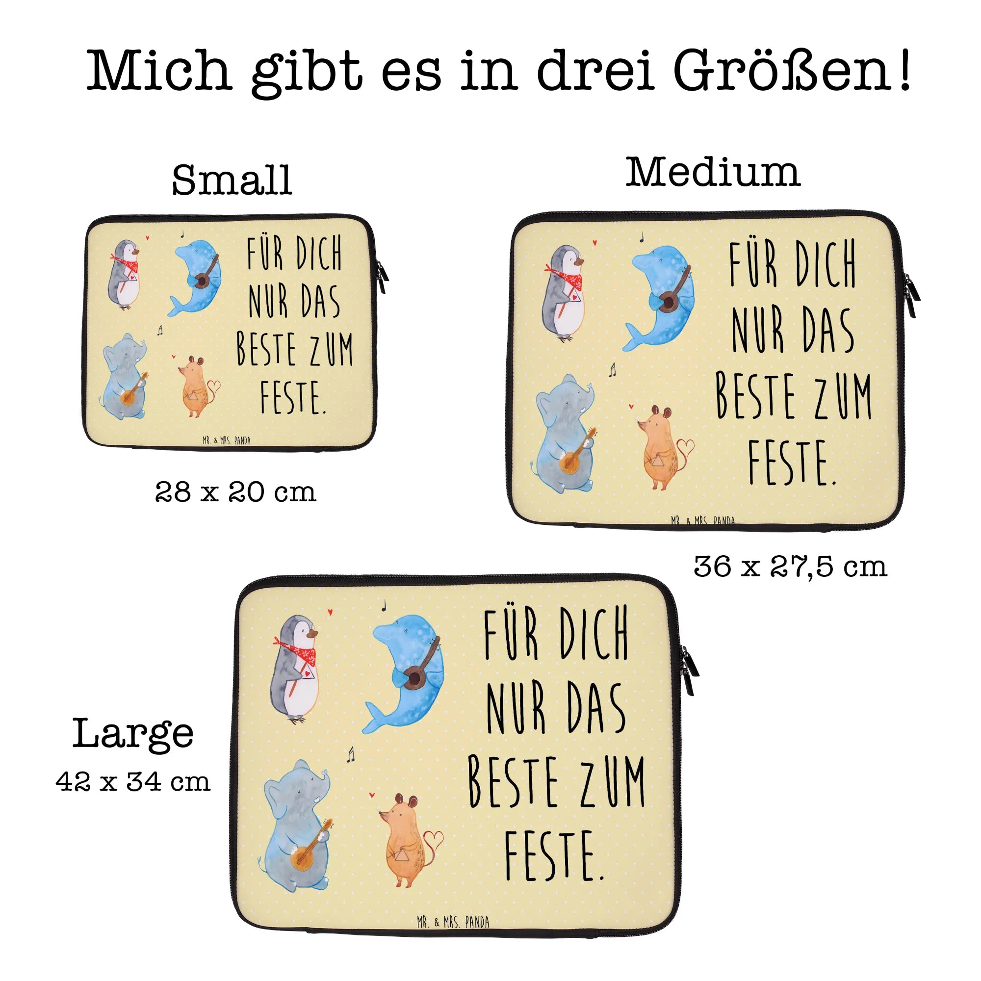 Die perfekte Notebook Tasche für Musikliebhaber ist hier! Unsere Notebook Tasche mit dem fröhlichen Big Band Motiv von Mr. & Mrs. Panda bringt nicht nur Farbe in dein Leben, sondern schützt auch dein geliebtes technisches Gerät. Egal ob beim Reisen, im Café oder im Büro - diese praktische Computertasche ist der ideale Begleiter für alle, die viel unterwegs sind.