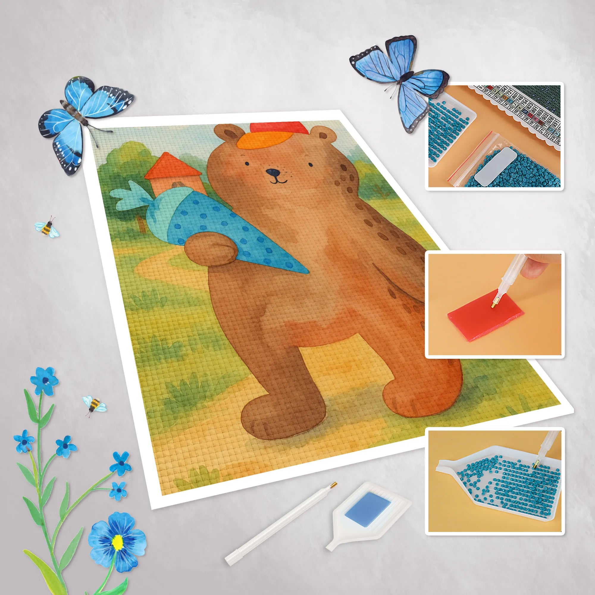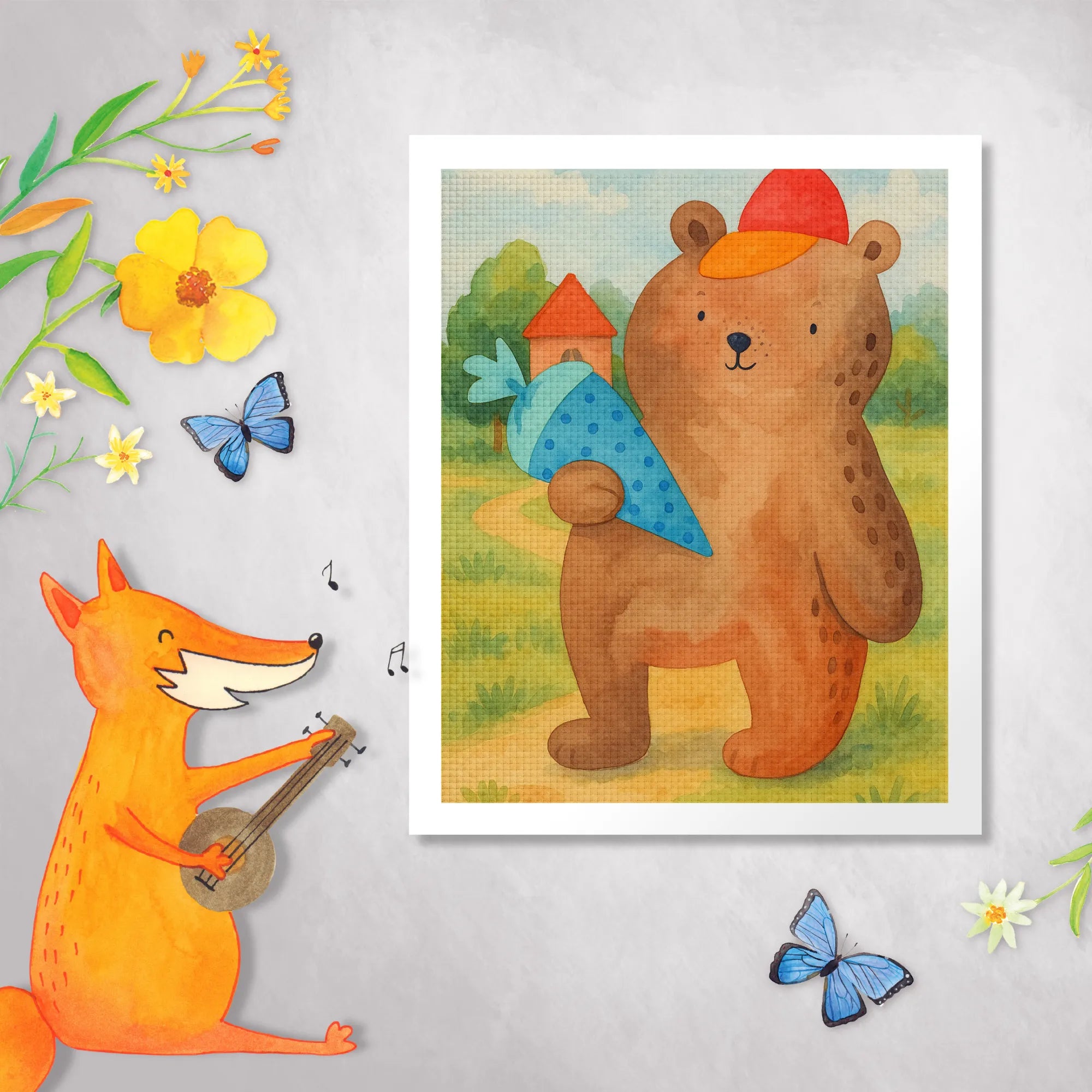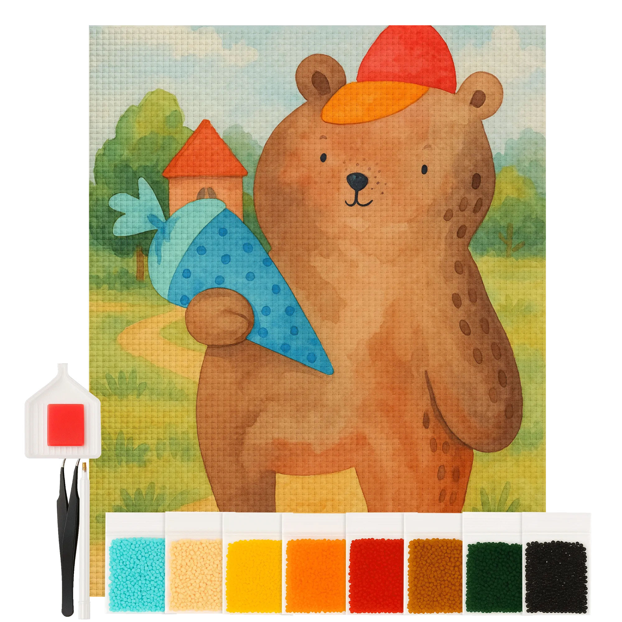 Obraz diamentowy Niedźwiedź Torebka szkolna Design - Bez ramki