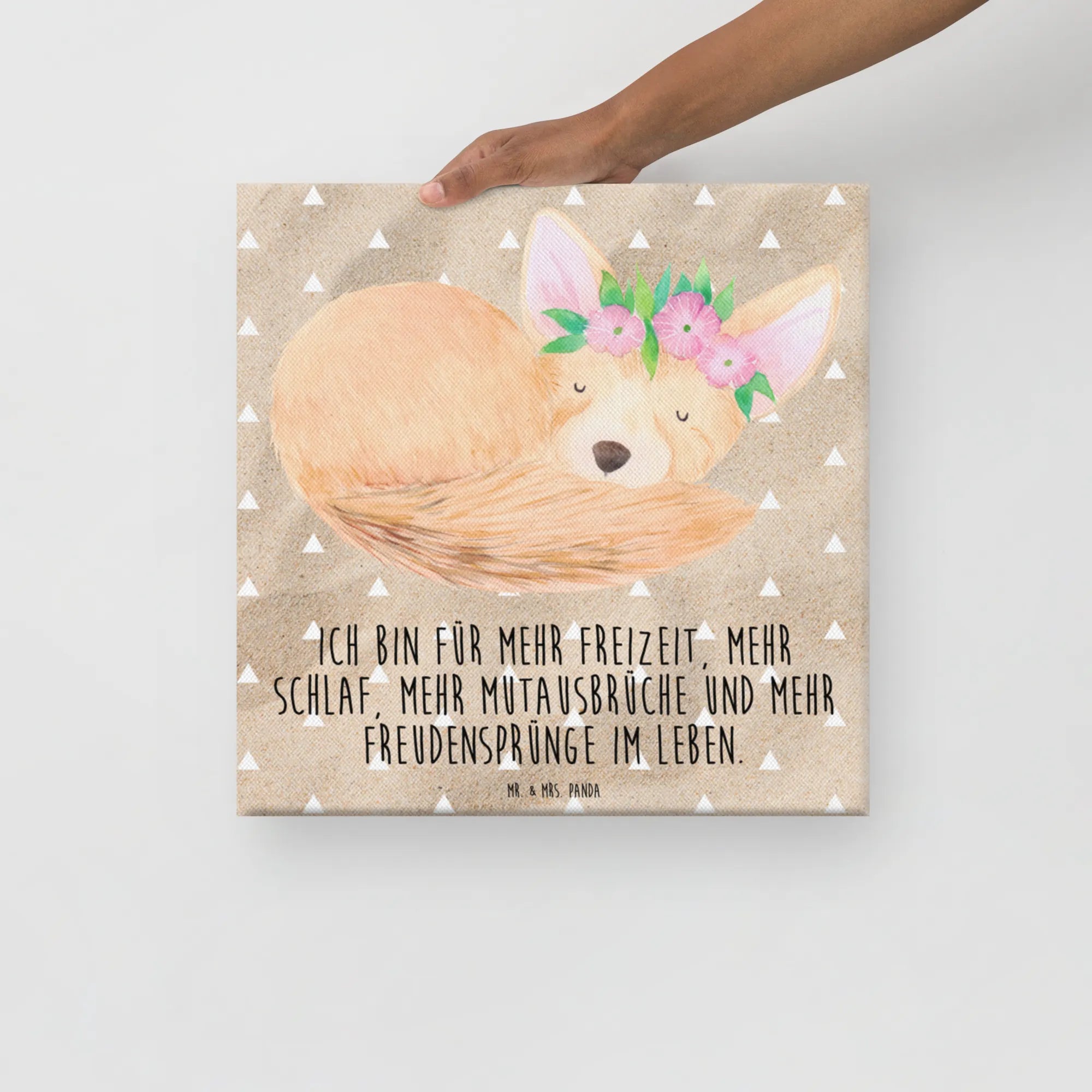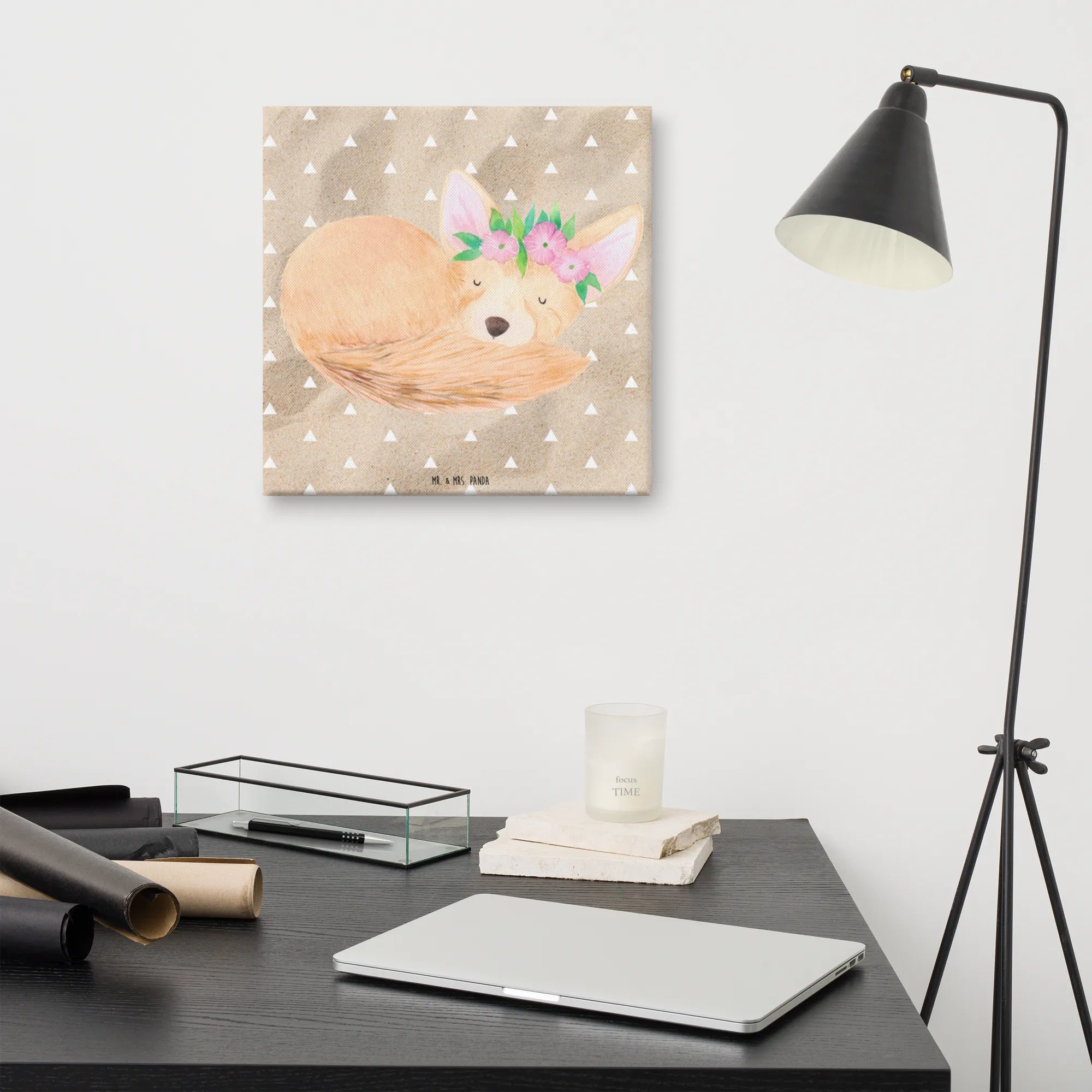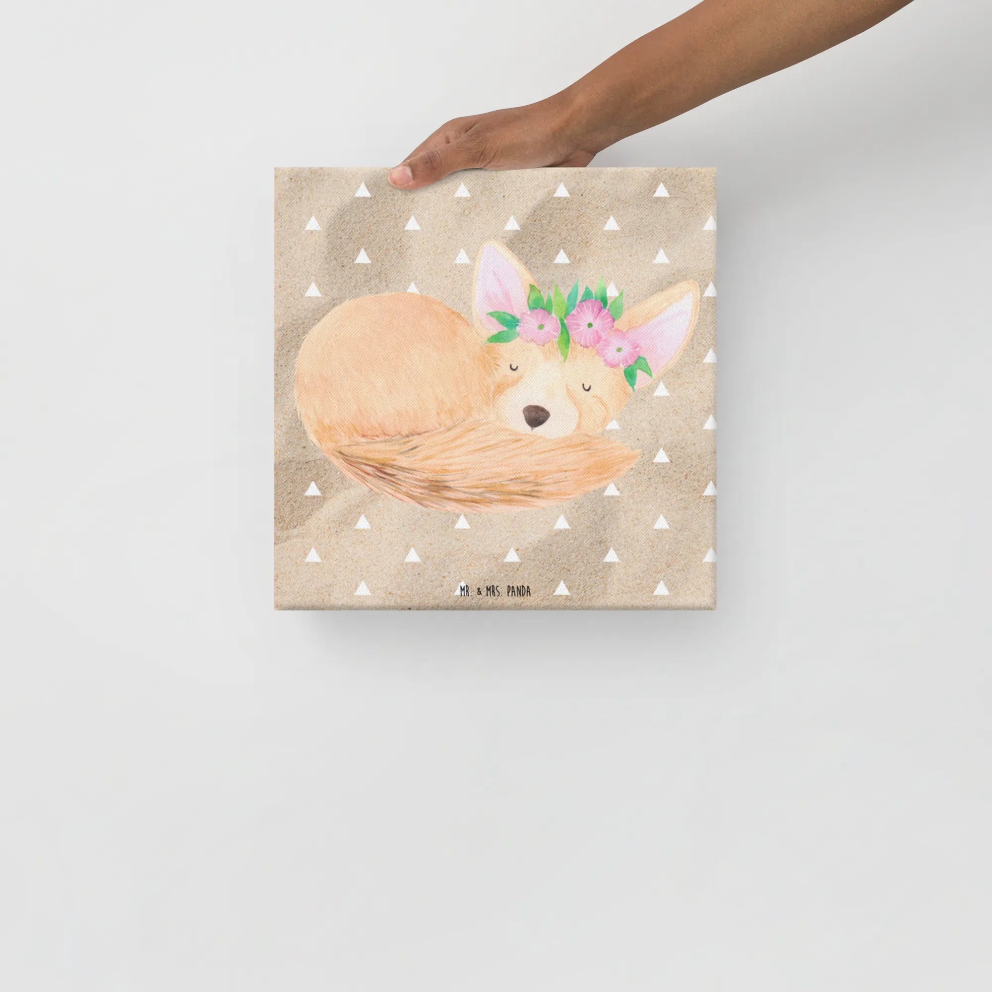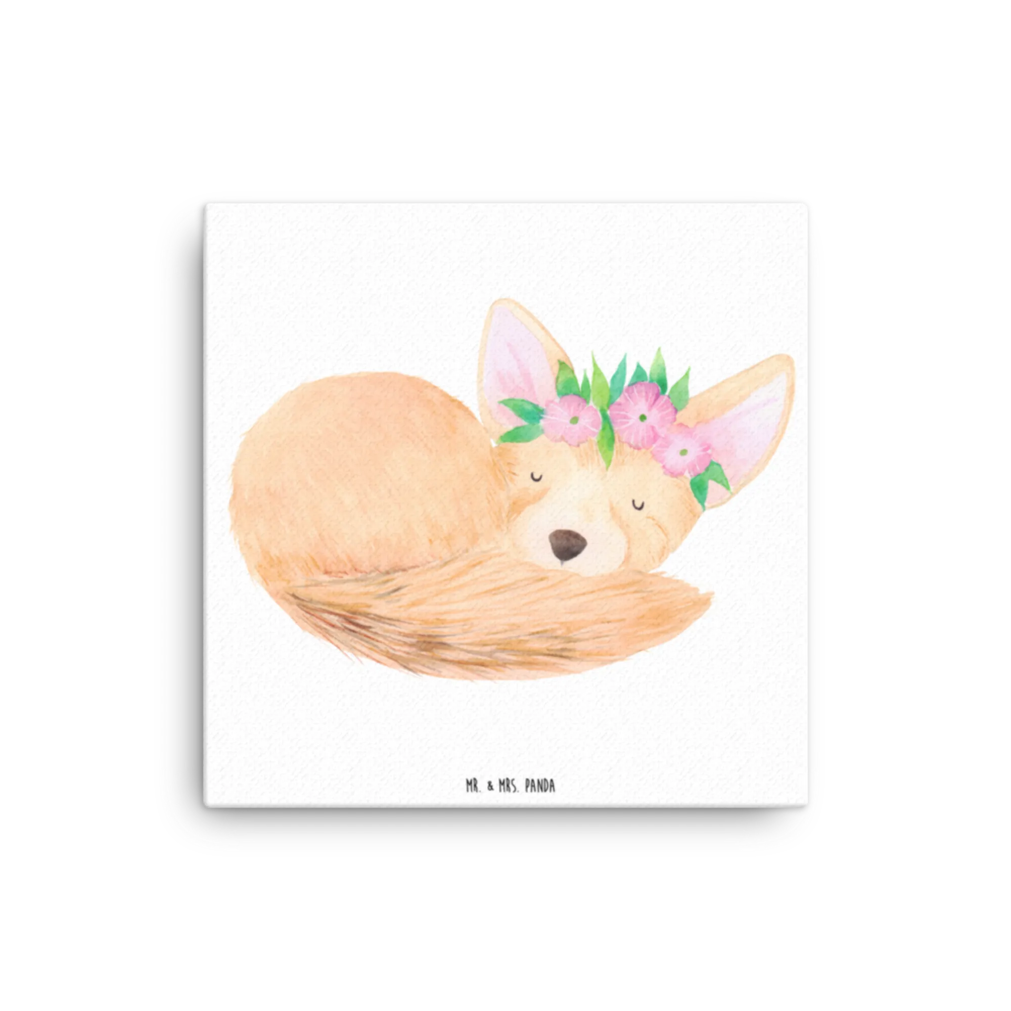 Obraz na płótnie lis pustynny kwiaty - 40 x 40 cm - z napisem - biały
