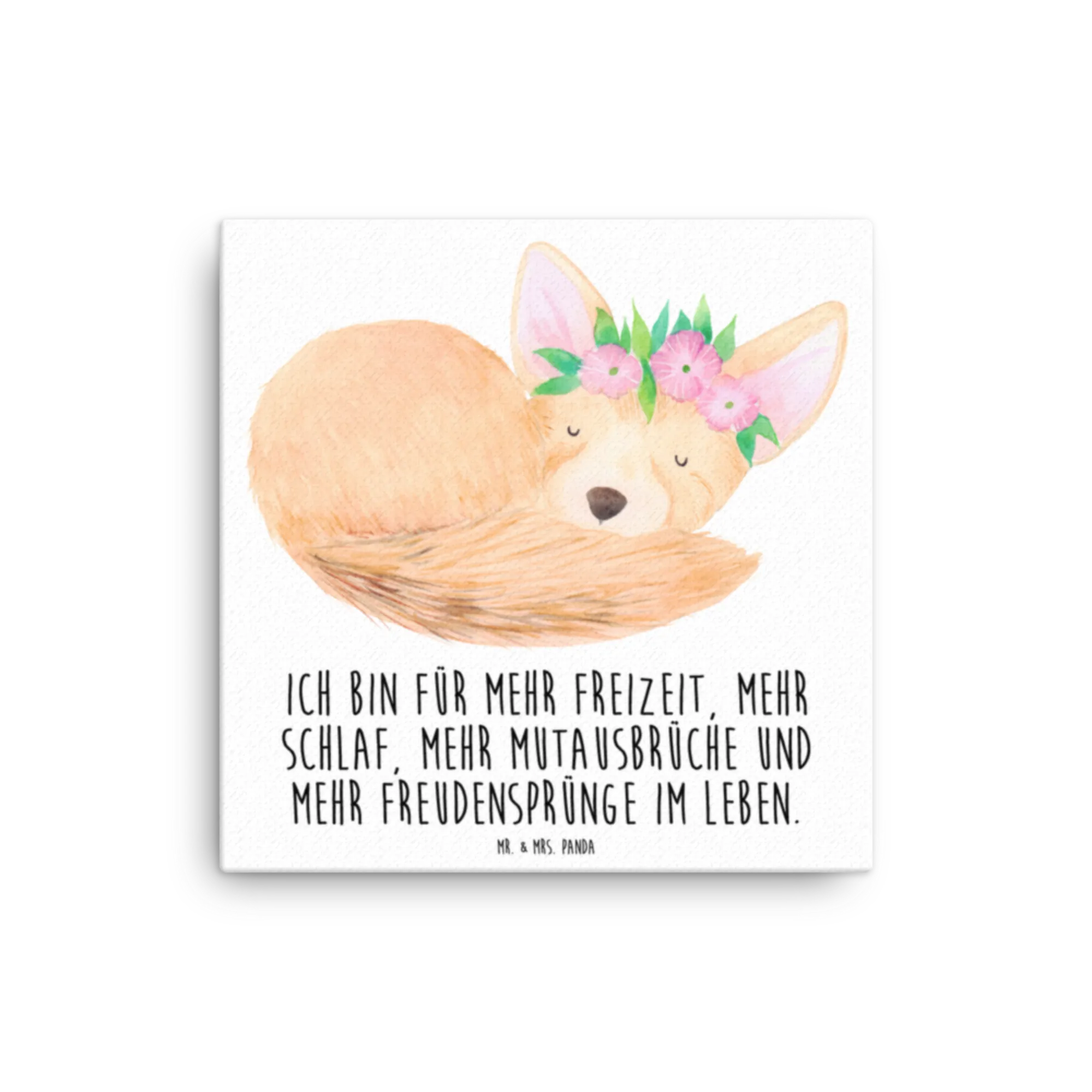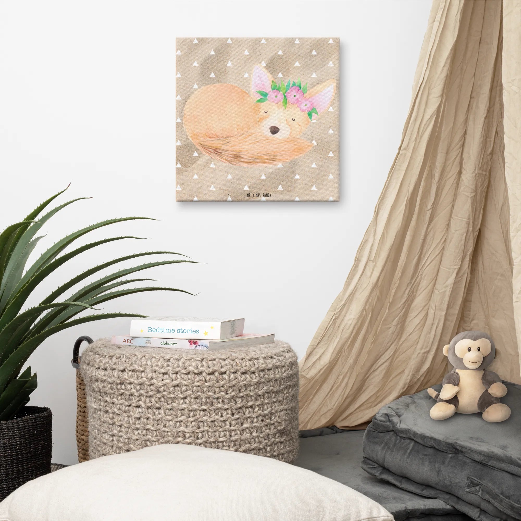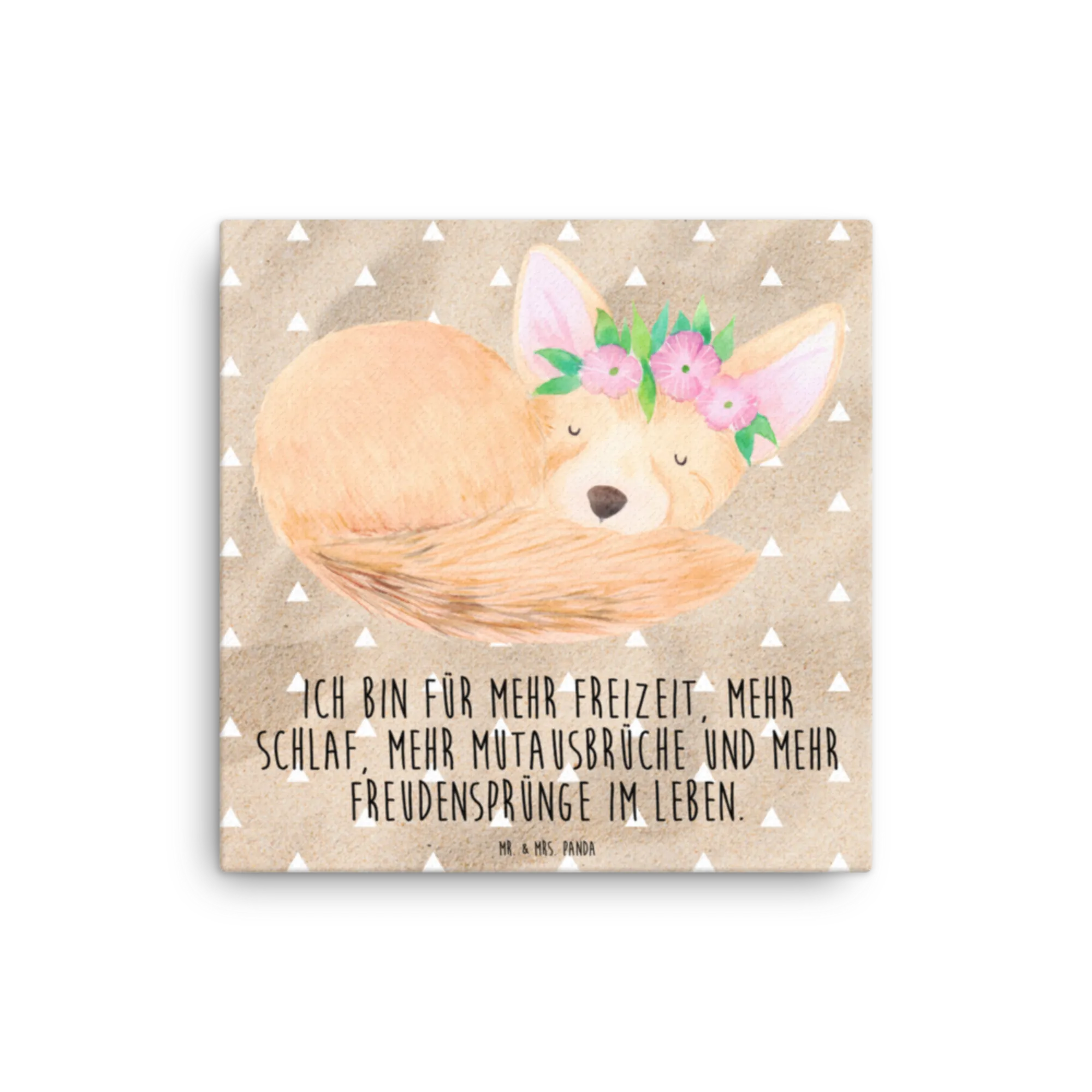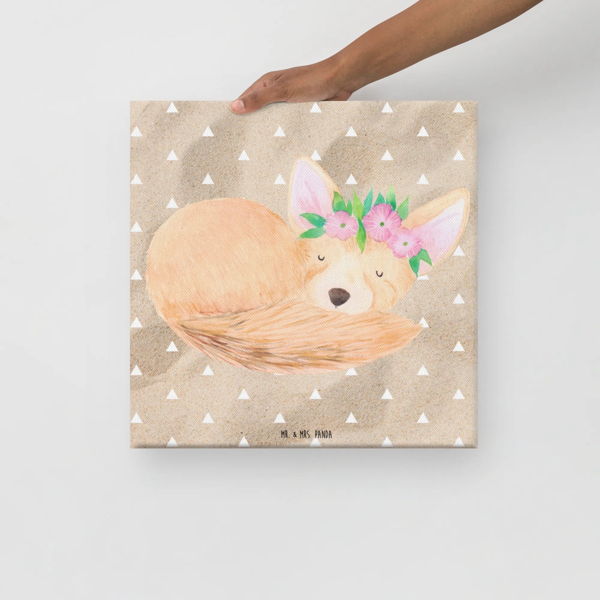 Obraz na płótnie lis pustynny kwiaty - 40 x 40 cm - z napisem - biały
