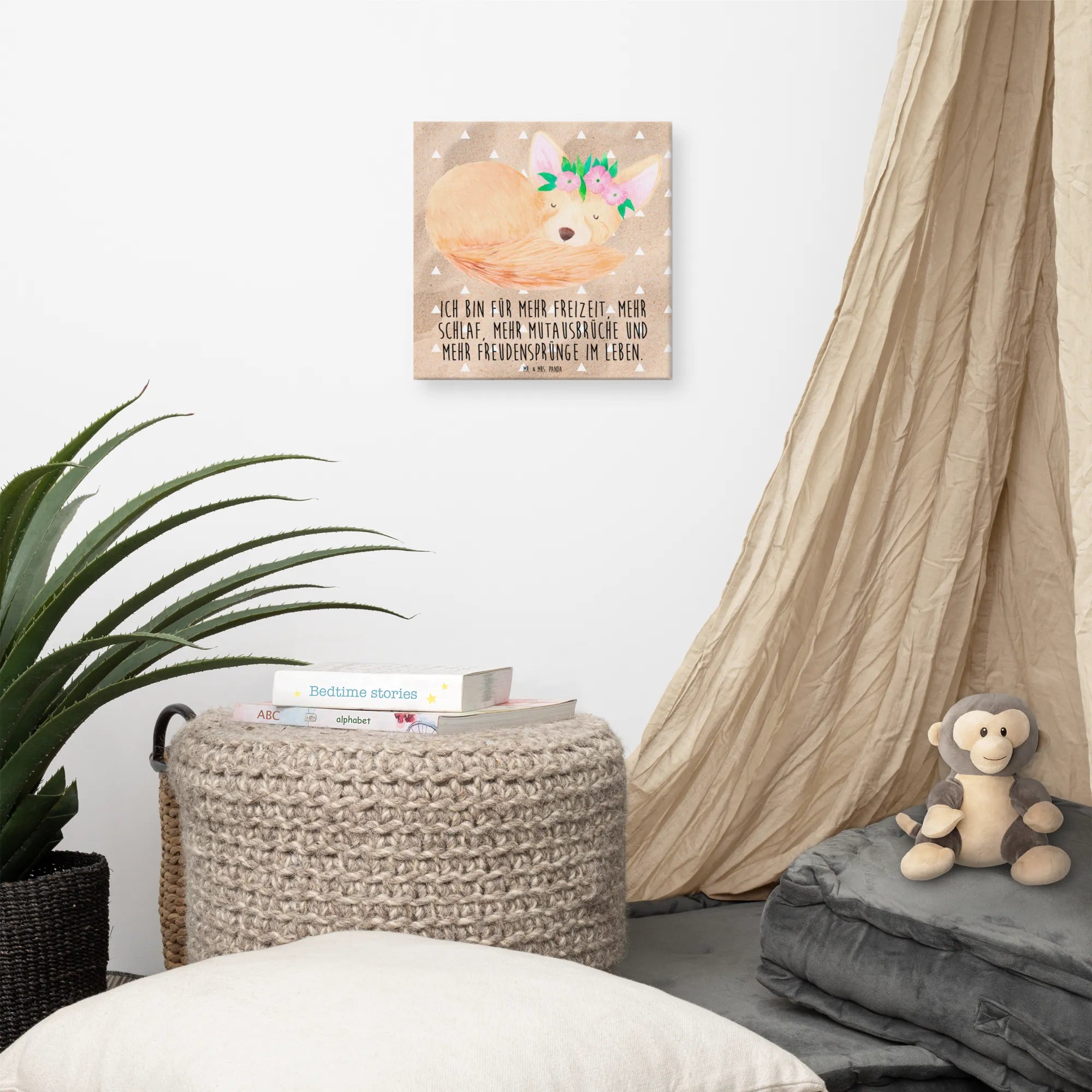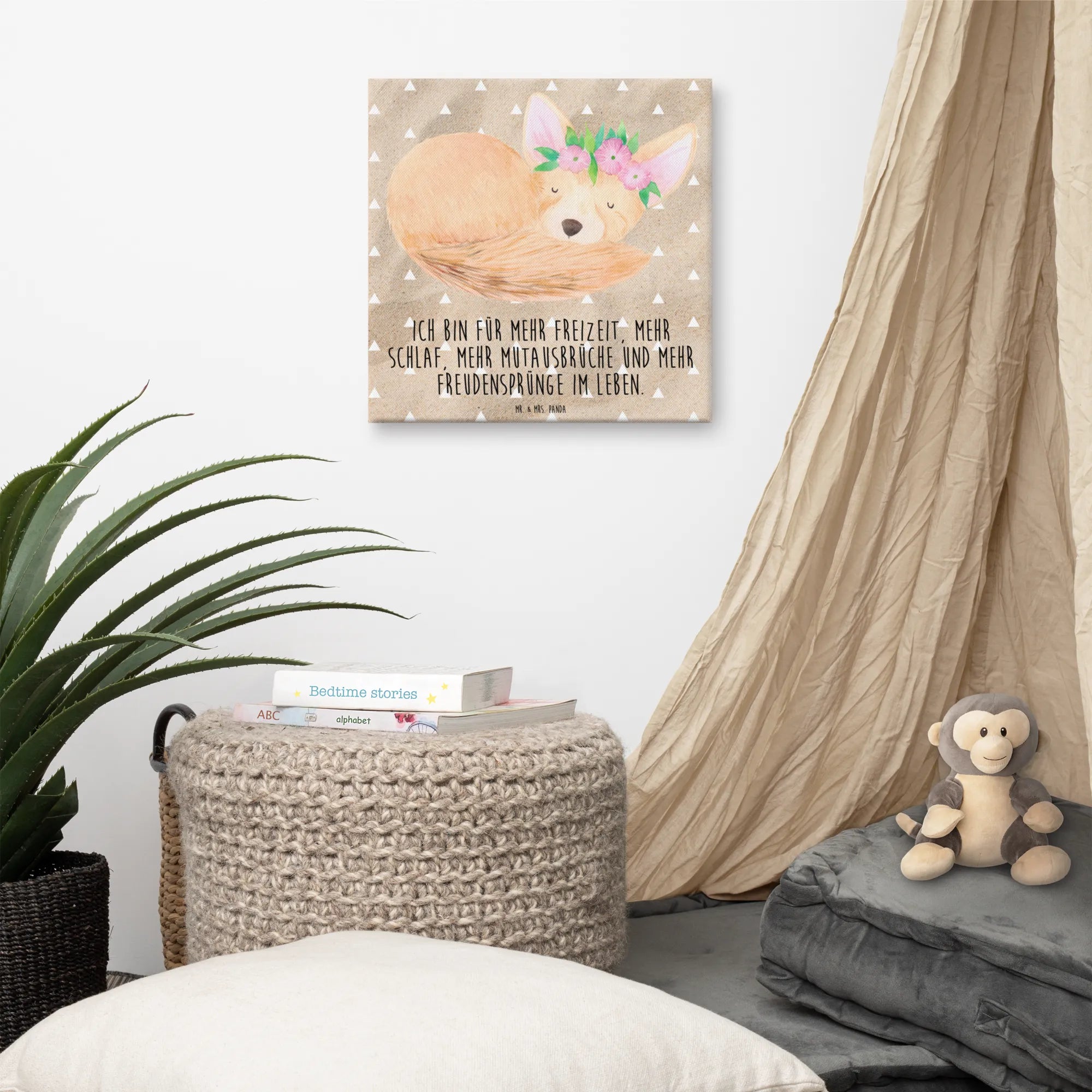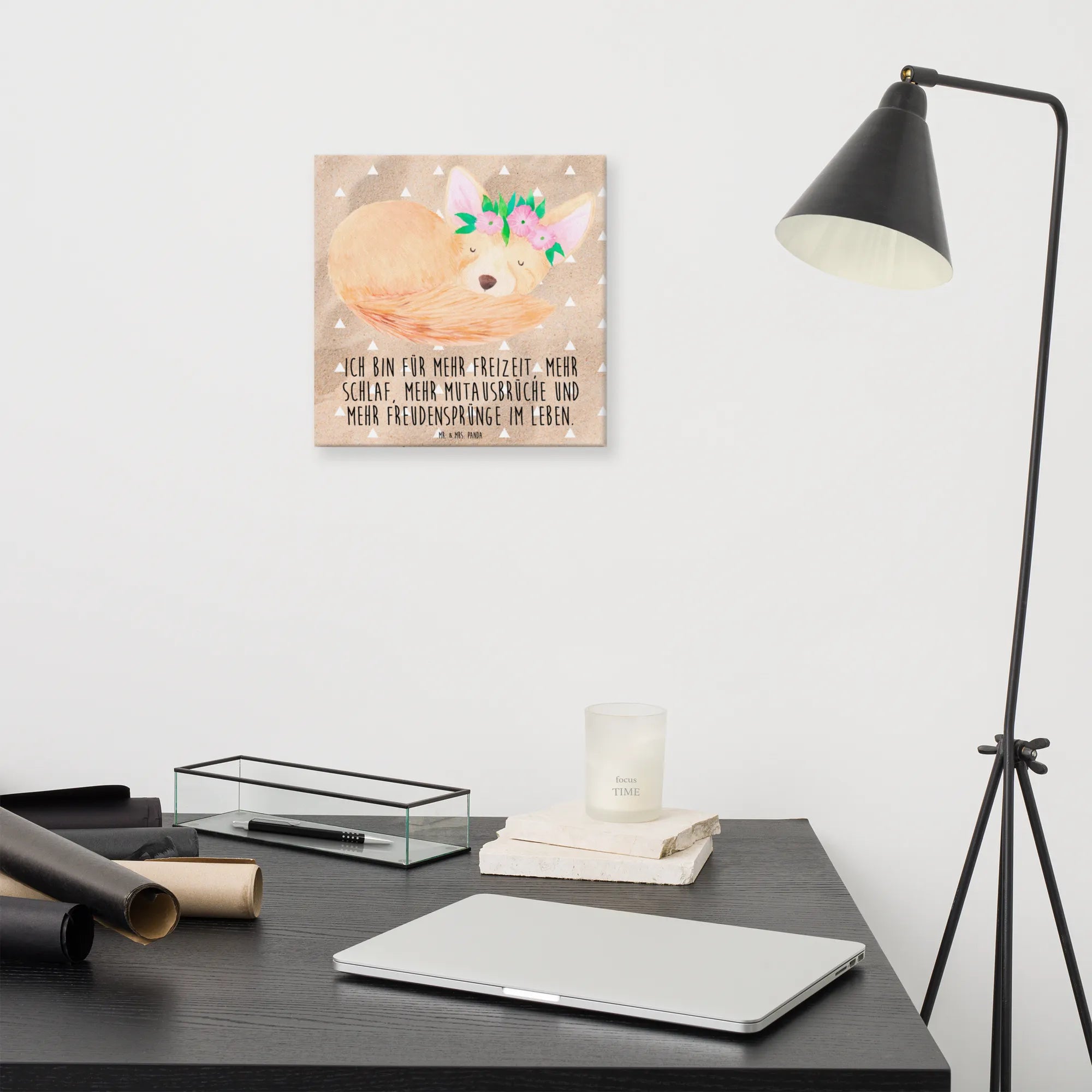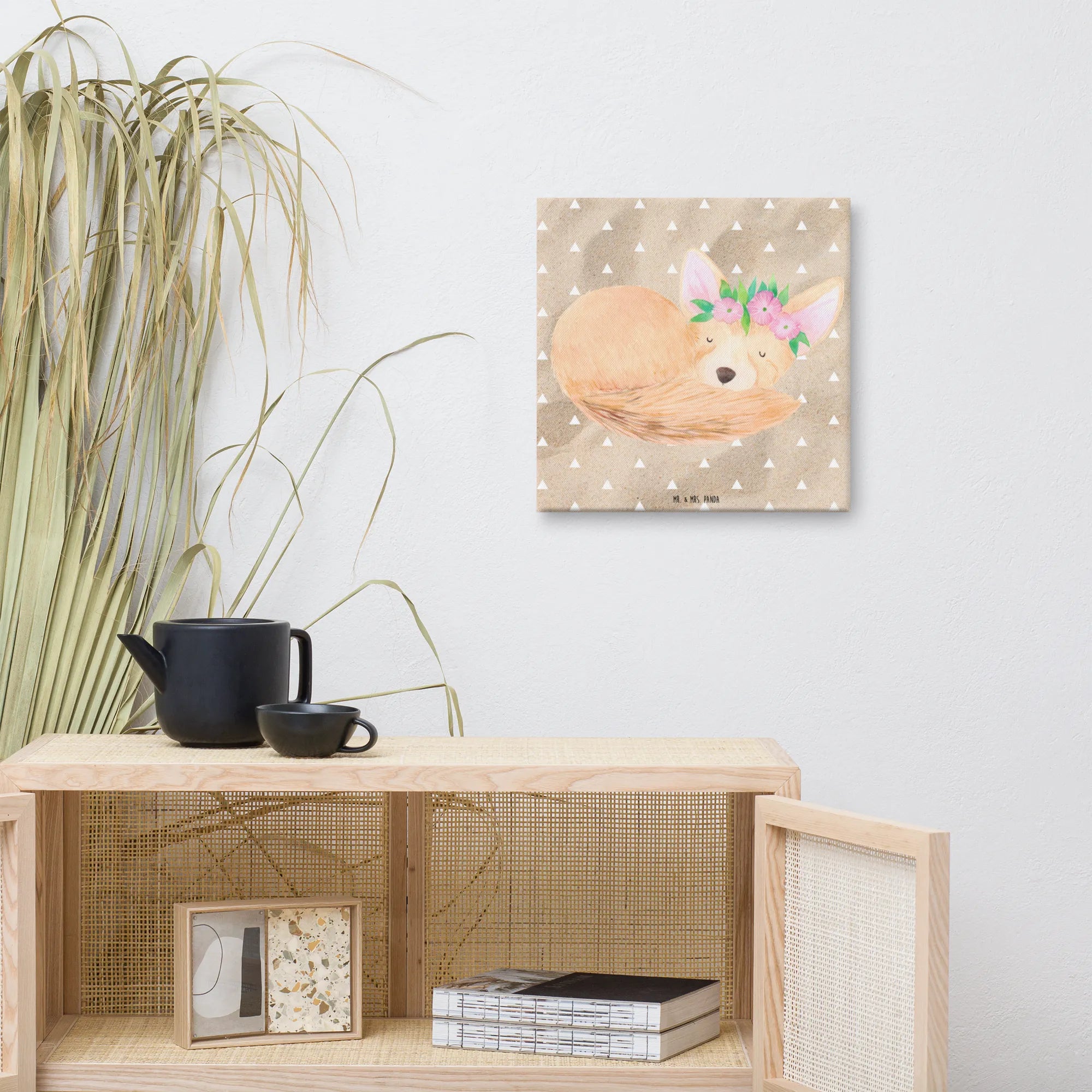Obraz na płótnie lis pustynny kwiaty - 40 x 40 cm - z napisem - biały