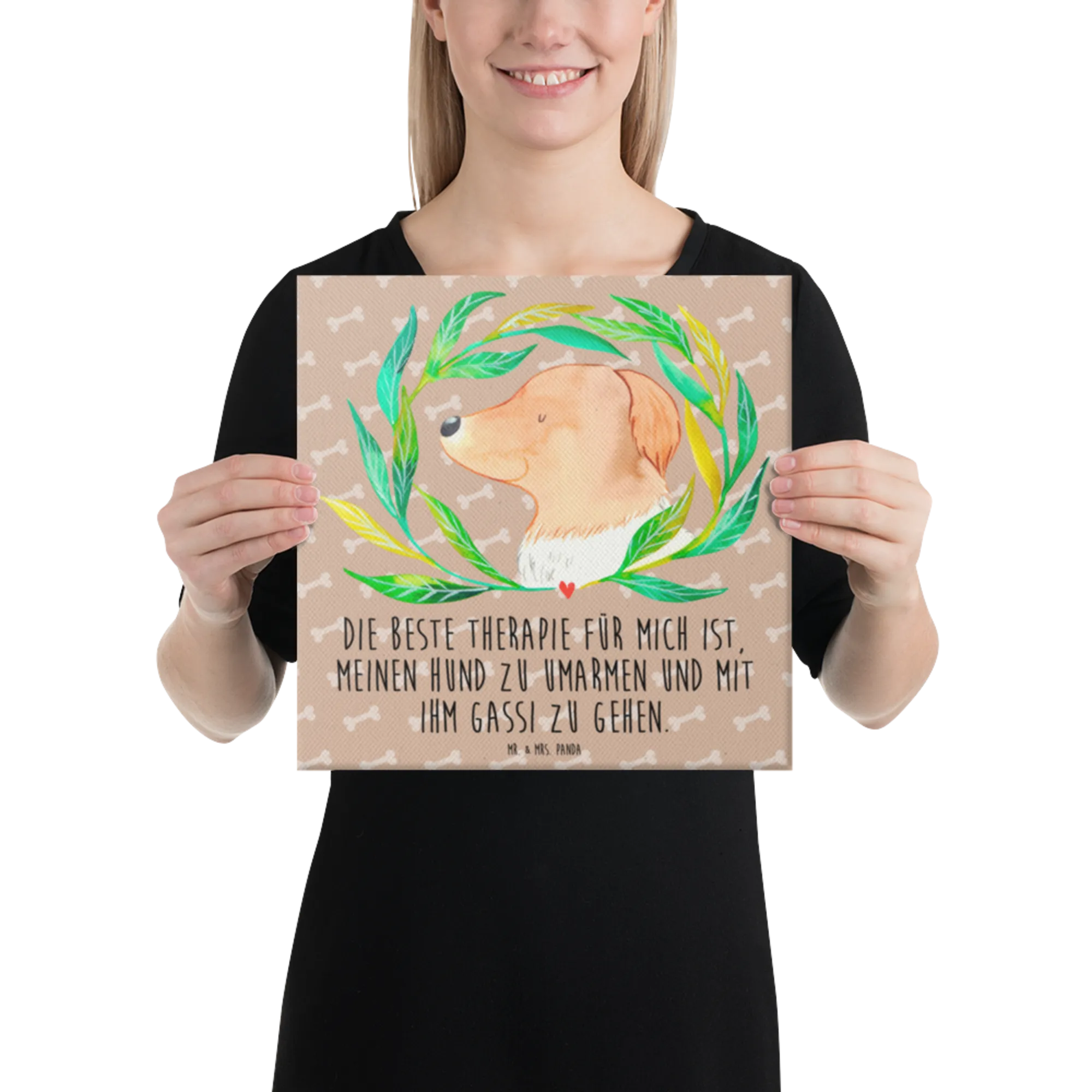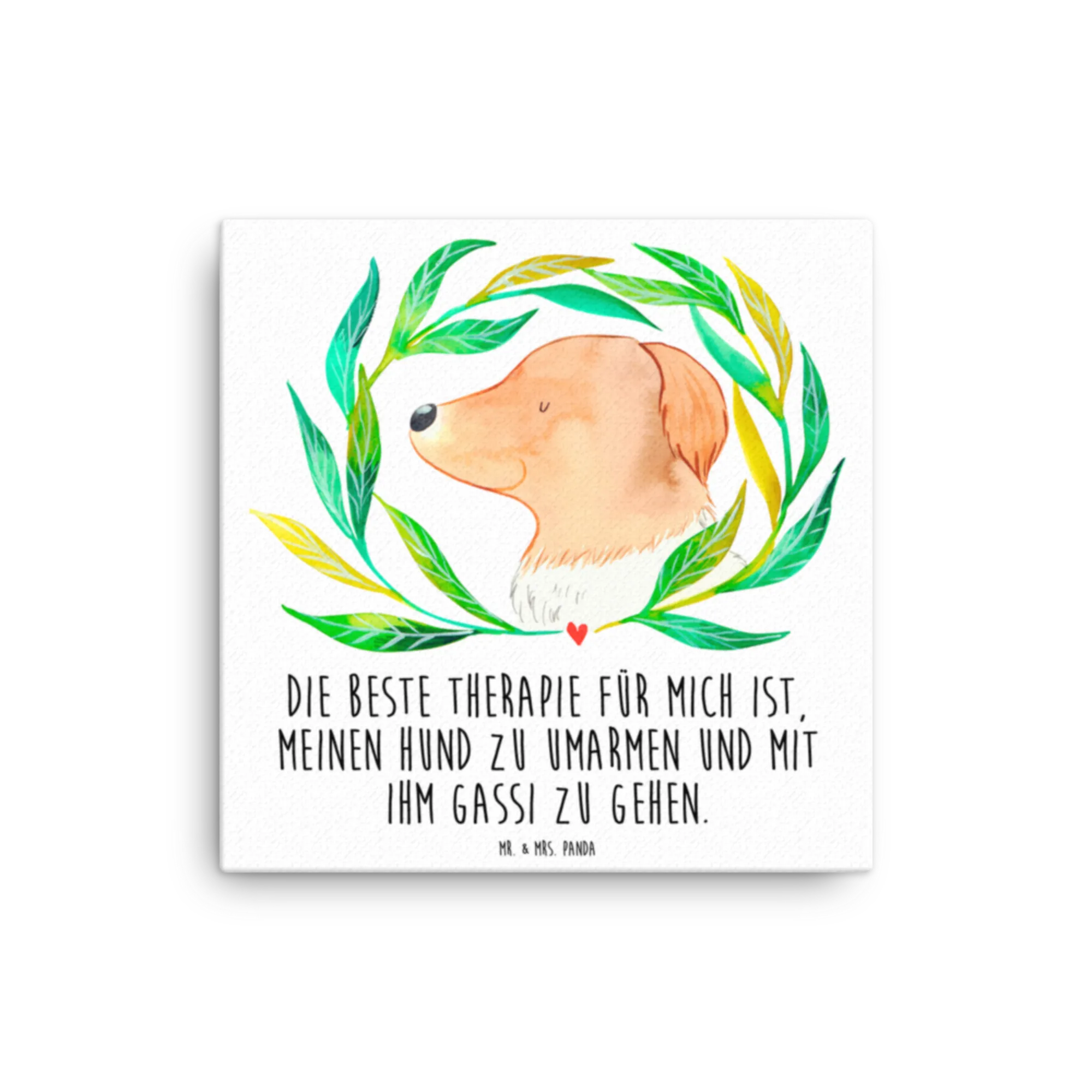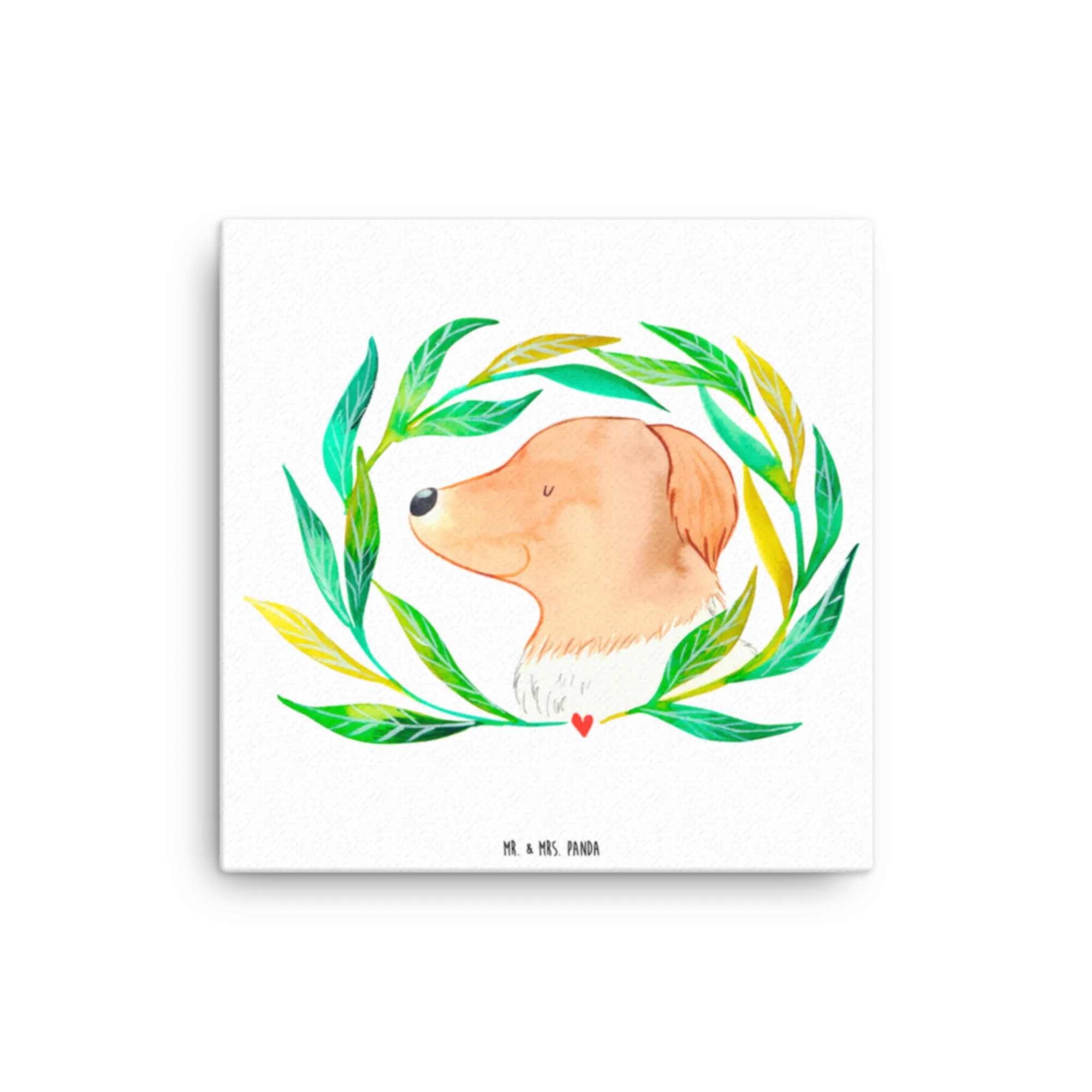 Obraz na płótnie pies kwiaty - 40 x 40 cm - z napisem - biały