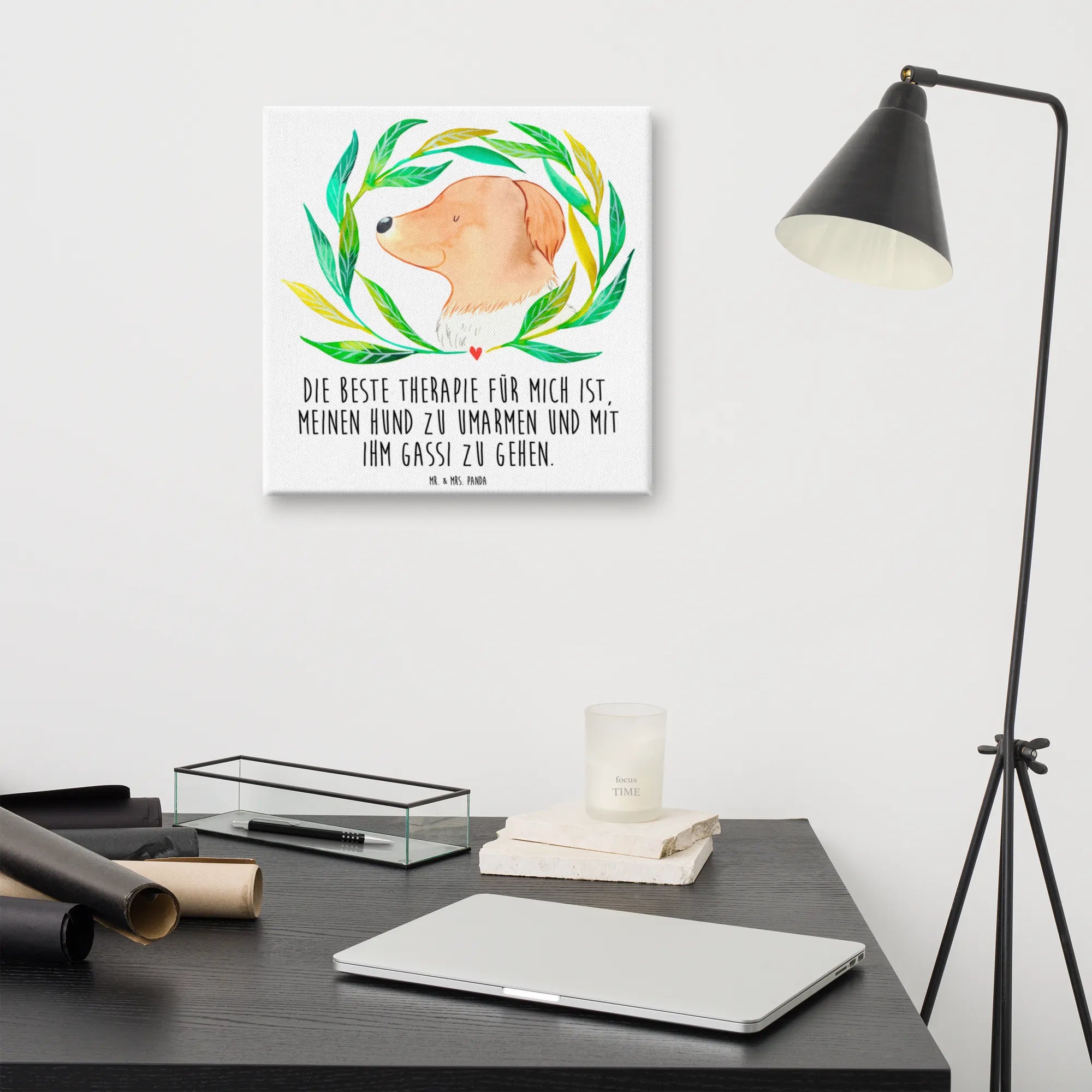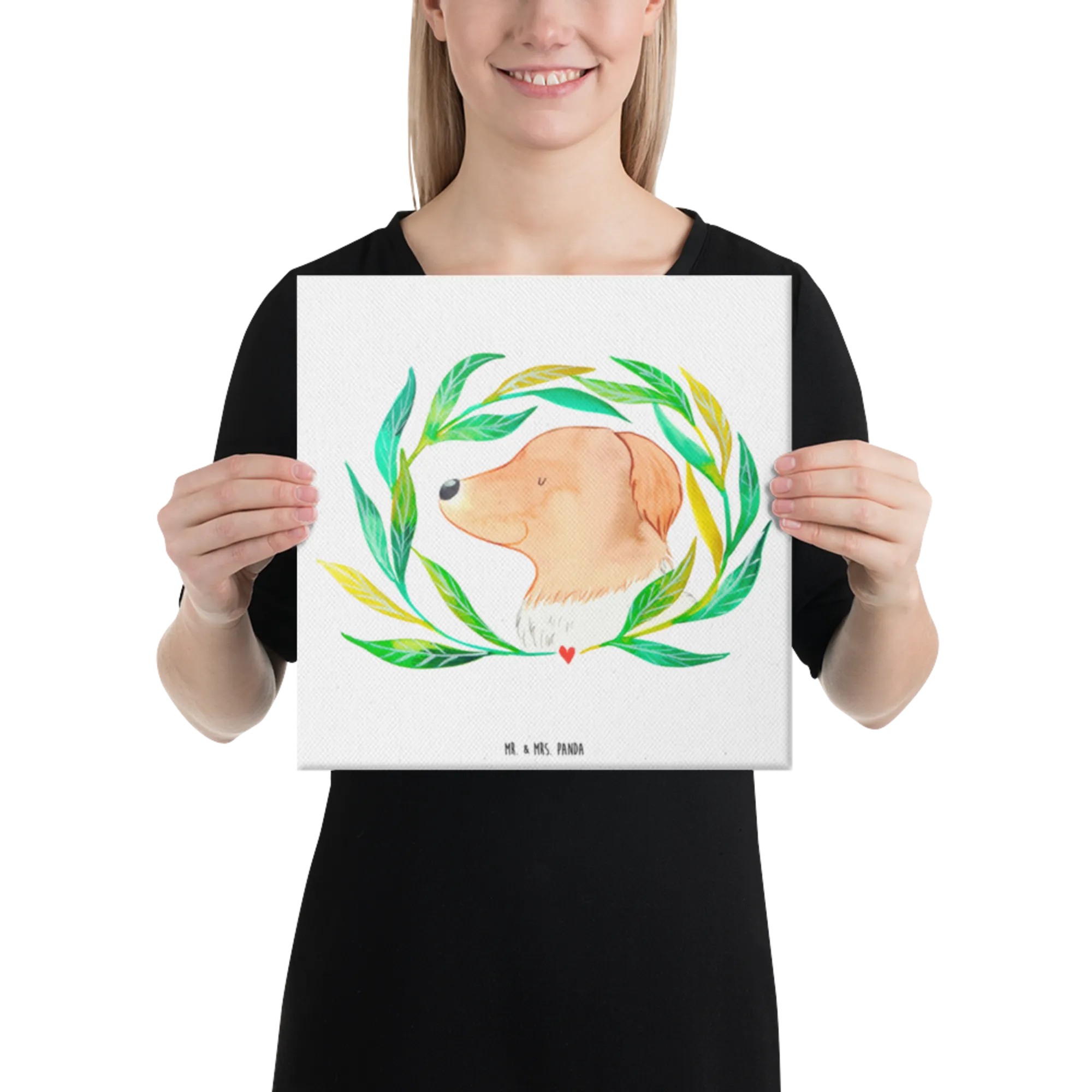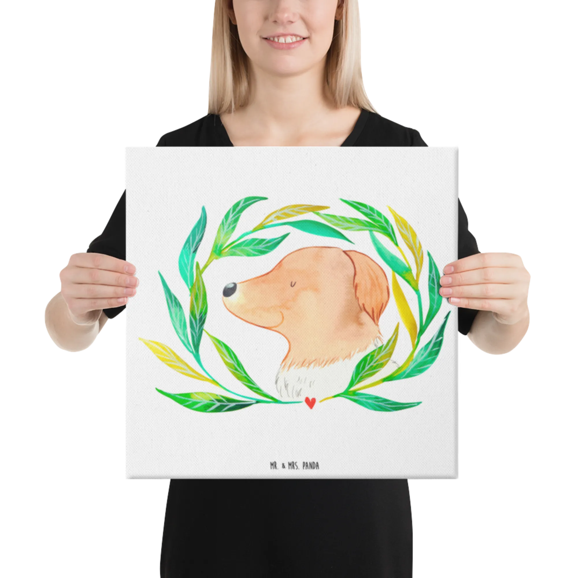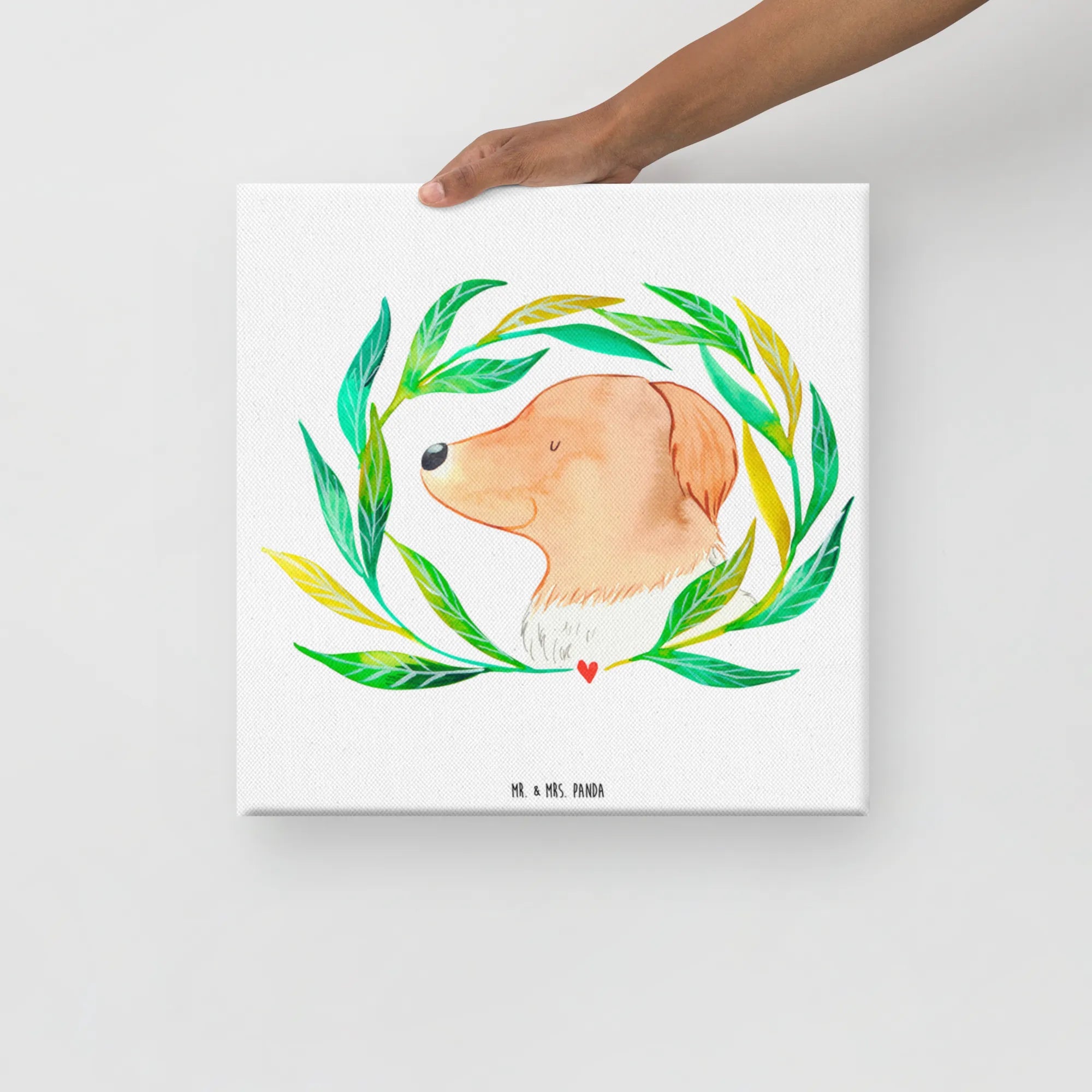 Obraz na płótnie pies kwiaty - 40 x 40 cm - z napisem - biały