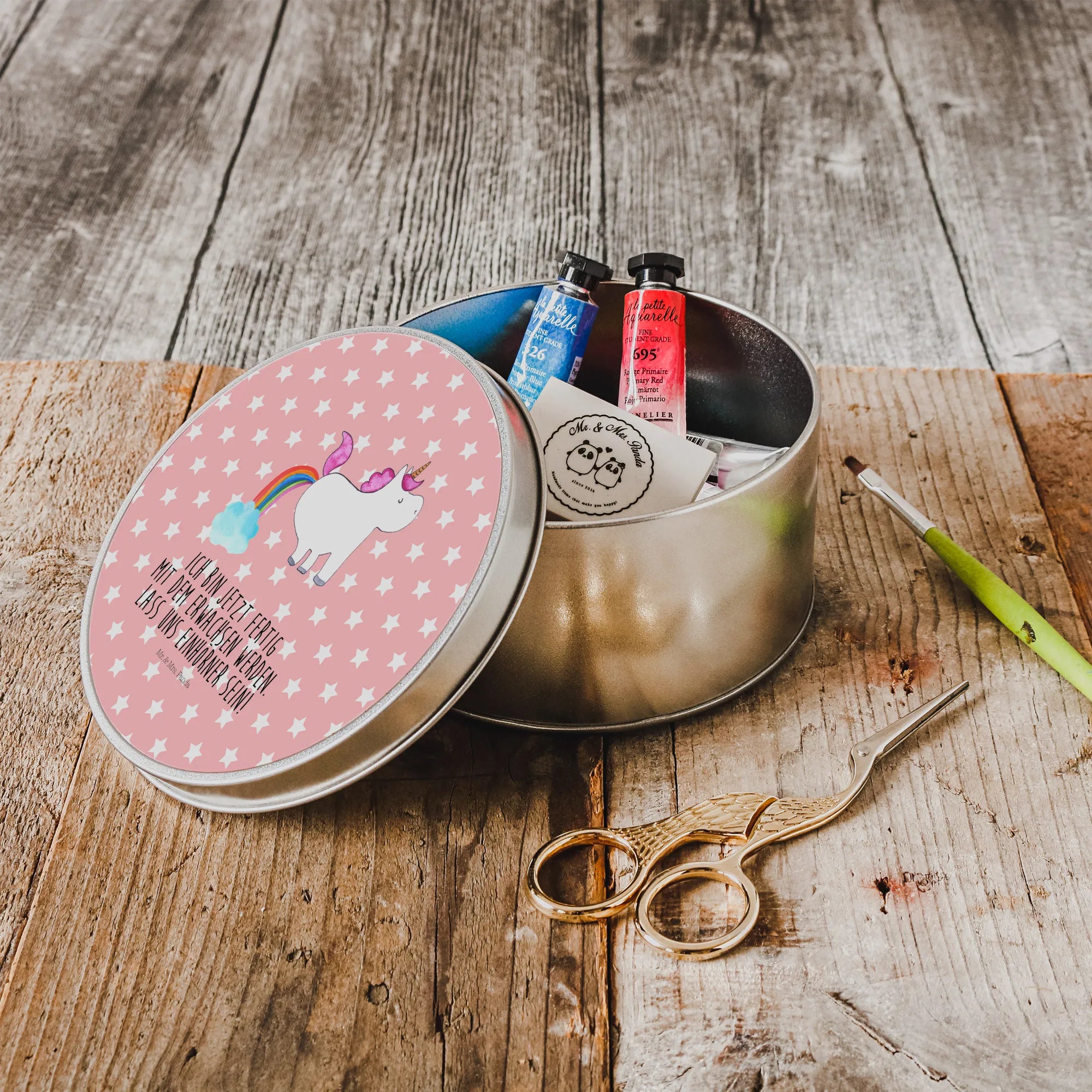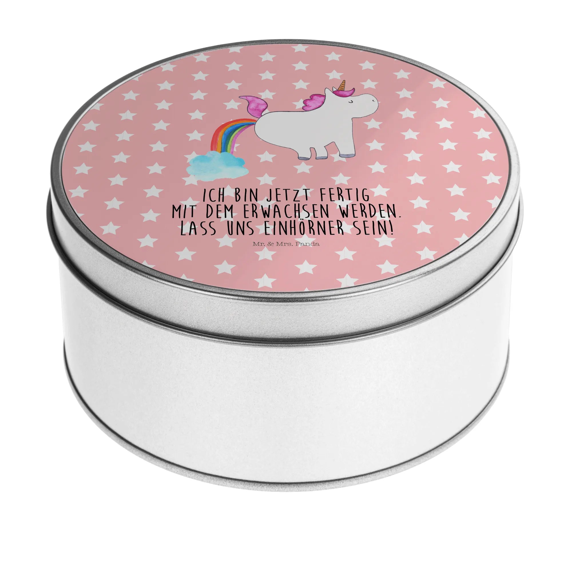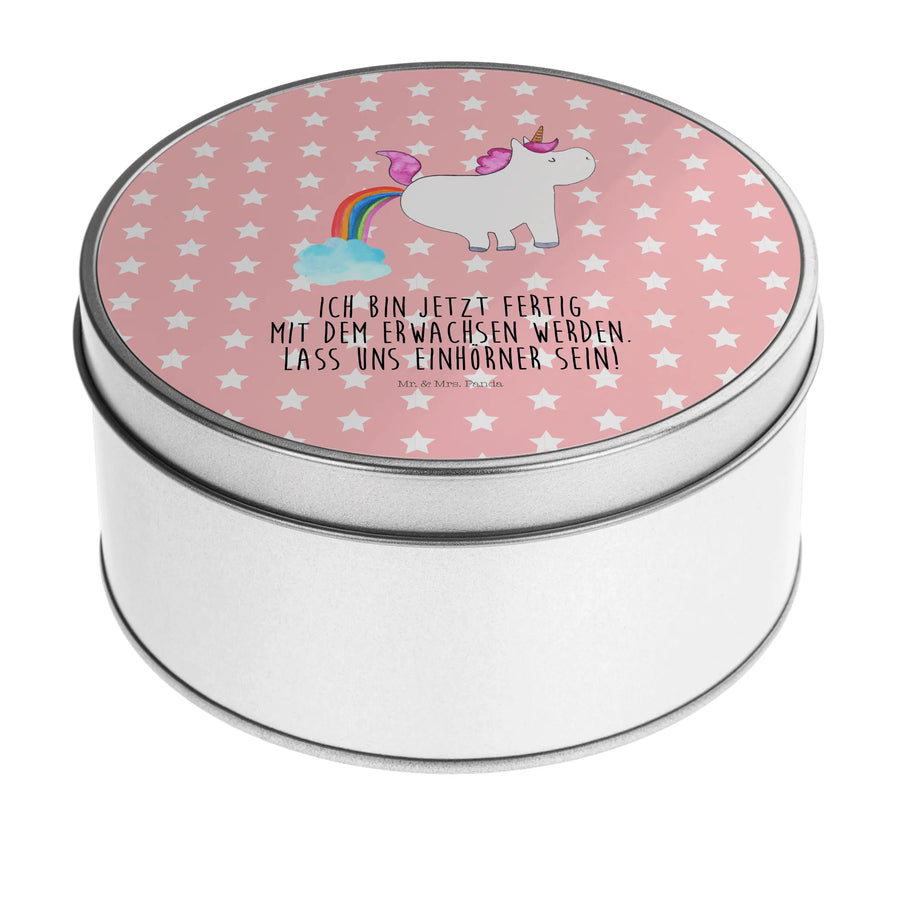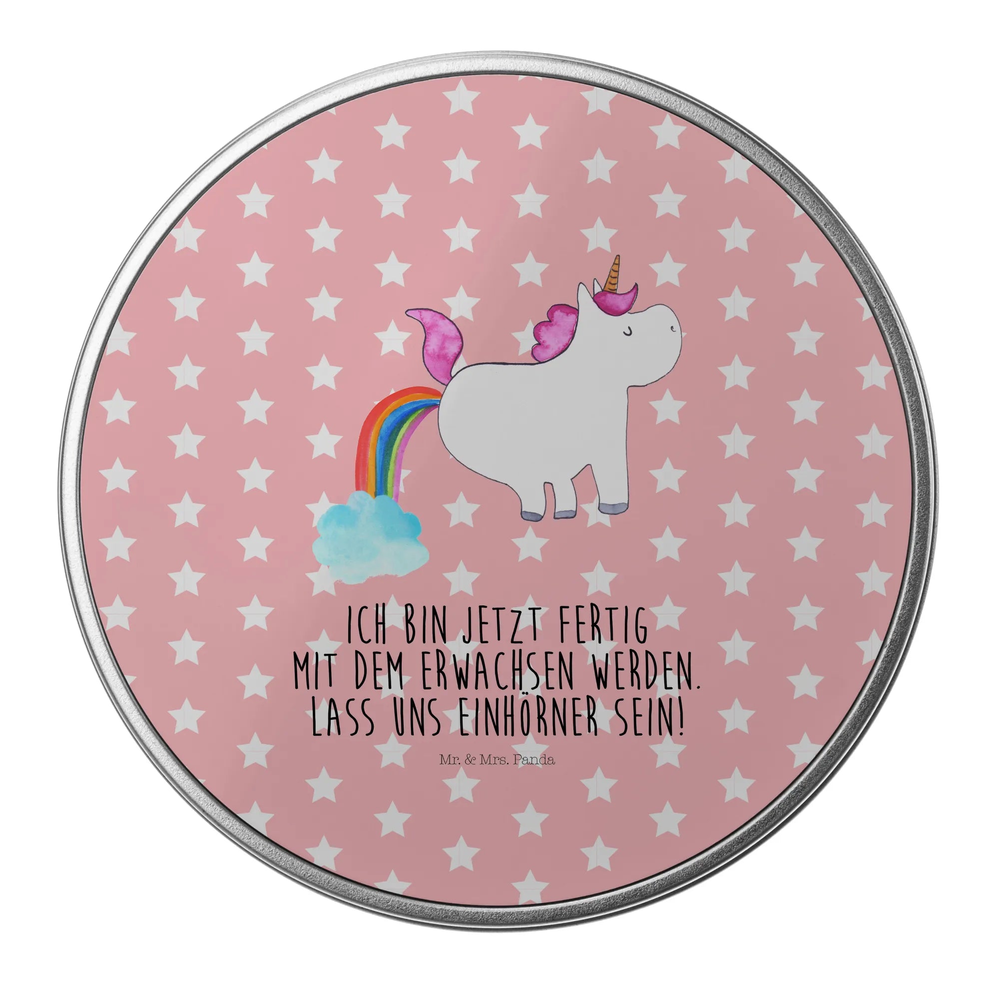 okrągła puszka z blachy Jednorożec puszczać bąki - z napisem