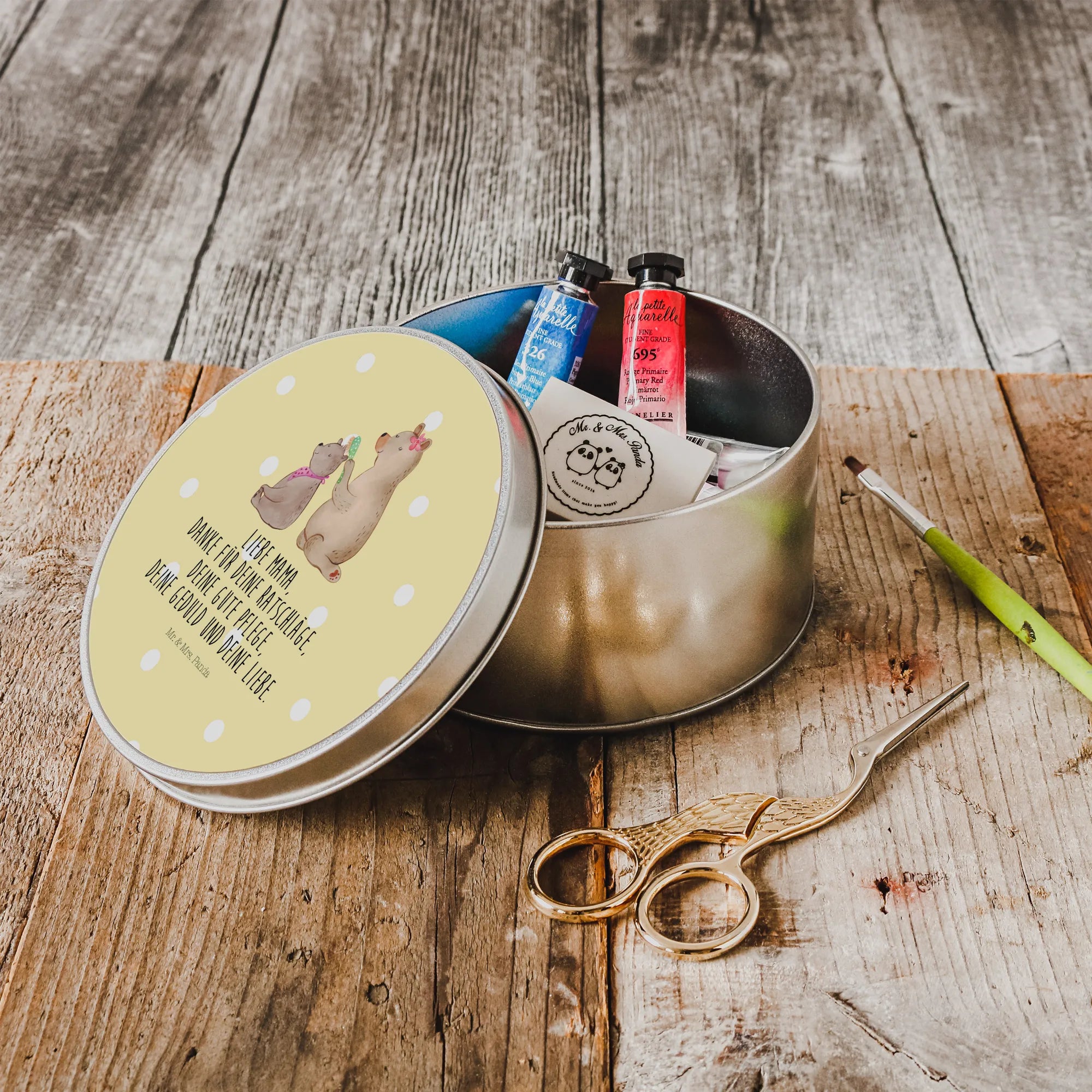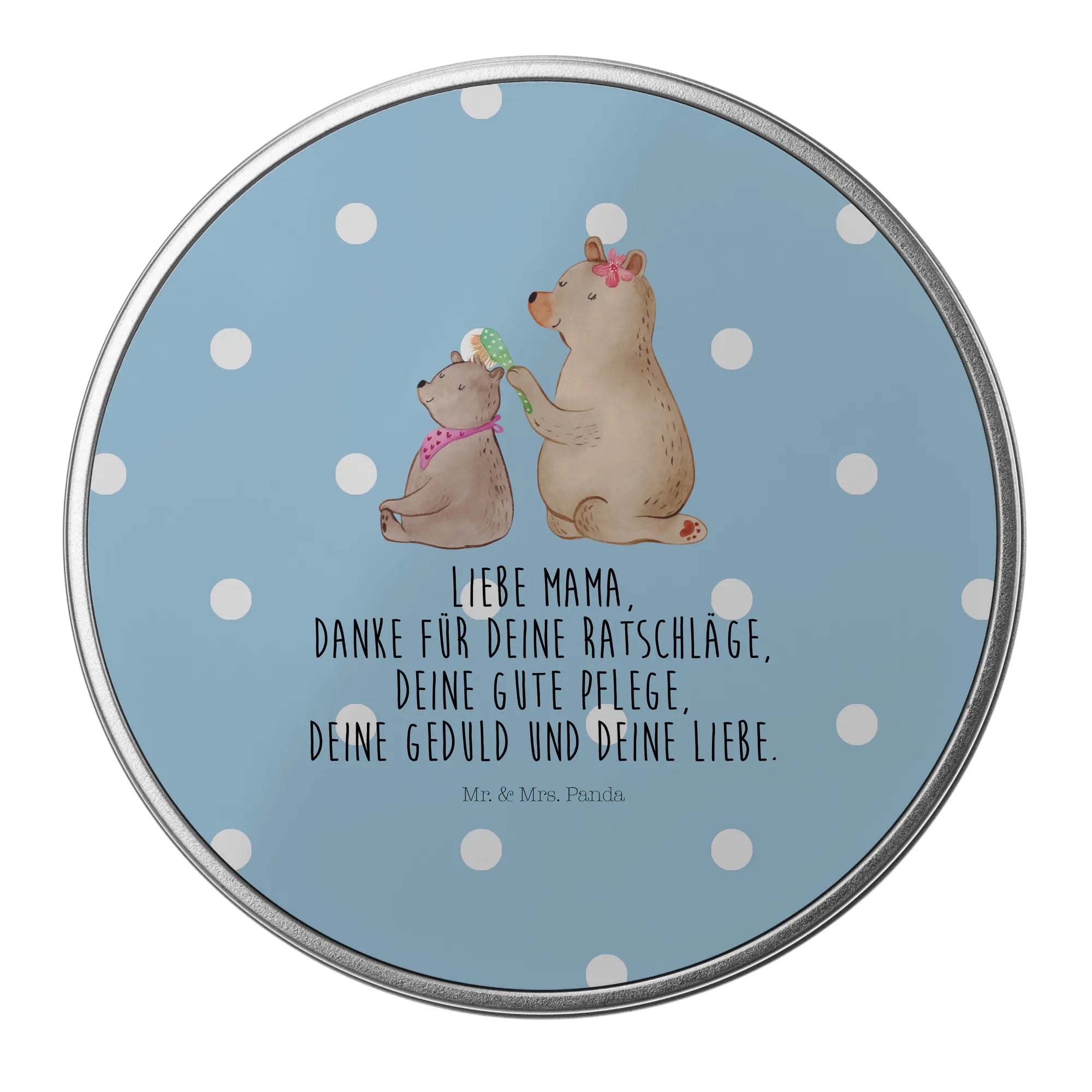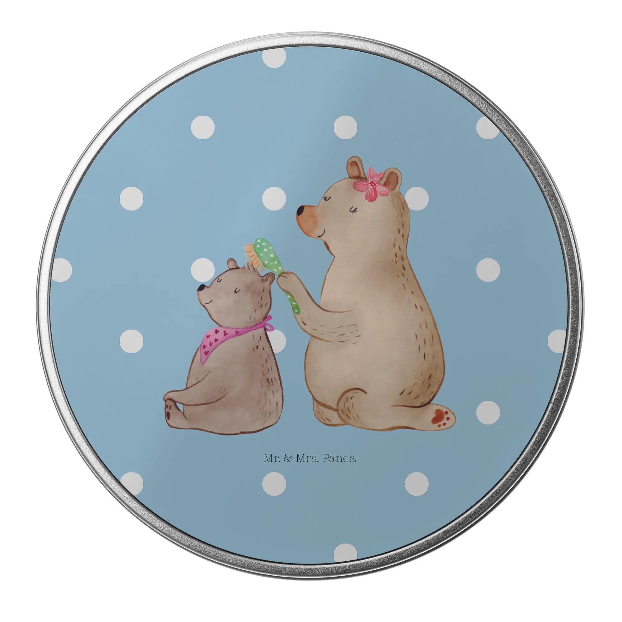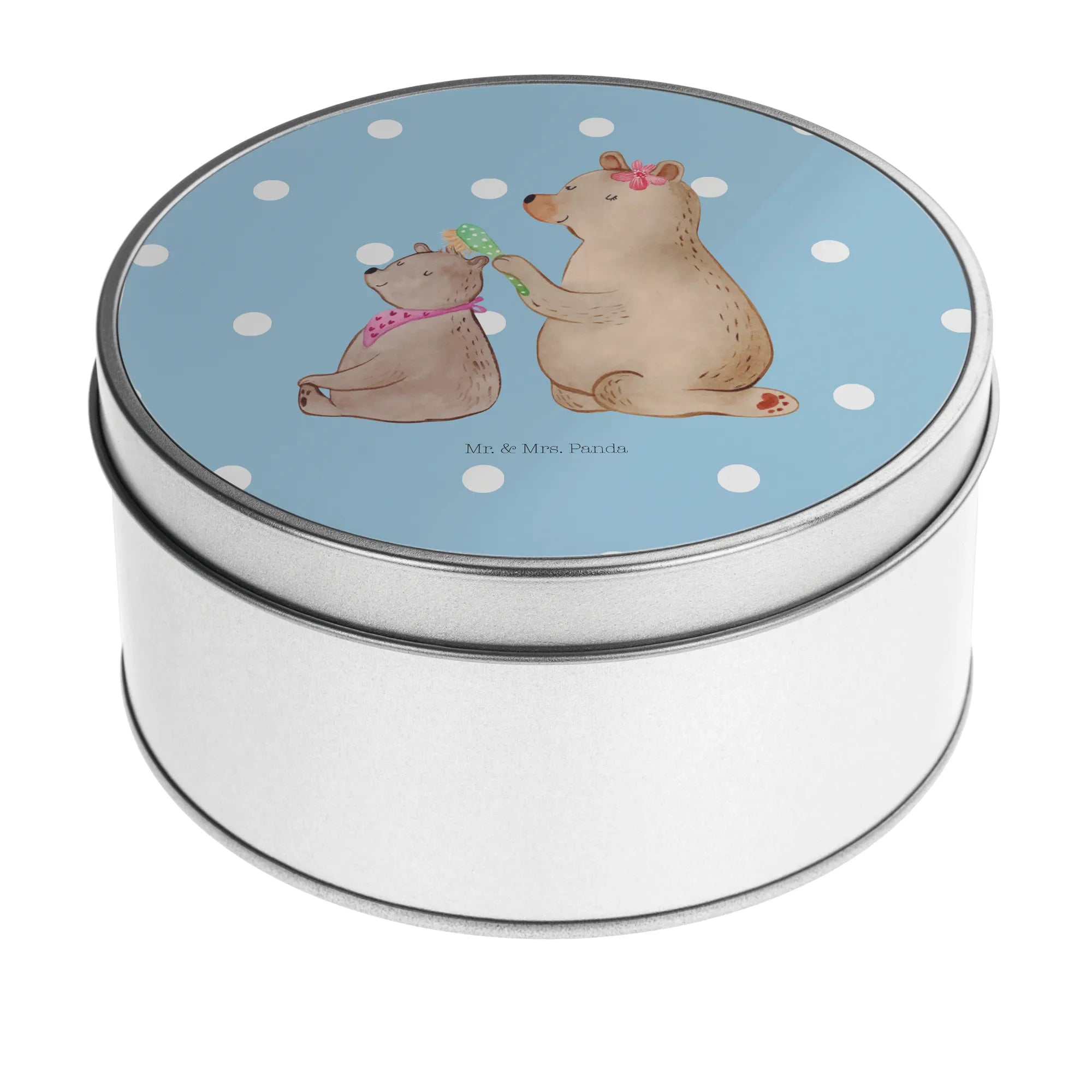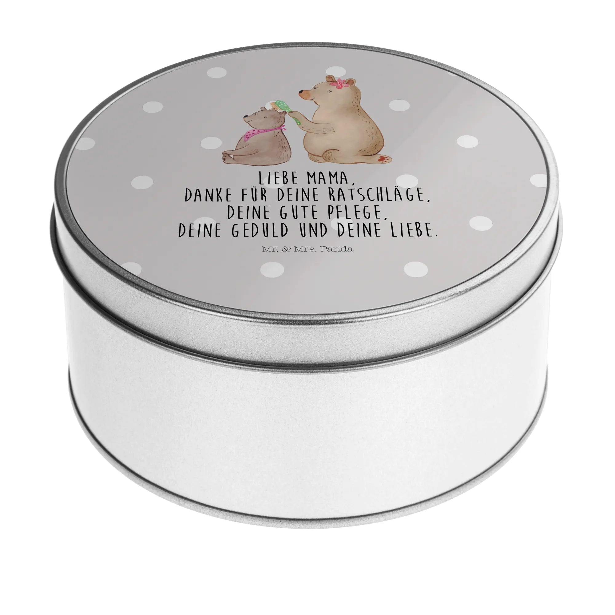 okrągła puszka z blachy niedźwiedź dziecko - z napisem - Pastelowy szary