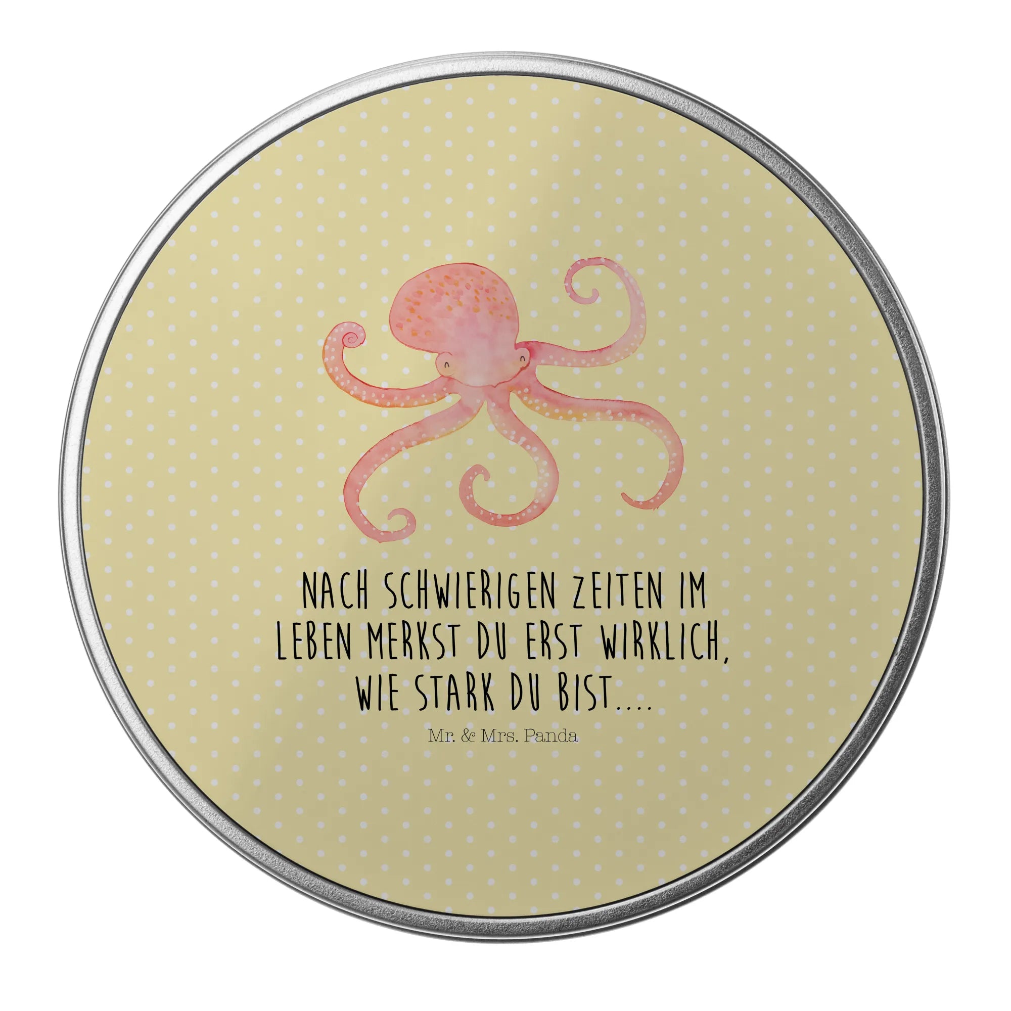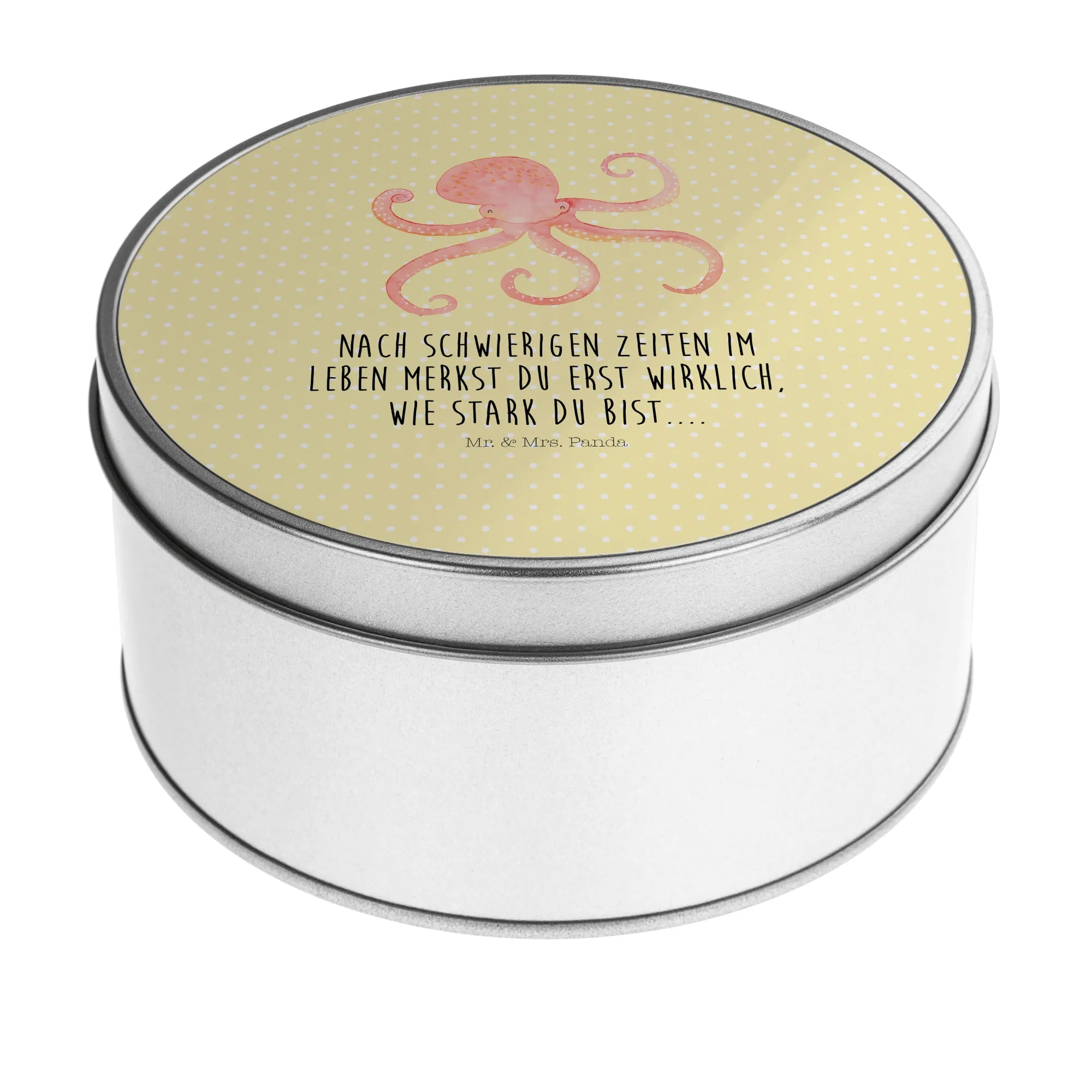 okrągła puszka z blachy Ośmiornica - z napisem