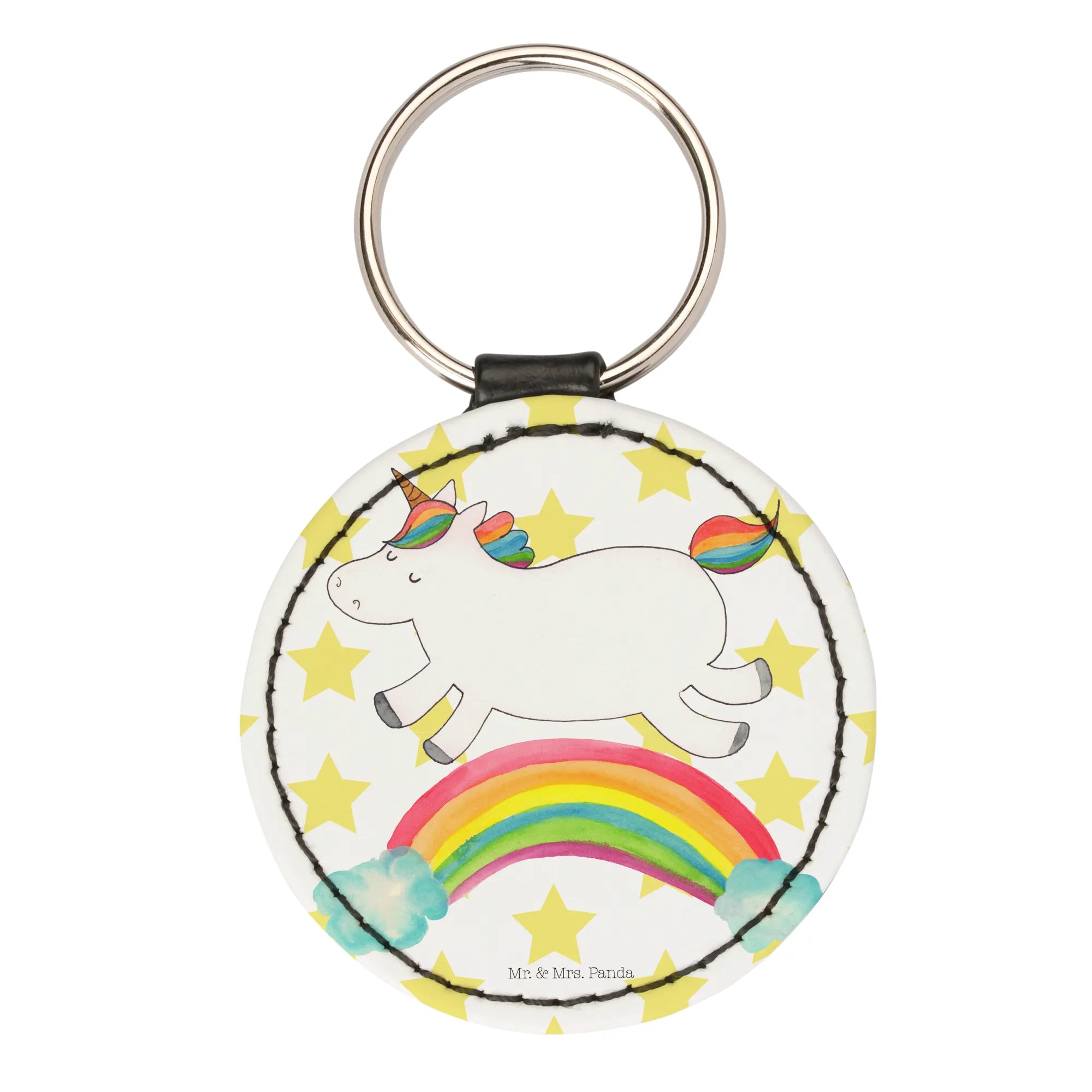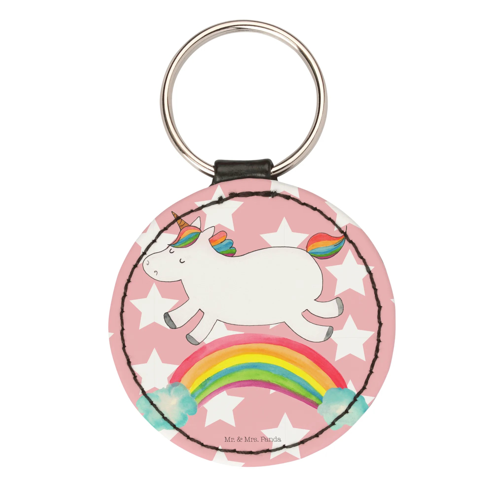 Okrągły brelok jednorożec tęcza - Pastelowy czerwony