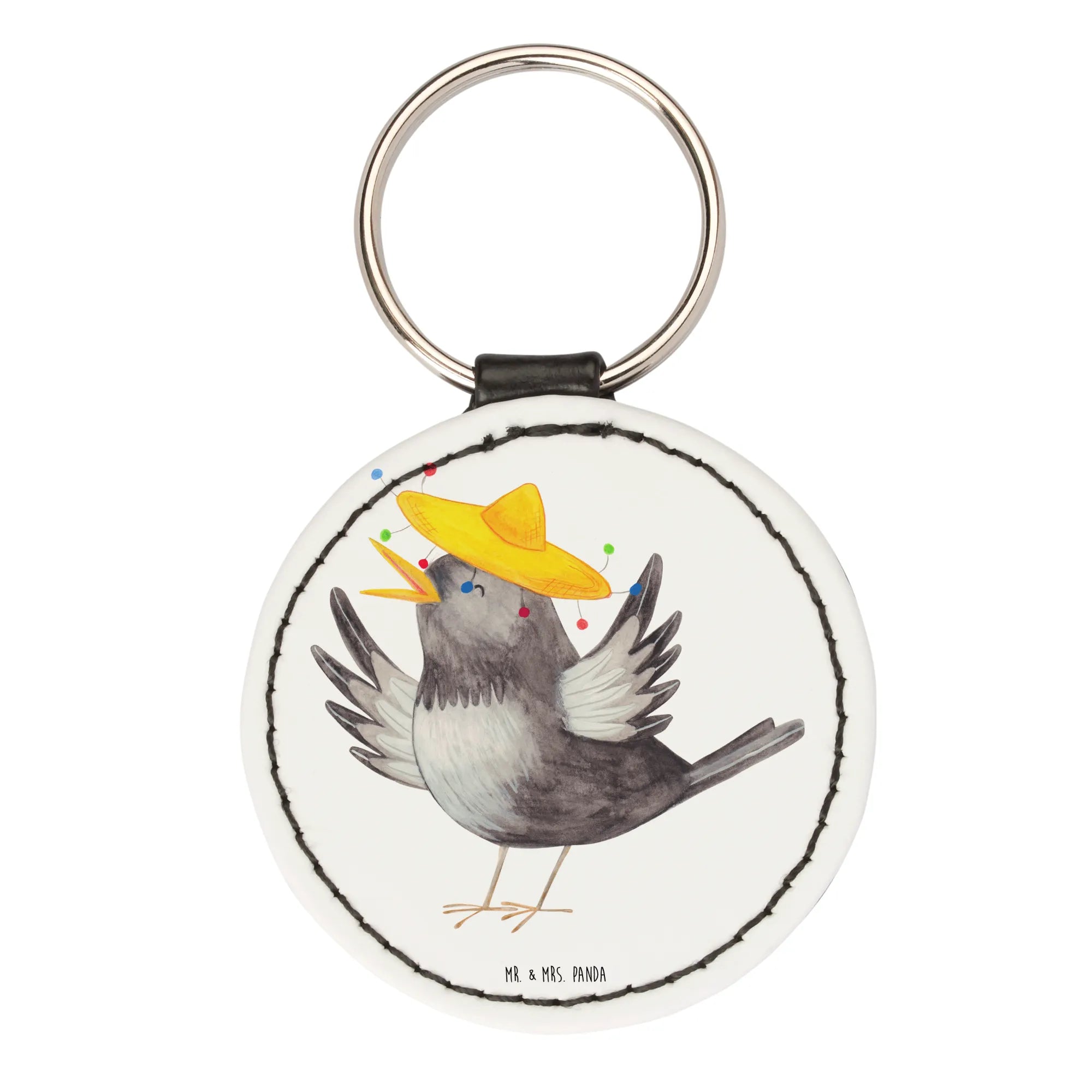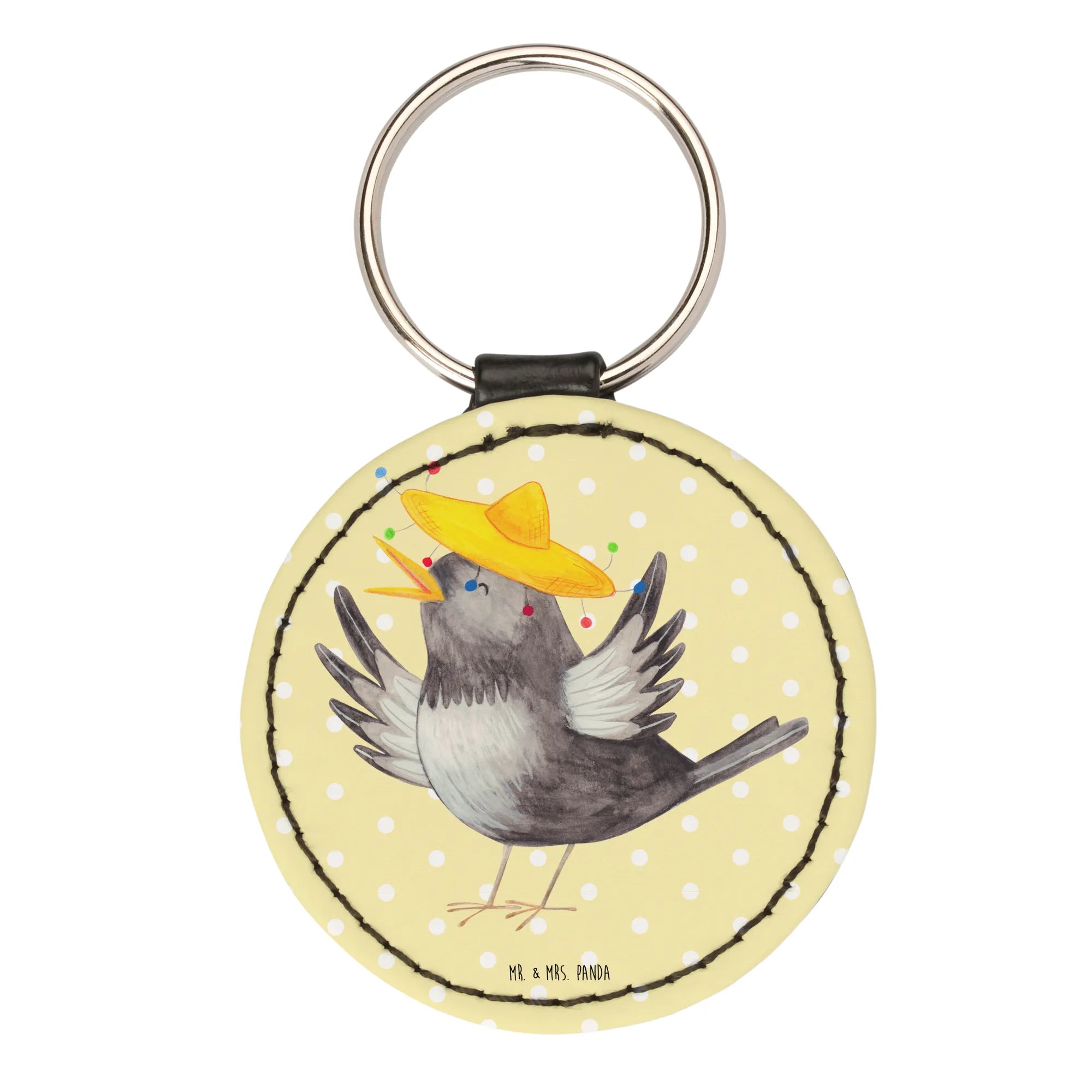 Okrągły brelok kruk Sombrero - Żółty Pastel
