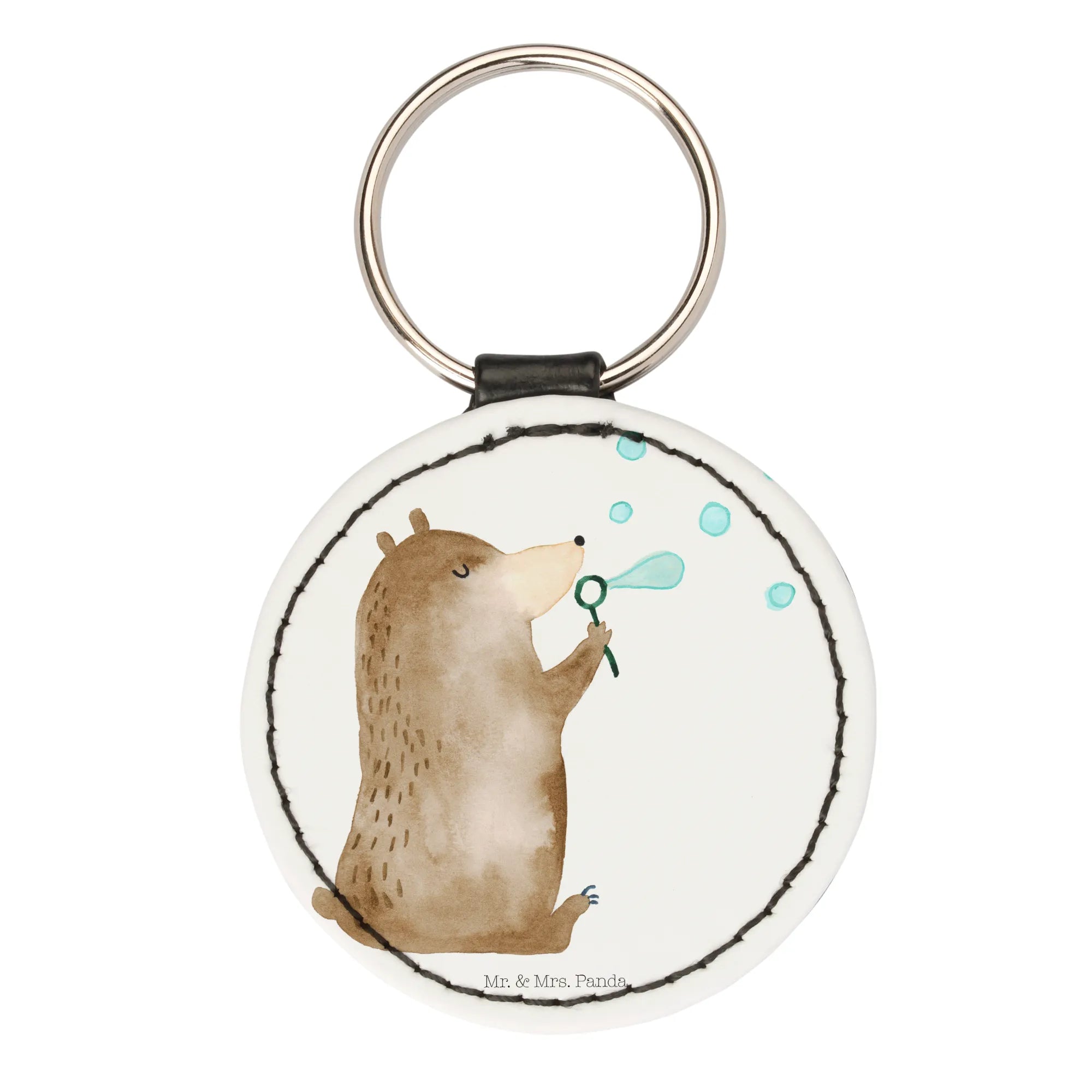 Okrągły brelok niedźwiedź bańki mydlane - biały