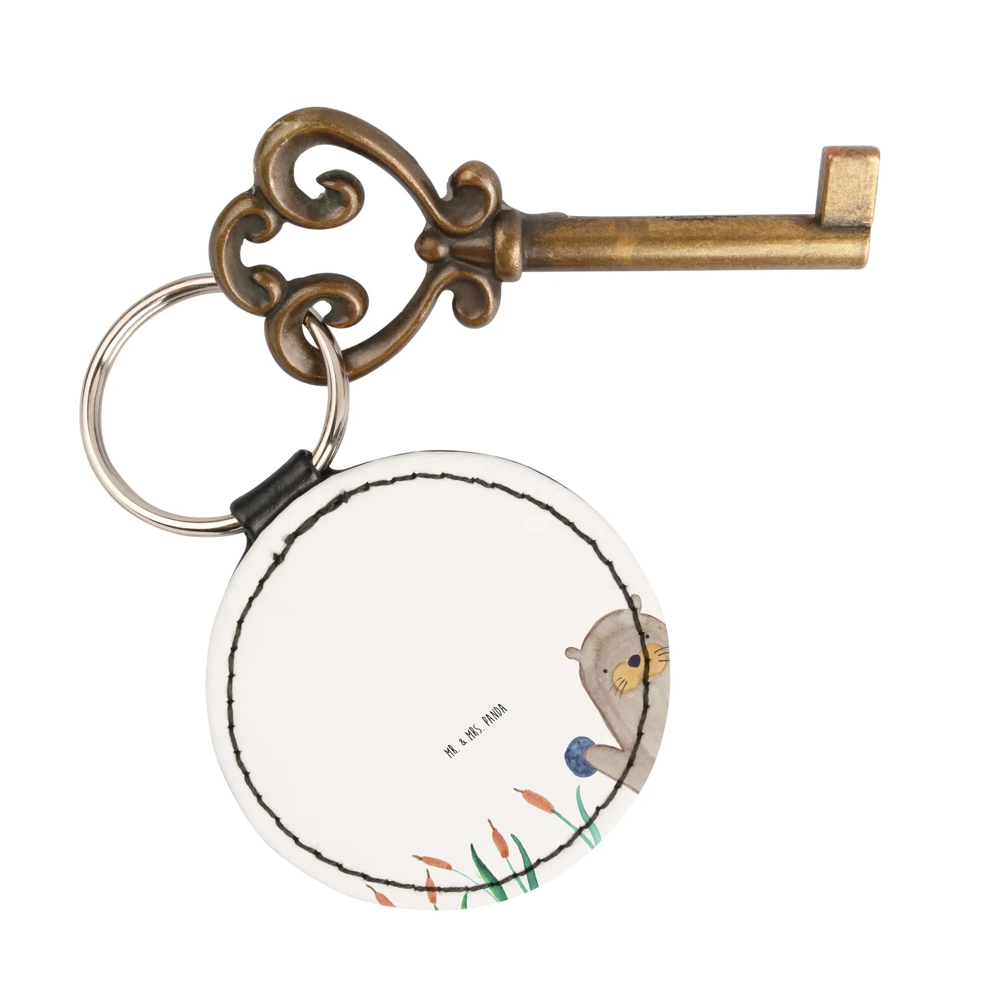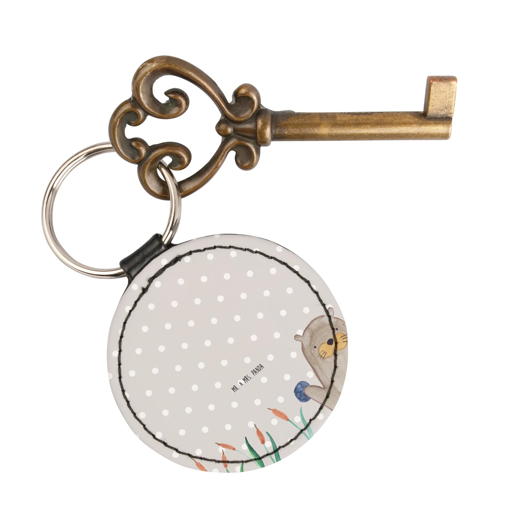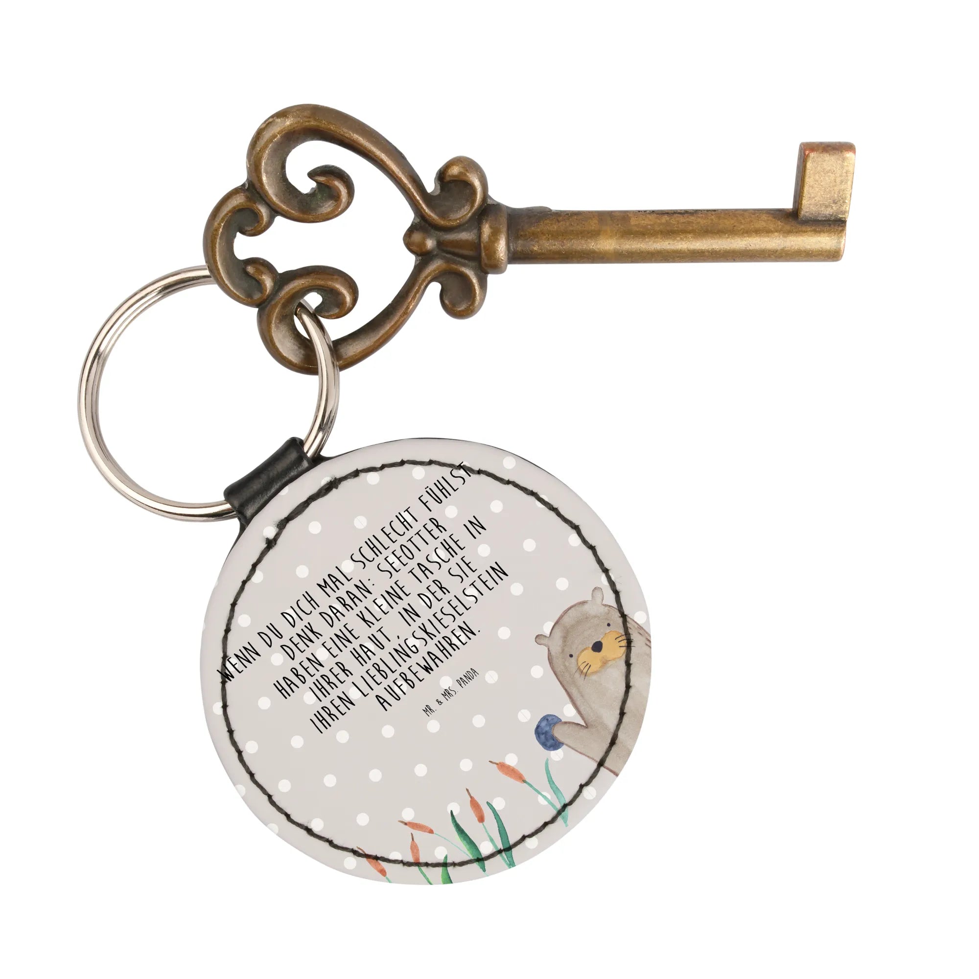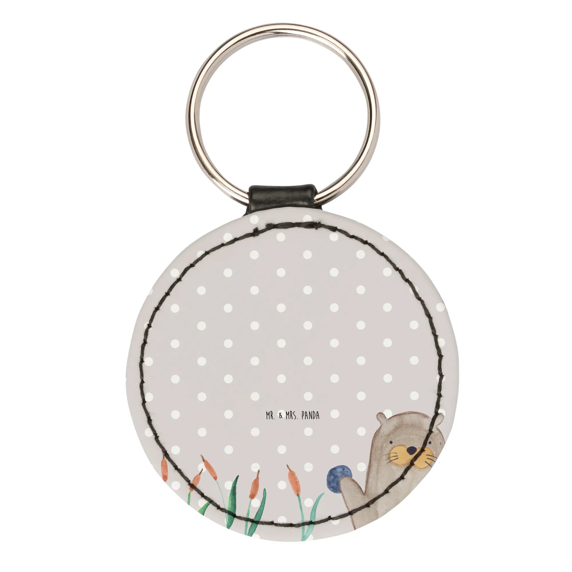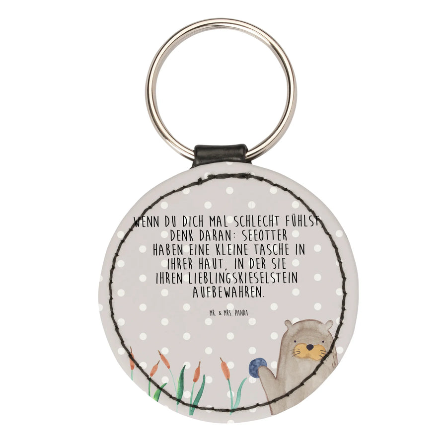 Okrągły brelok wydra kamień - z napisem - Szary Pastel