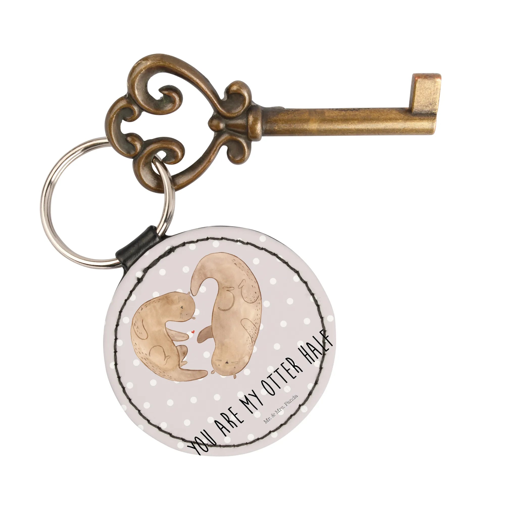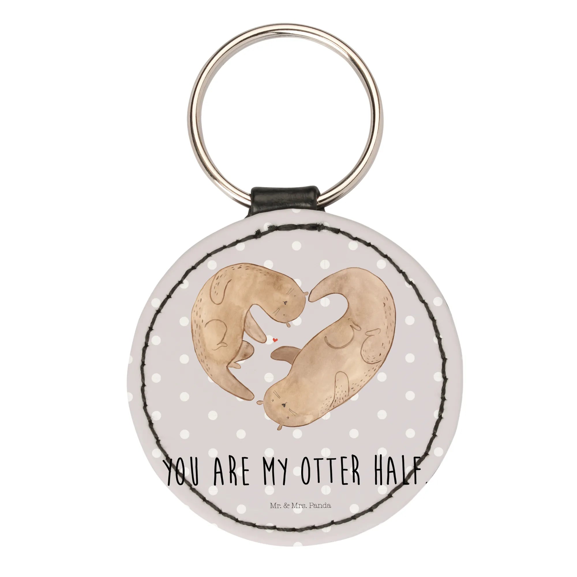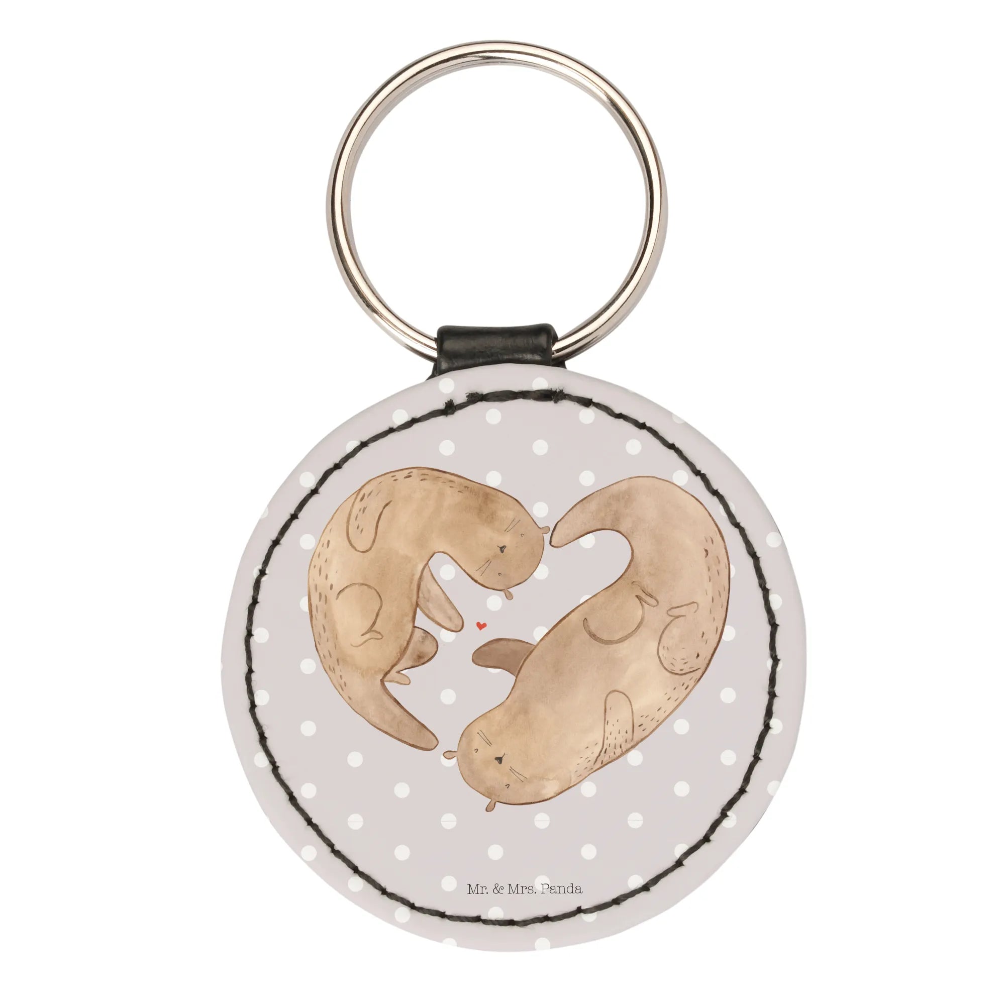 Okrągły brelok wydra serce - z napisem - Pastelowy szary