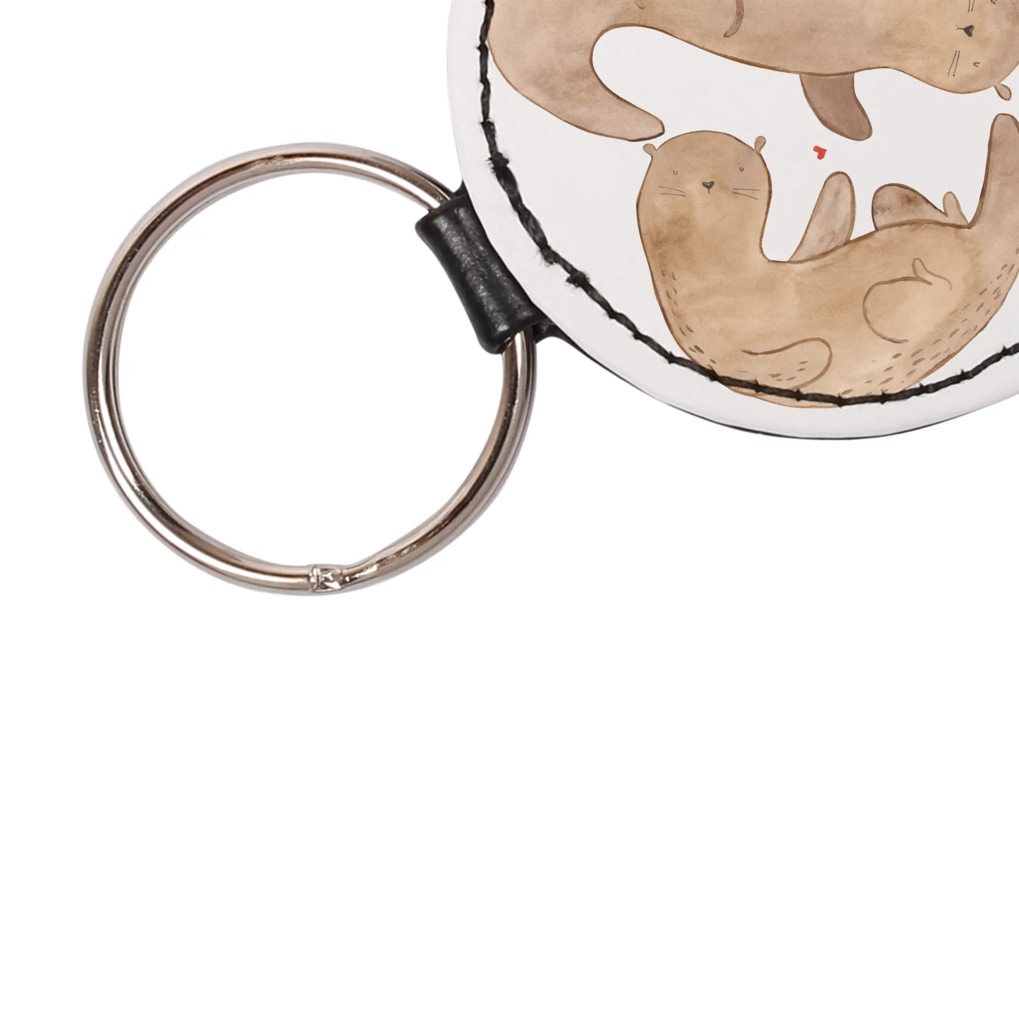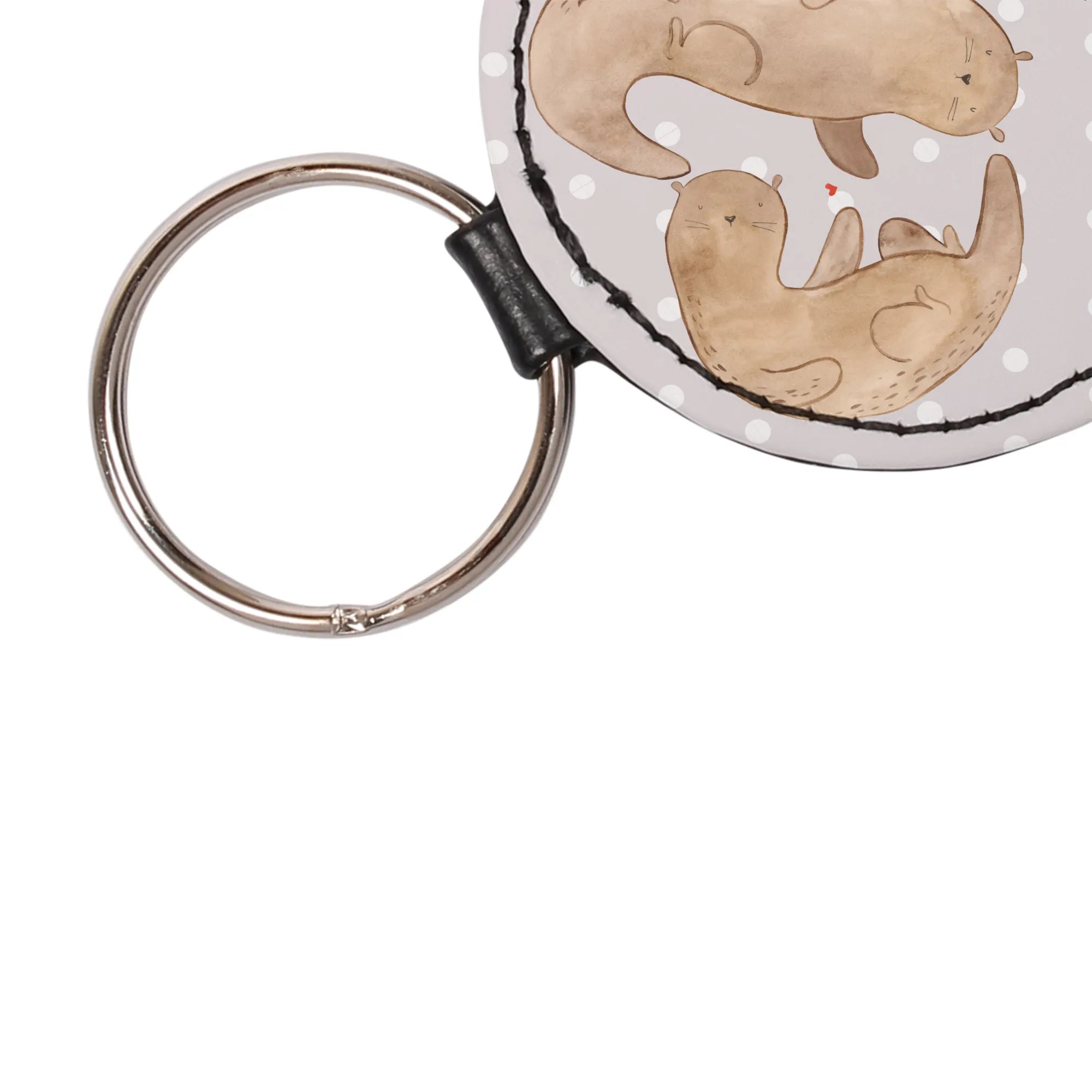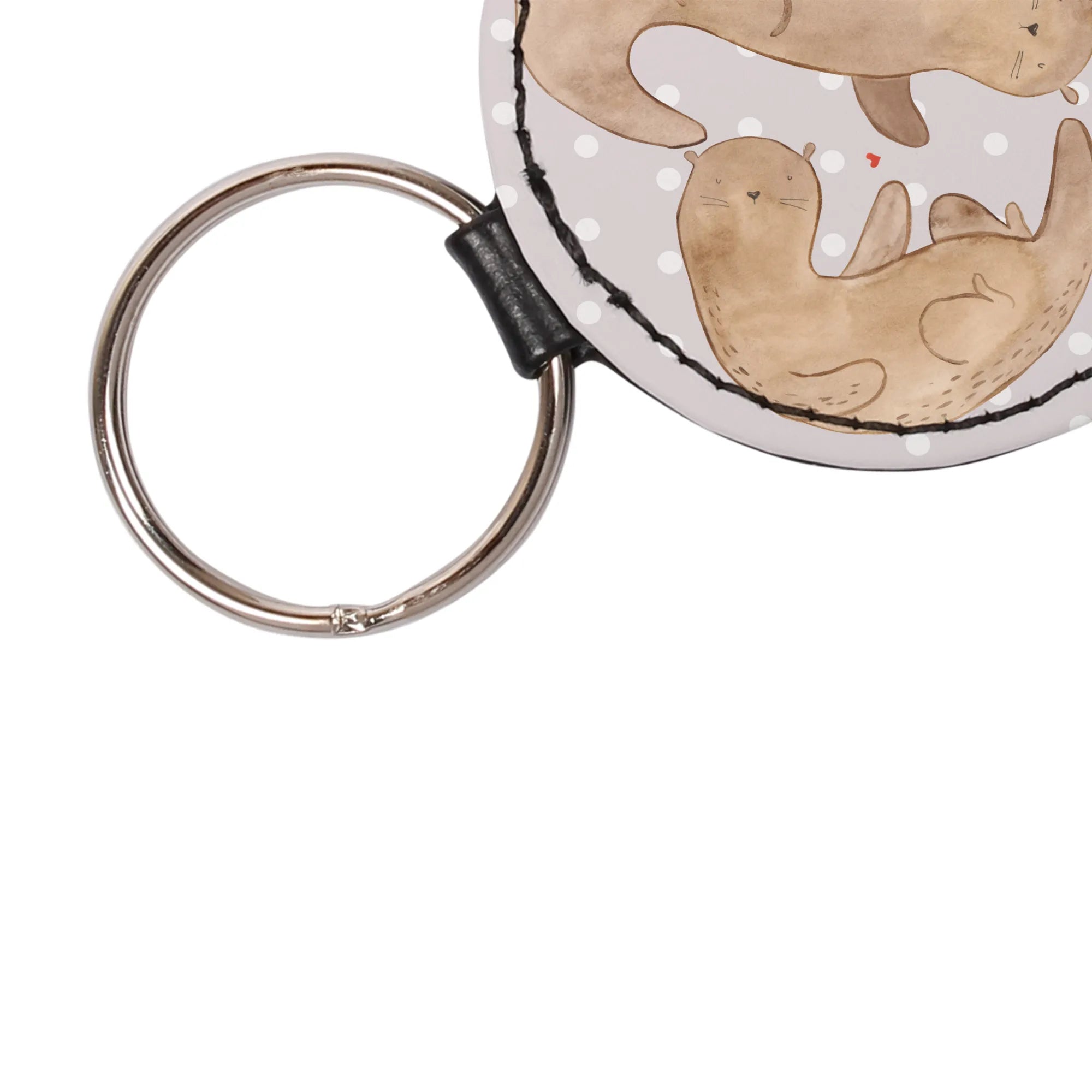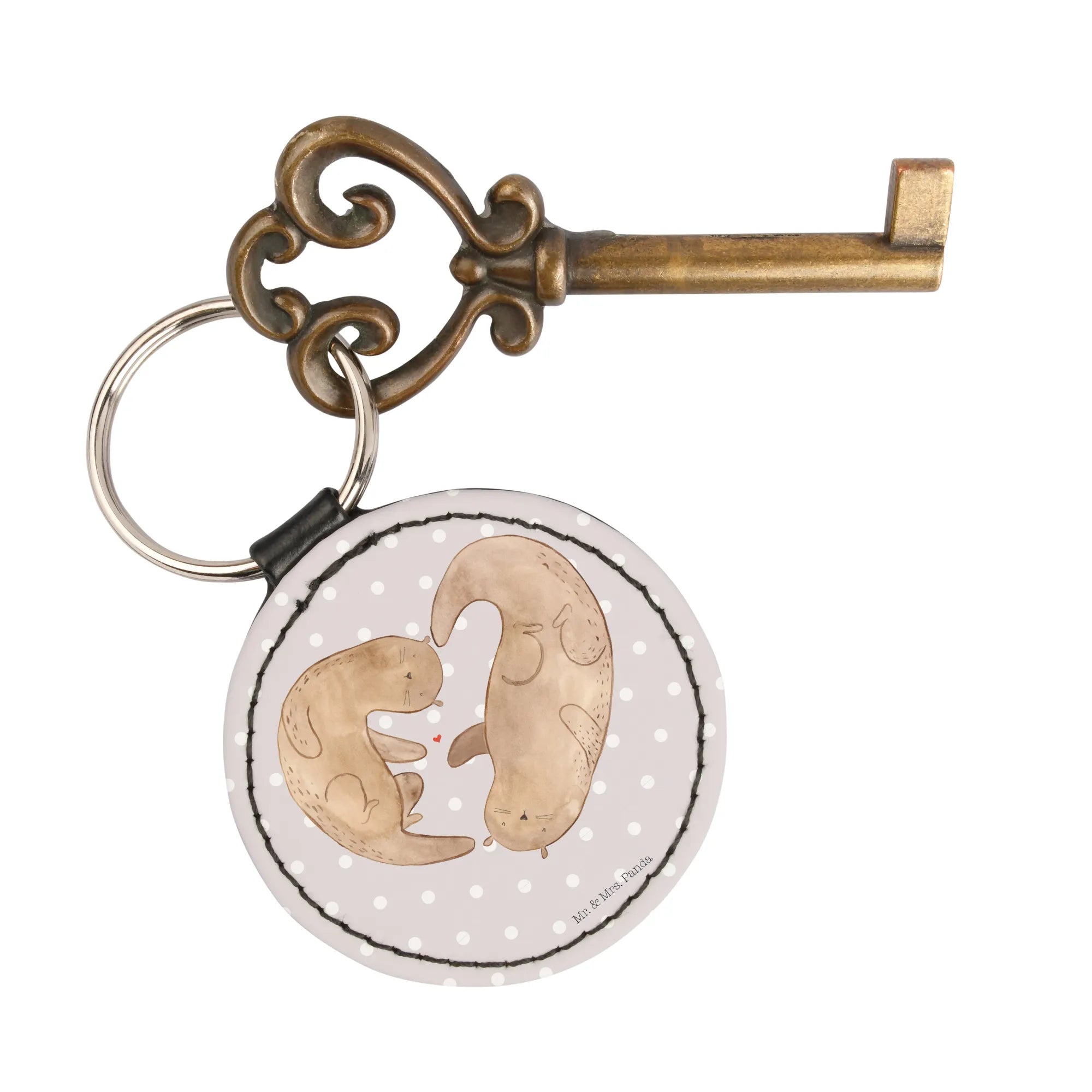 Okrągły brelok wydra serce - z napisem - Pastelowy szary