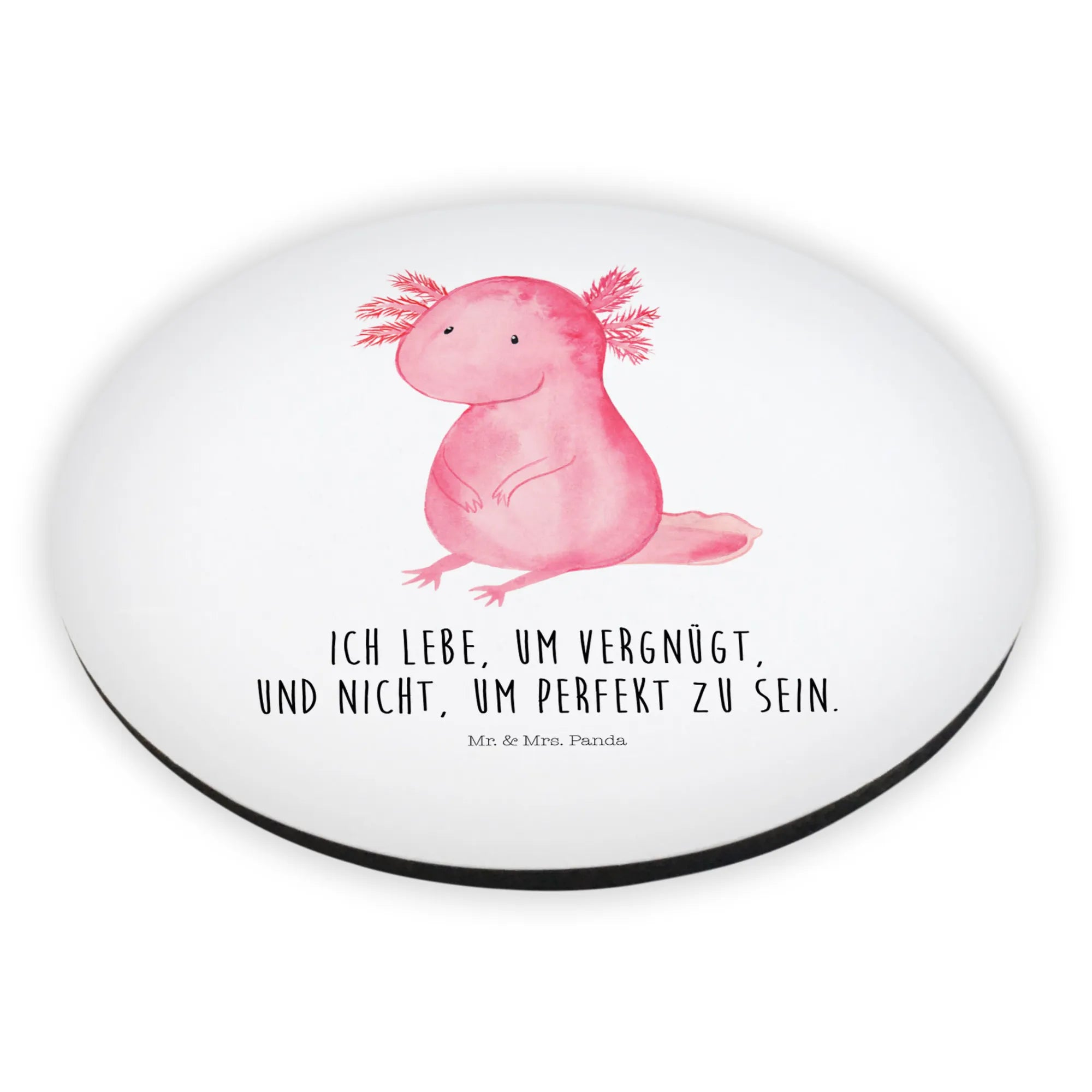 Okrągły magnes aksolotl null - z napisem - Szary Pastel
