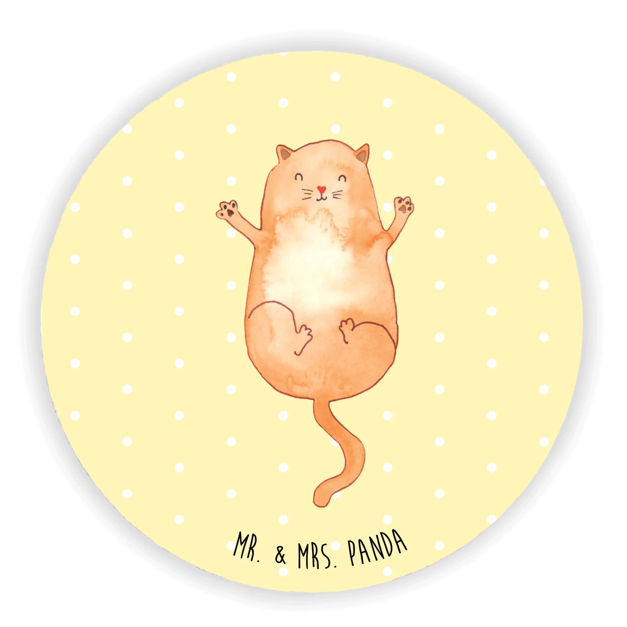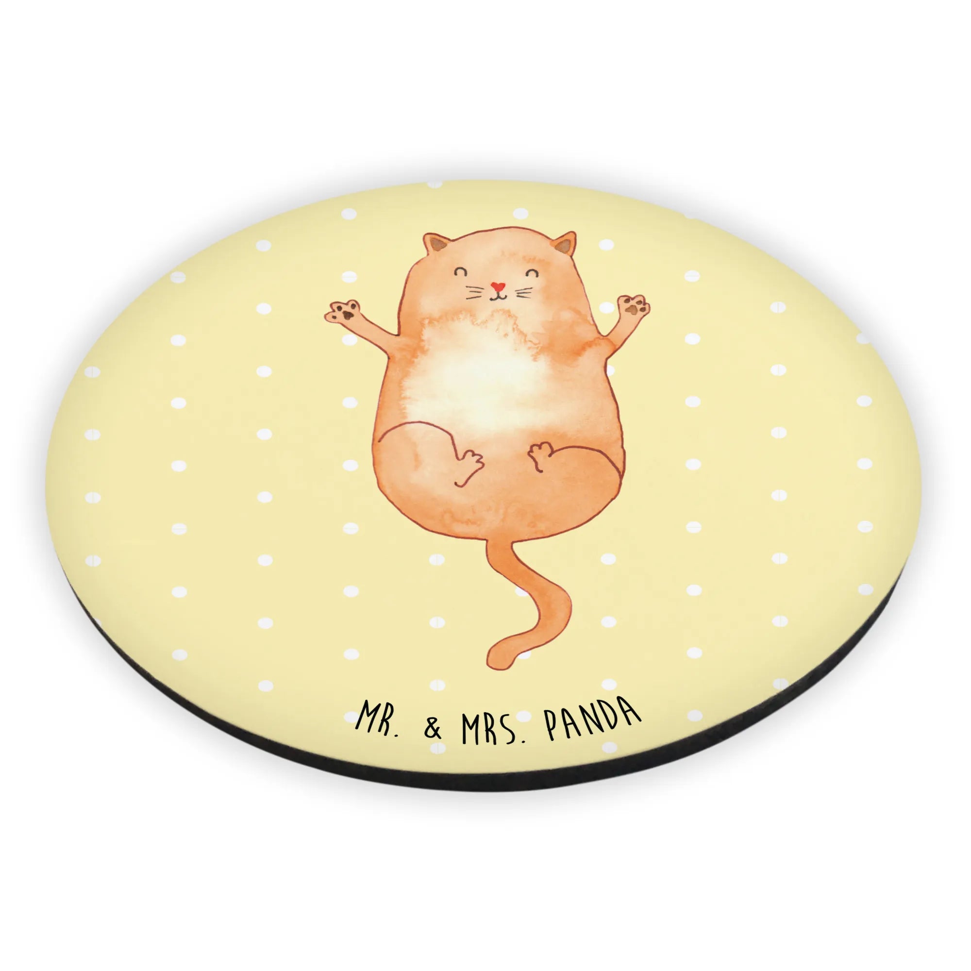 Okrągły magnes kotka Przytulić - z napisem - Żółty Pastel