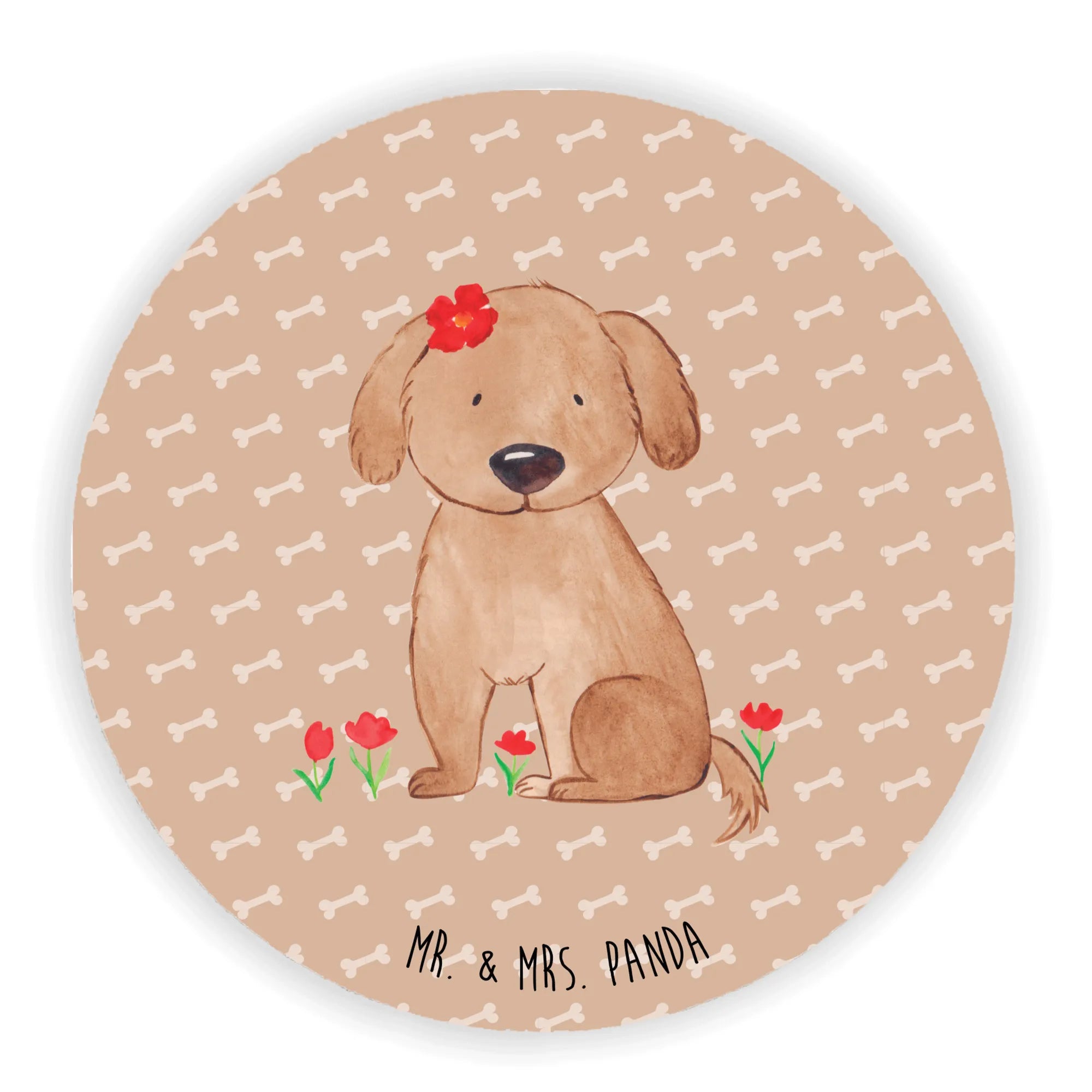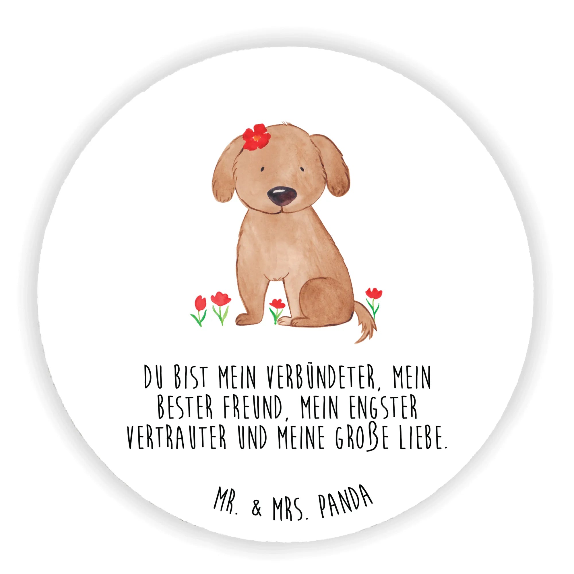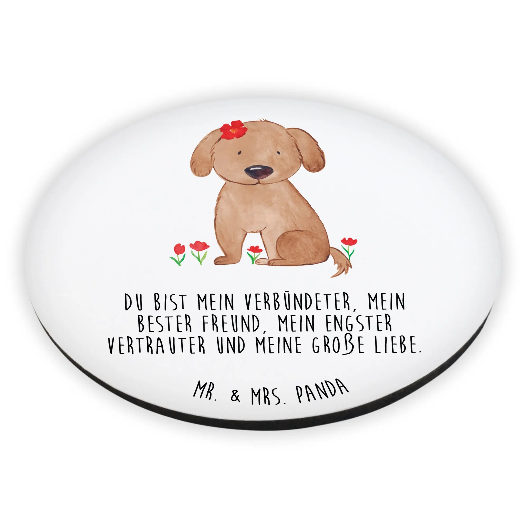 Okrągły magnes pies Dama - z napisem - biały