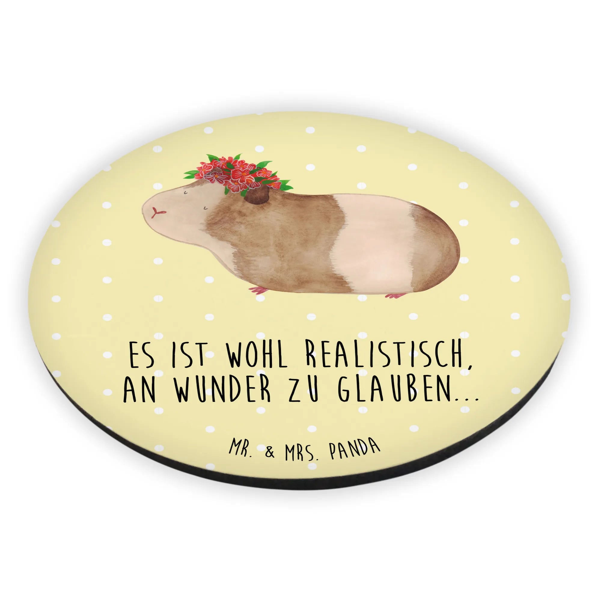 Okrągły magnes świnka morska mądrość - z napisem - Pastelowy żółty