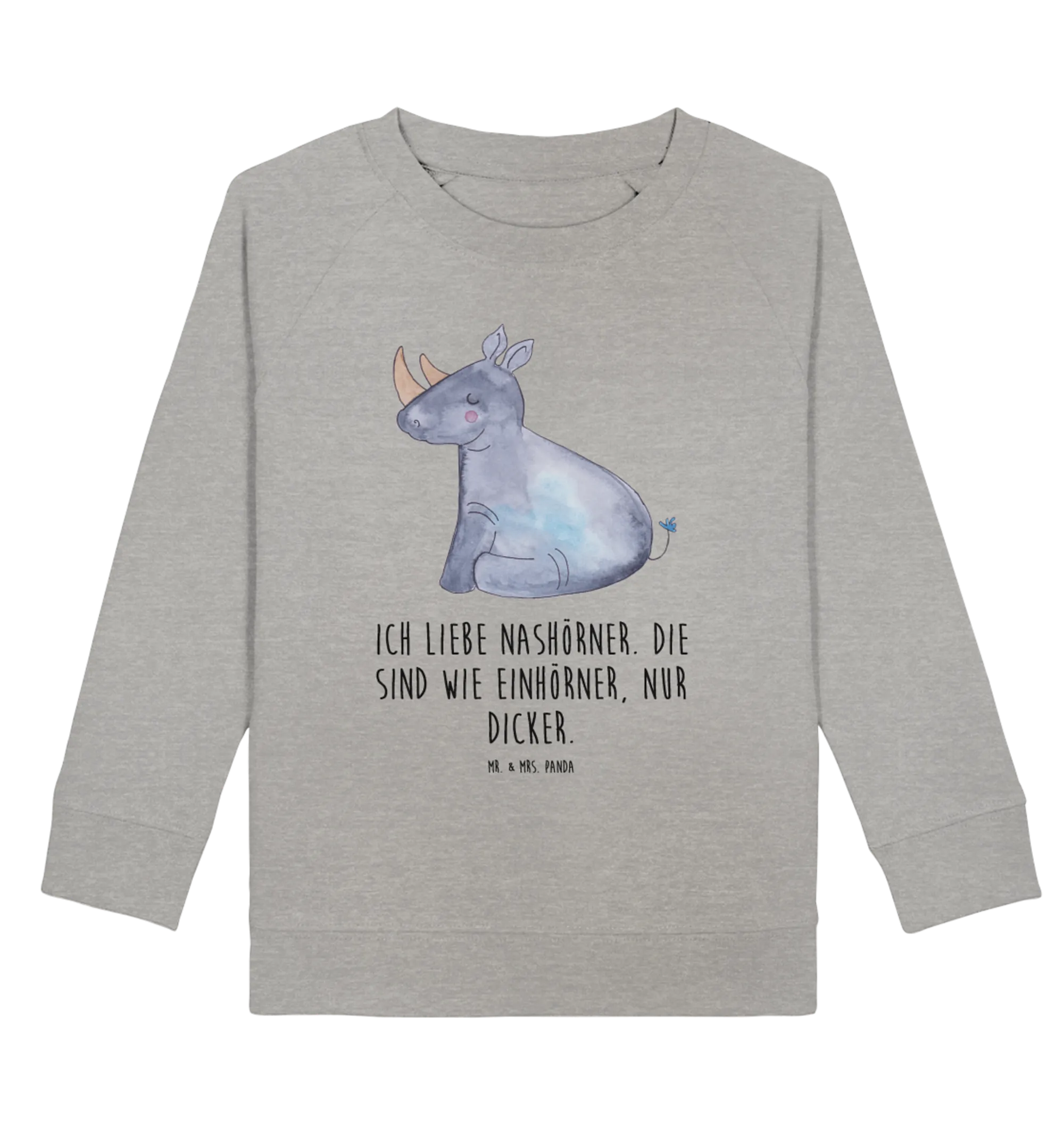 Zauber trifft auf Humor: Unser Organic Kinder Pullover "Einhorn Nashorn" aus der Einhorn - Kollektion von Mr. & Mrs. Panda verbindet süße Einhorn-Optik mit einem frechen Augenzwinkern. Das fröhliche, dicke und zufriedene Nashorn trägt den Spruch „Ich liebe Nashörner. Die sind wie Einhörner, nur dicker.“ und sorgt garantiert für Lacher und gute Laune. 🦏🦄