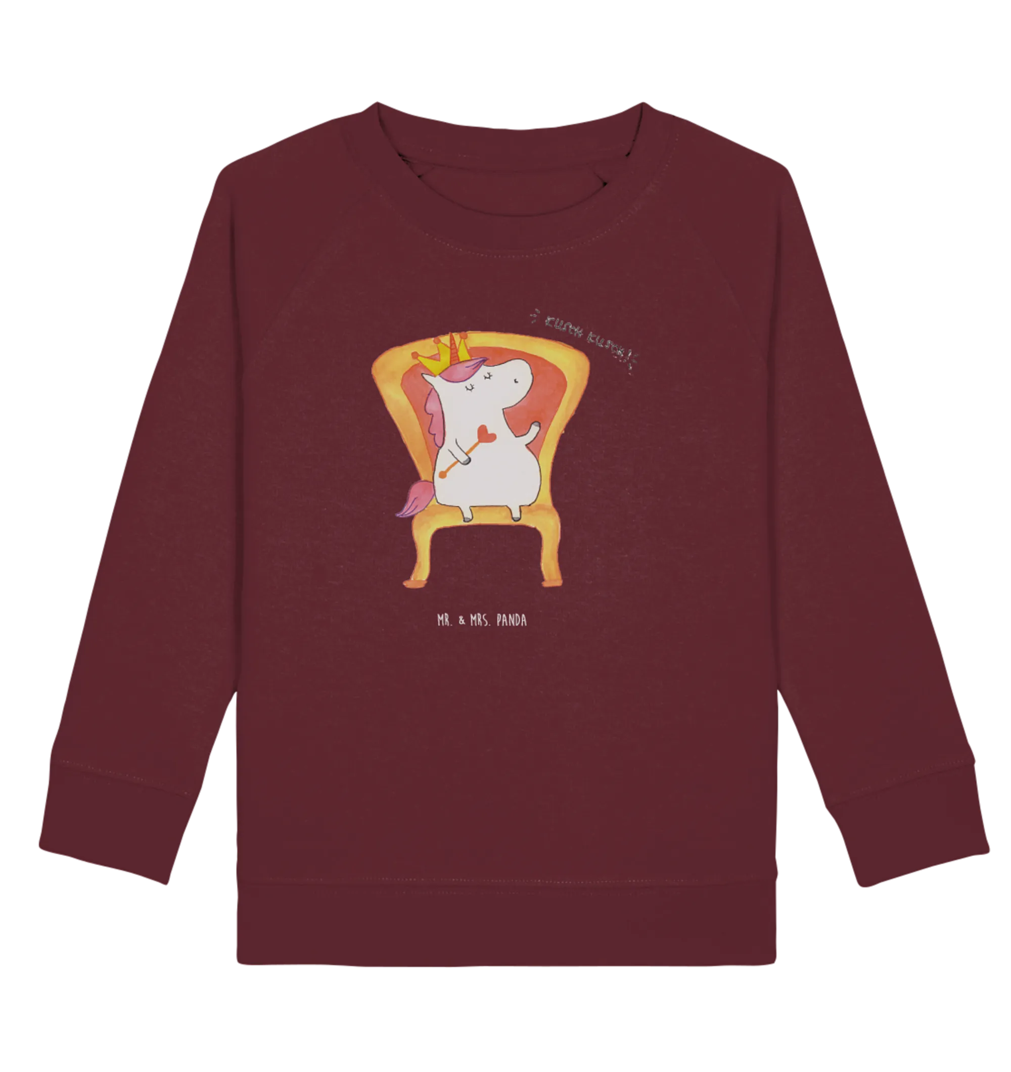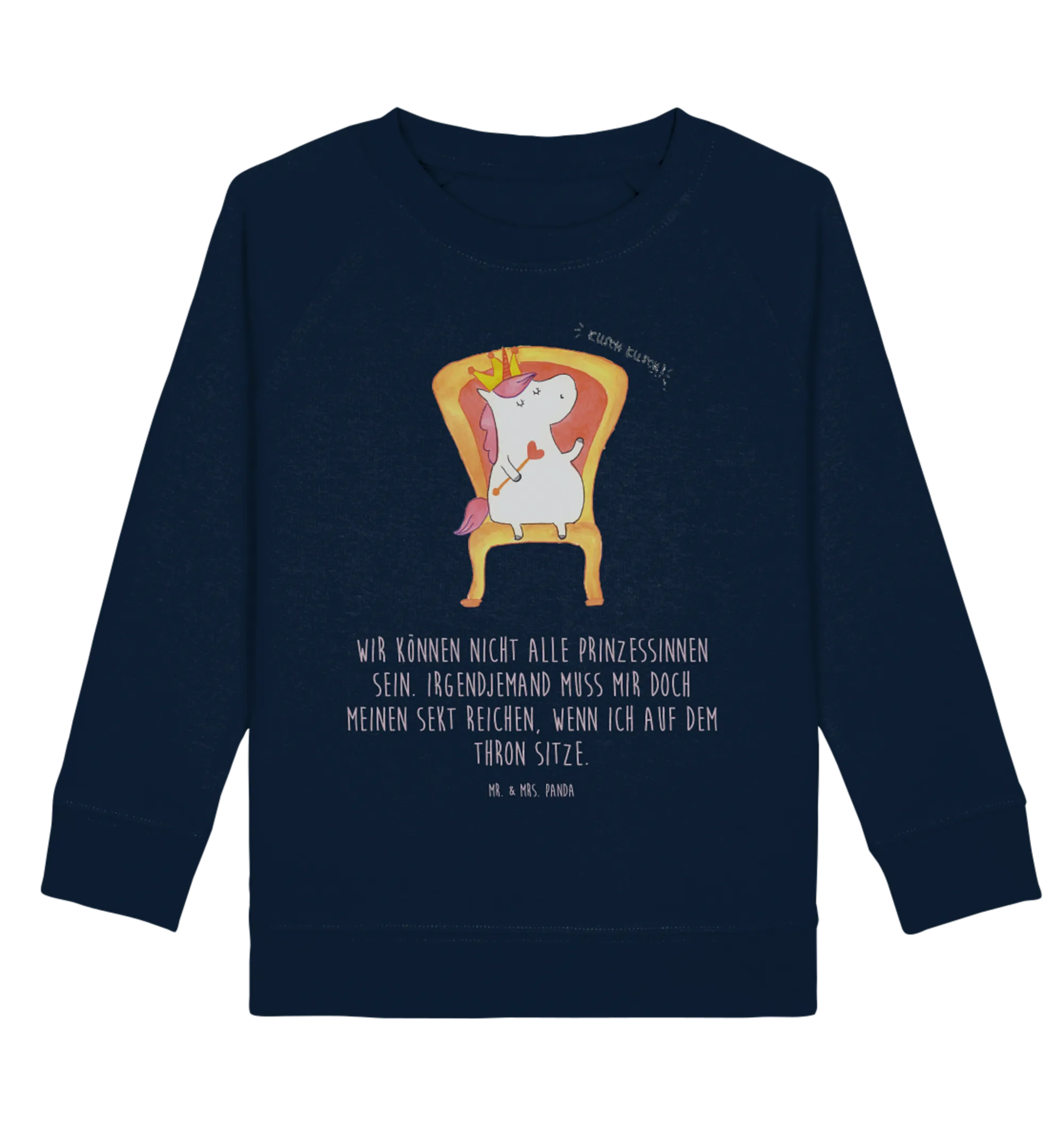 Der Organic Kinder Pullover mit dem bezaubernden Einhorn Prinzessin Motiv aus der Einhorn-Kollektion von Mr. & Mrs. Panda ist das perfekte Geschenk für kleine Traumtänzer und Einhorn-Fans. Ob zum Geburtstag, zum Kindertag oder einfach nur als Aufmerksamkeit – dieser Pullover zaubert jedem Kind ein Lächeln ins Gesicht. Mit seinem süßen Design, auf dem ein echtes Einhorn auf einem Thron sitzt und stolz seine Krone trägt, ist dieser Pullover nicht nur modisch, sondern auch ein echter Hingucker.