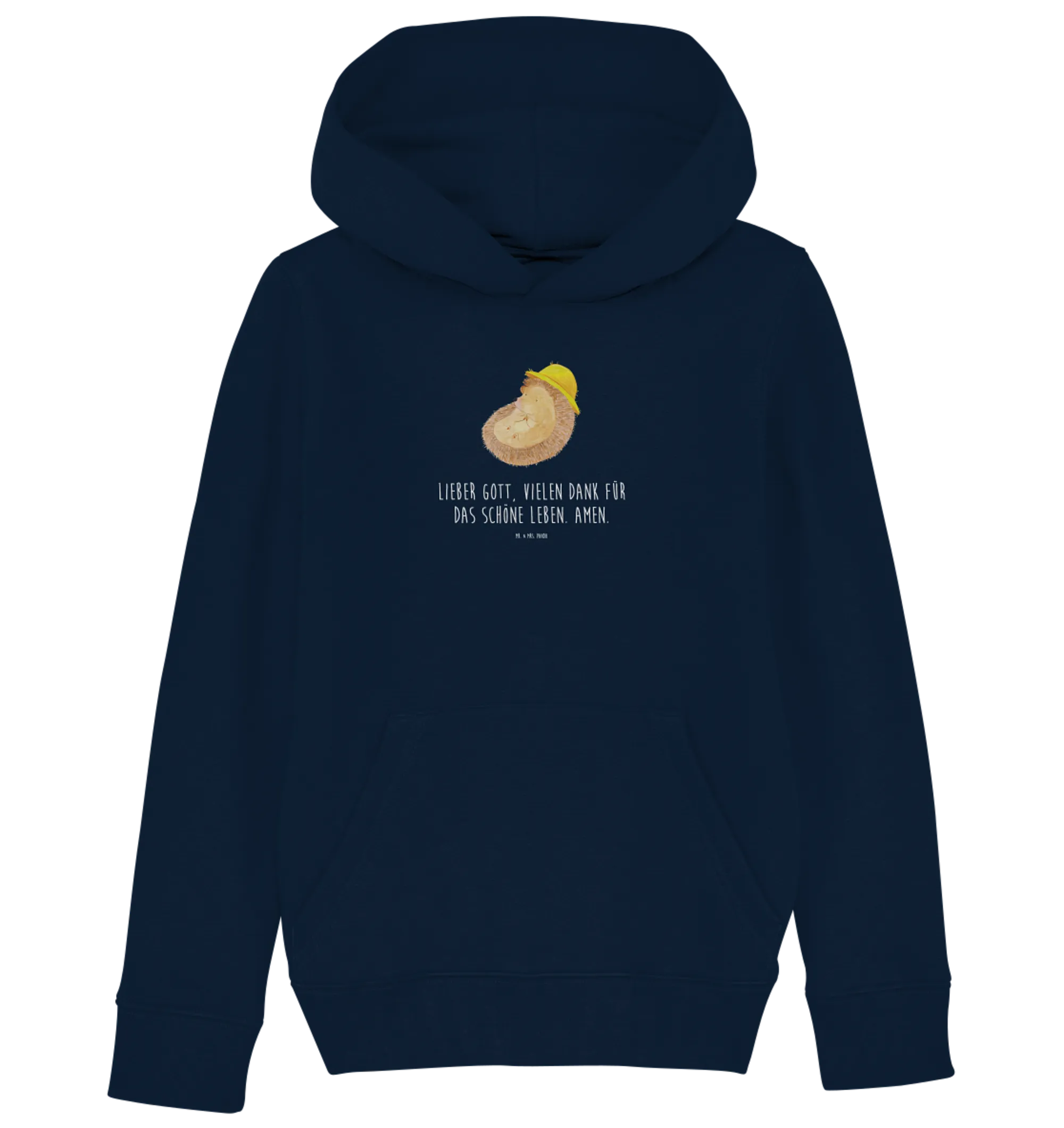 Mit dem Spruch 'Lieber Gott, vielen Dank für das schöne Leben. Amen.' wird dieser Hoodie zu einem ganz besonderen Kleidungsstück. Schenke Freude und gute Laune mit dem Organic Kinder Hoodie 'Igel betet' von Mr. & Mrs. Panda!