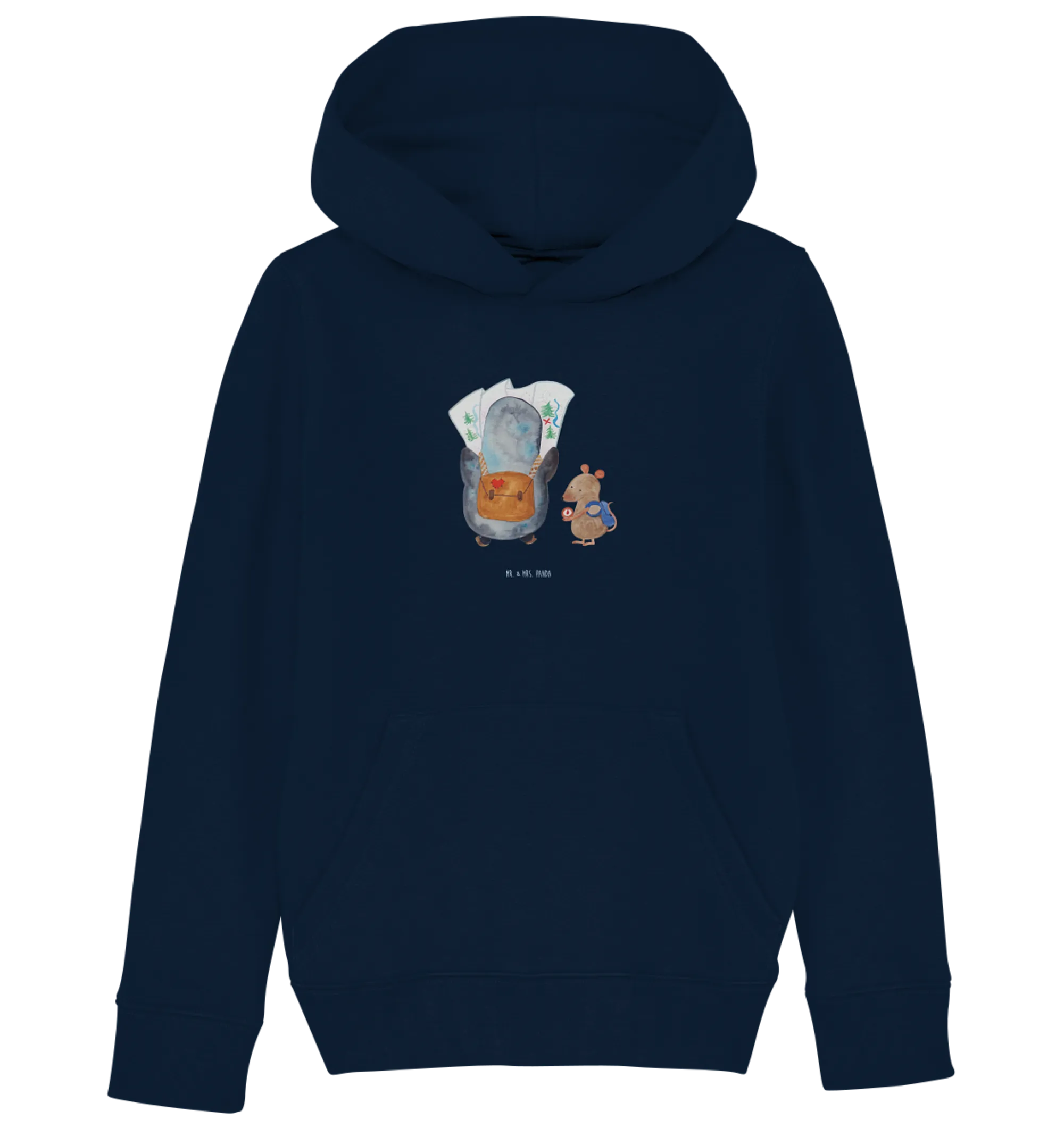 Organiczna bluza z kapturem dla dzieci Pingwin i Mysz Wędrowcy - 5-6 Jahre (110/116) - z napisem - French Navy