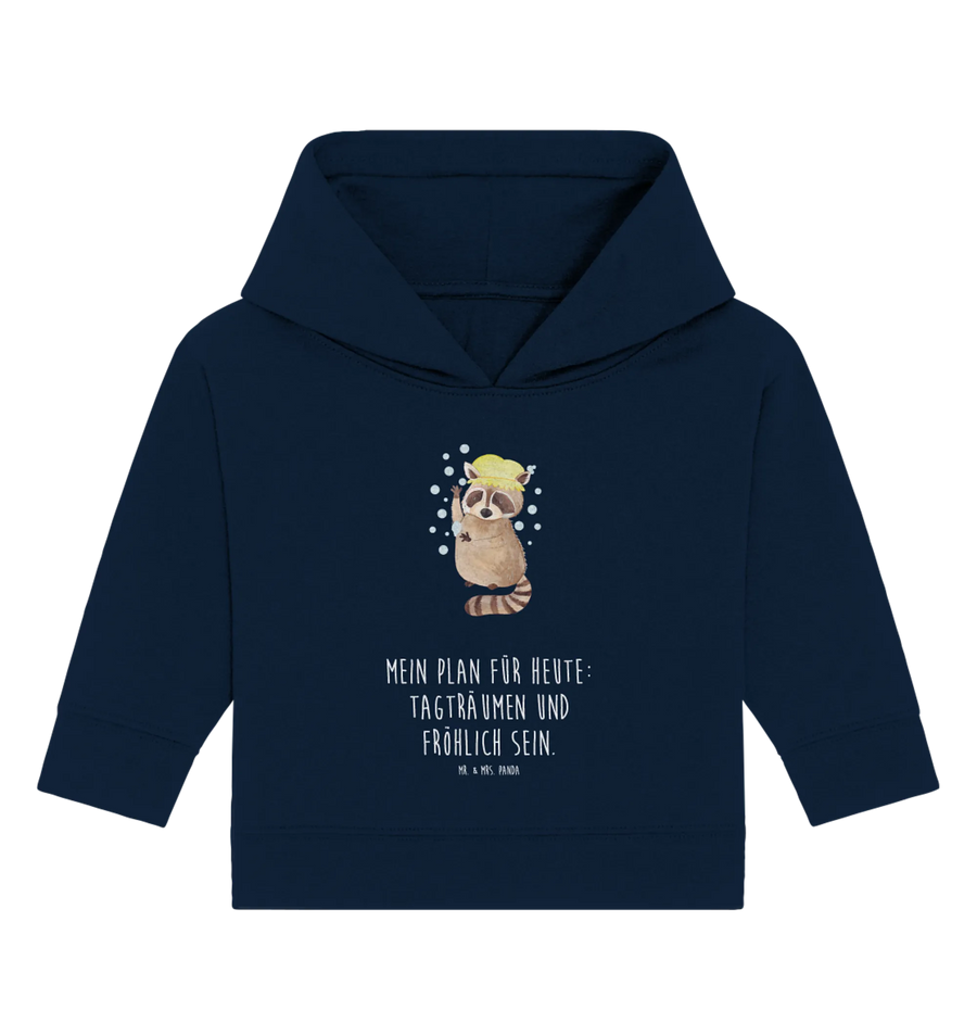 Unser Organic Baby Hoodie mit dem süßen Waschbär-Motiv ist einfach perfekt für kleine Abenteurer! Wenn Du auf der Suche nach einem liebevollen Geschenk für einen besonderen Anlass bist, dann hast Du es gefunden. Der Hoodie kommt aus der zauberhaften Small World Kollektion von Mr. & Mrs. Panda, die für bunte Tiermotive und Gute Laune steht. Mit seinem fröhlichen Slogan "Mein Plan für heute: Tagträumen und fröhlich sein." versprüht dieser Hoodie pure Lebensfreude. Der niedliche Waschbär hat sein Plätzchen auf dem Hoodie eingenommen und begeistert jedes Kind, während er sie daran erinnert, die kleinen Freuden des Lebens zu genießen.
