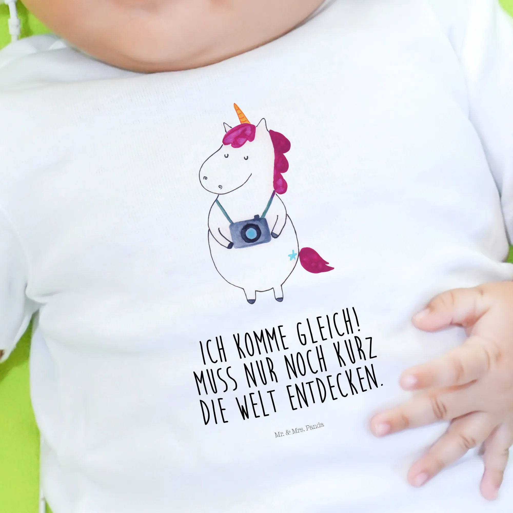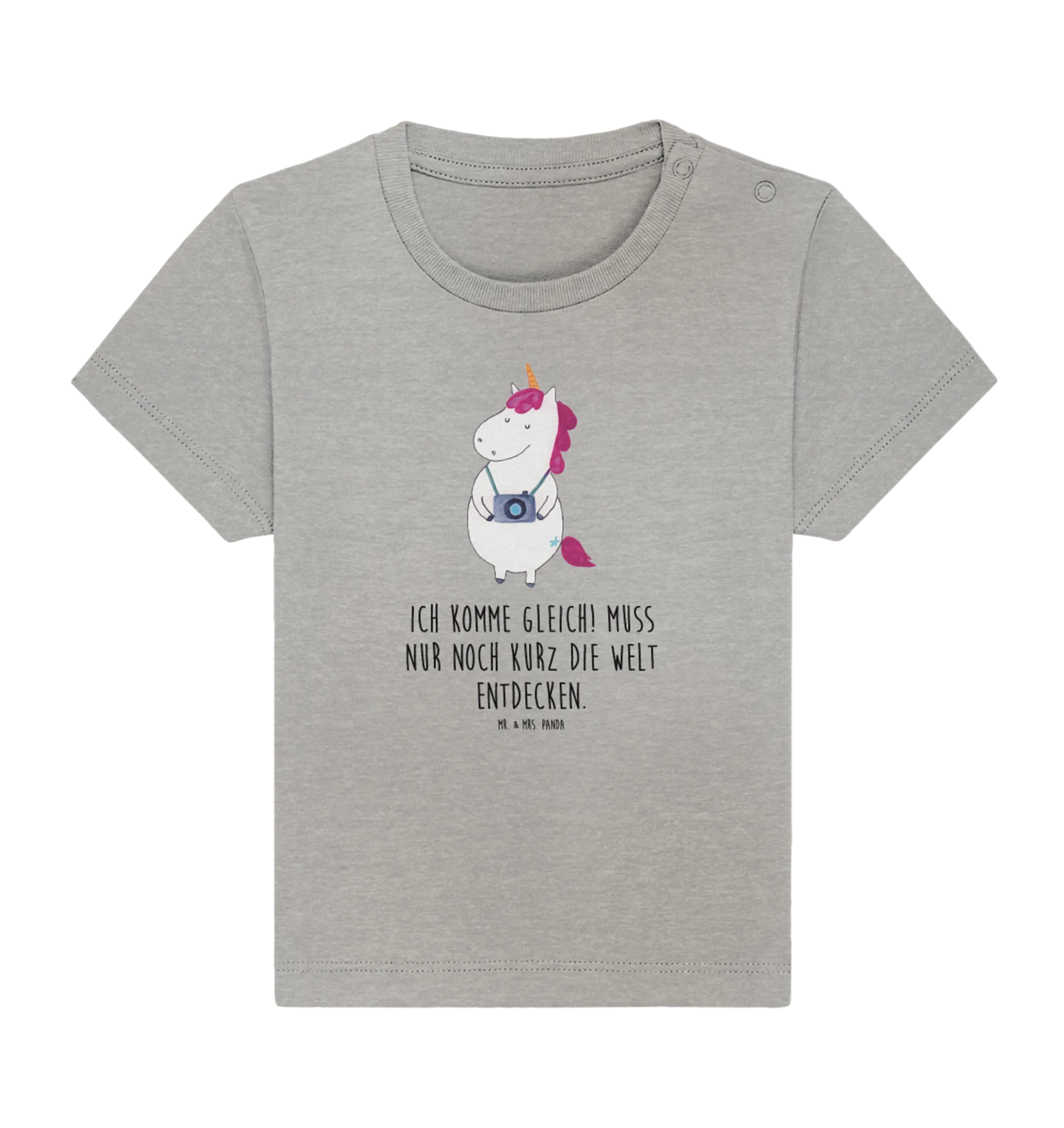 Organiczna koszulka dla niemowląt Jednorożec fotograf - 6. - 12. Monat - z napisem - biały
