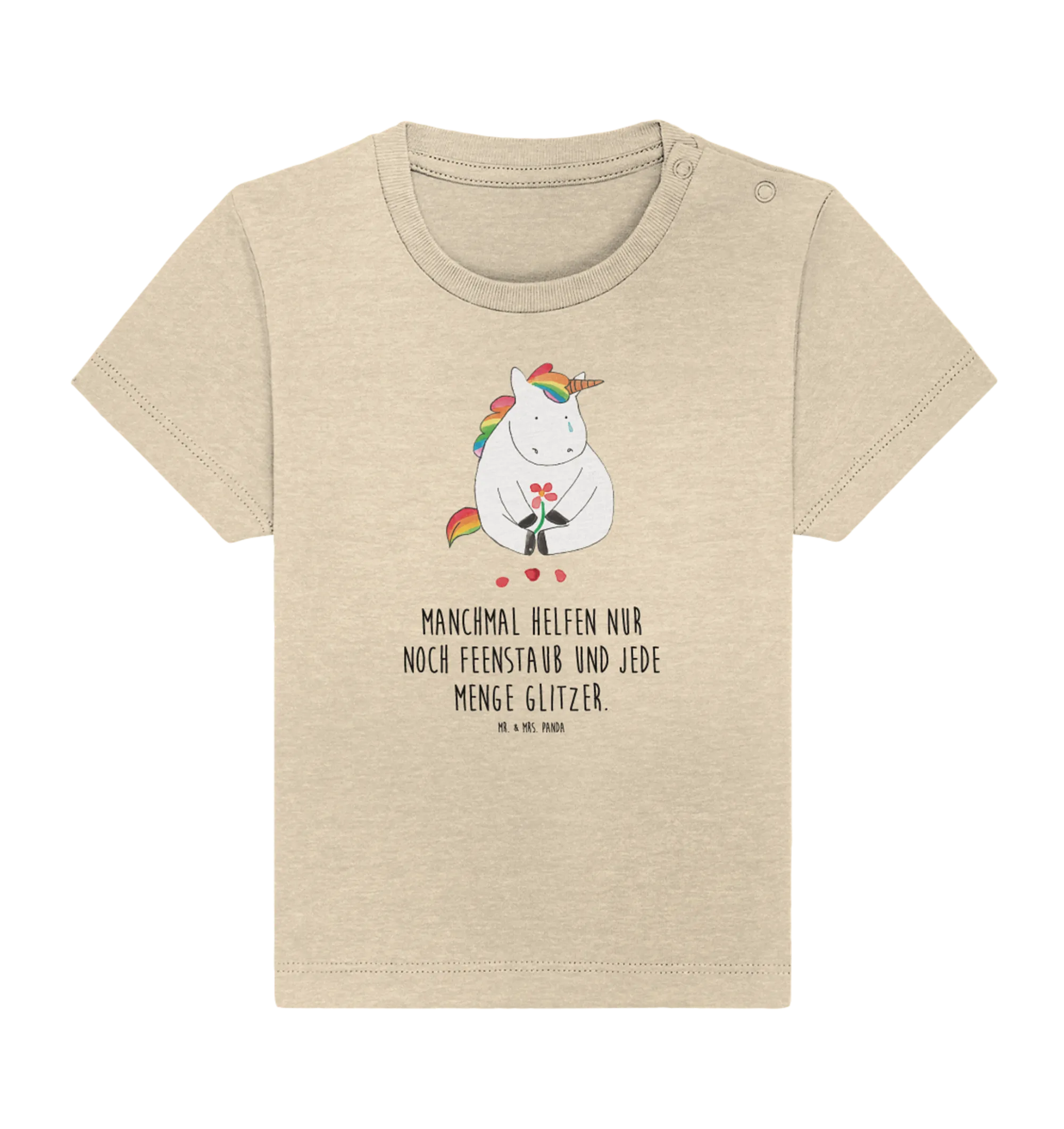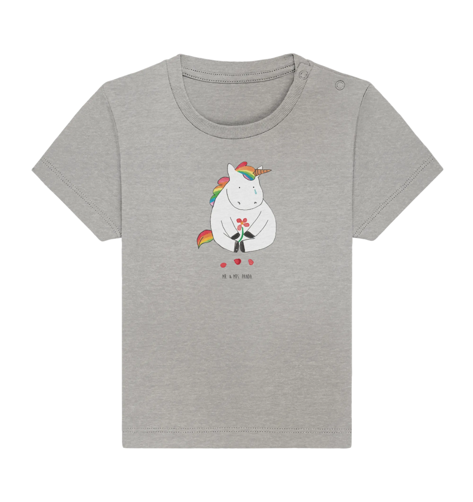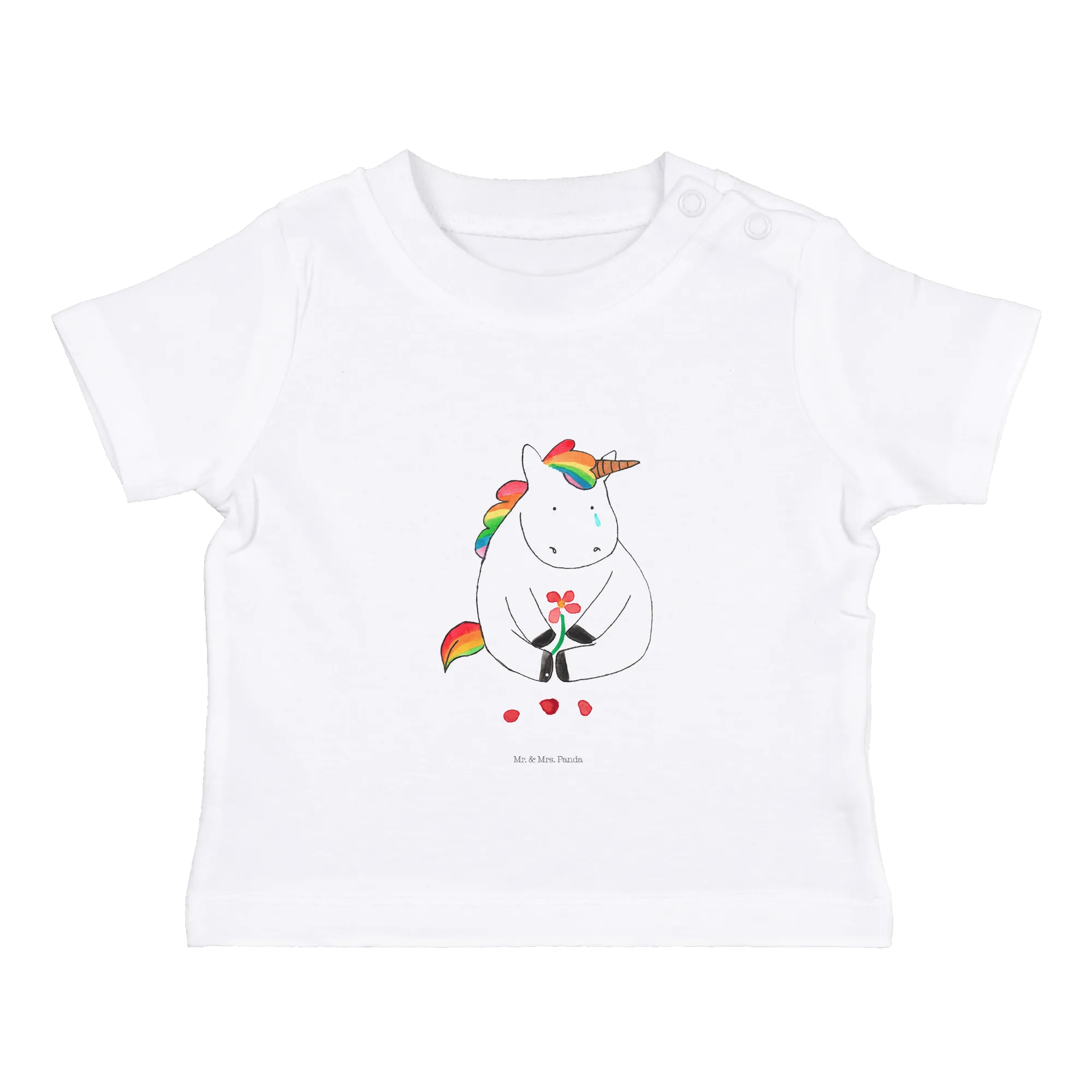 Organiczna koszulka dla niemowląt Jednorożec Smutny - 6. - 12. Monat - z napisem - biały
