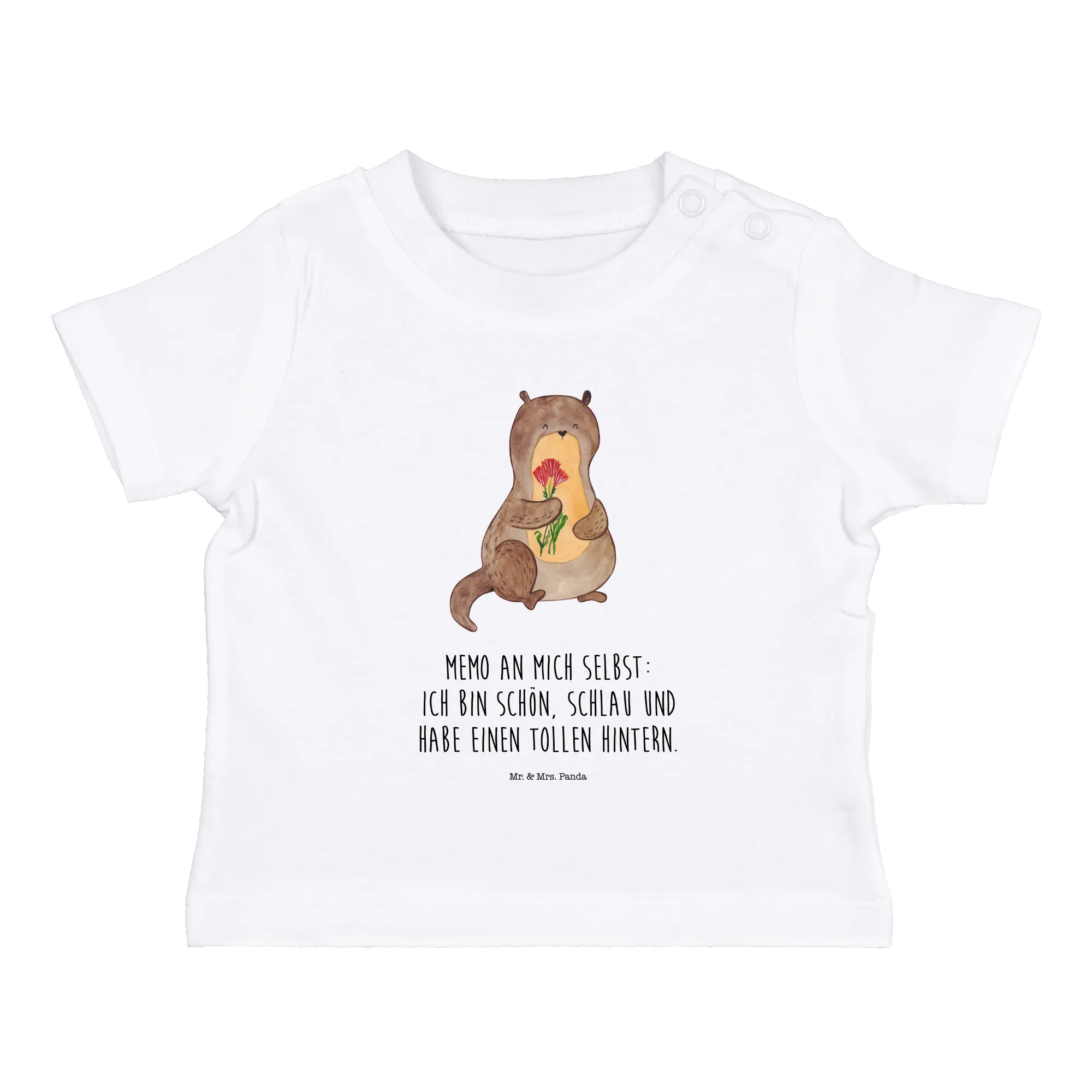 Organiczna koszulka dla niemowląt wydra bukiet kwiatów - 6. - 12. Monat - z napisem - biały