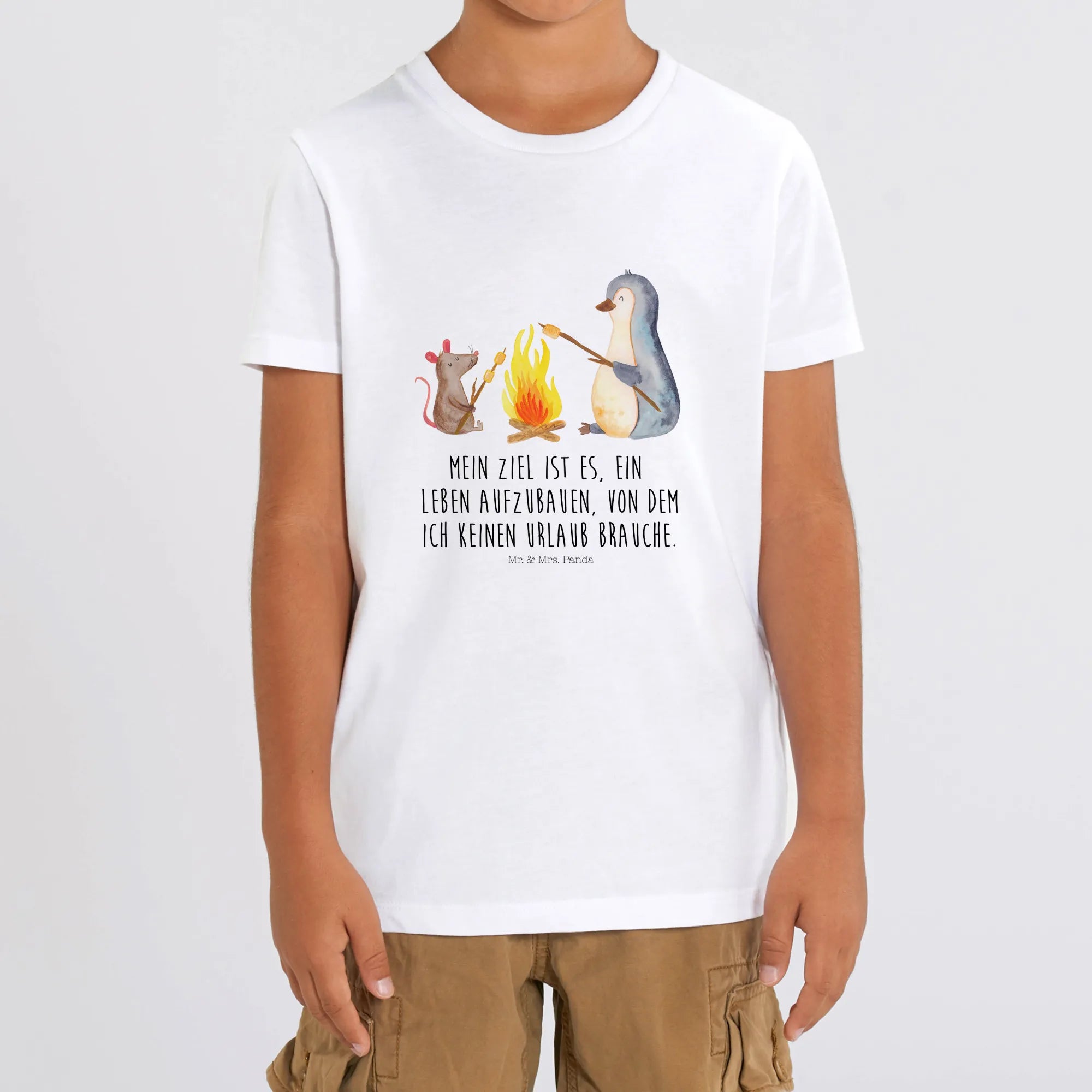 Organiczna koszulka dziecięca pingwin ognisko - 3-4 Jahre (98/104) - z napisem - biały