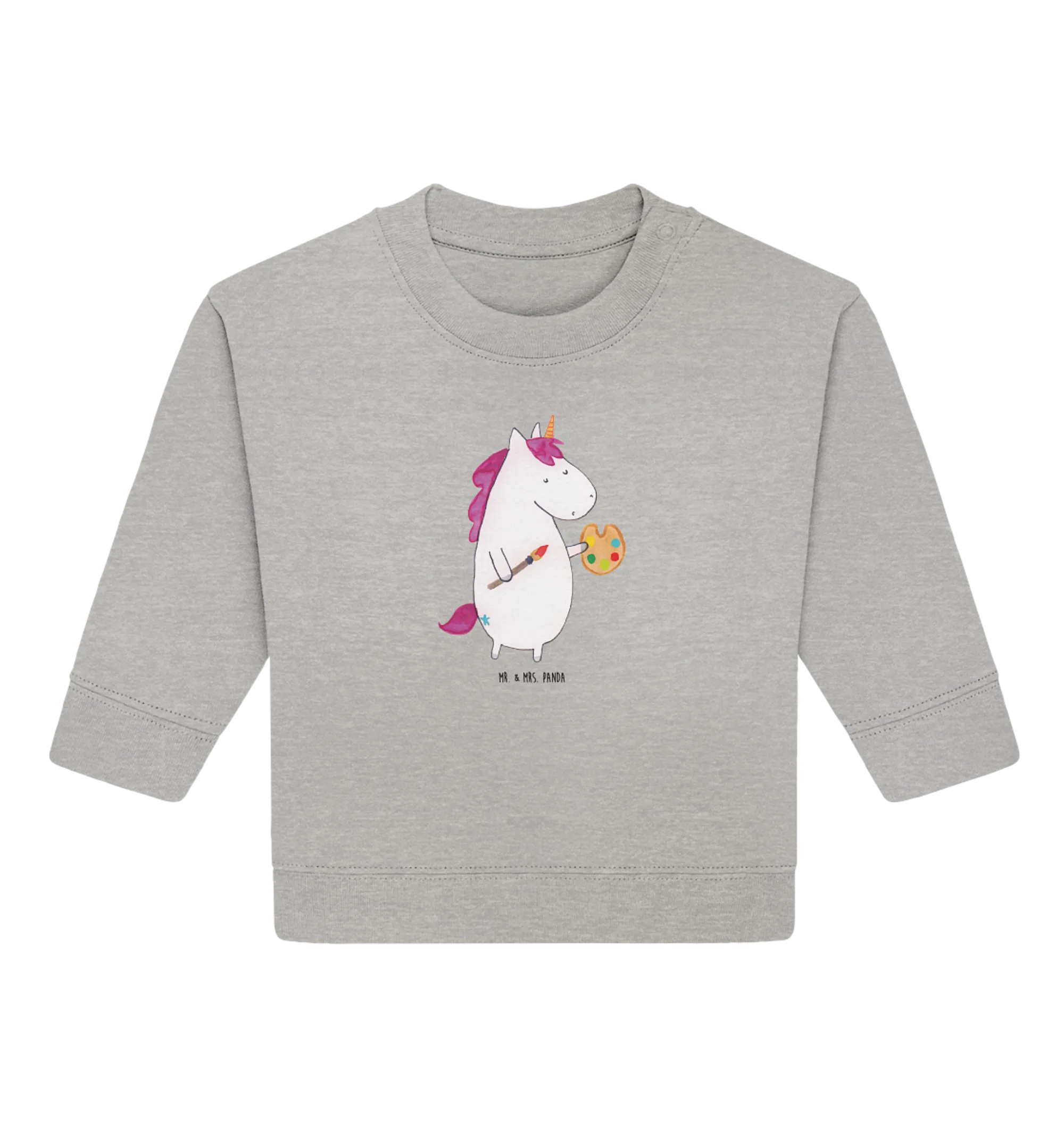 Der Organic Baby Pullover mit dem zauberhaften Motiv "Einhorn Künstler" aus unserer exklusiven Einhorn-Kollektion ist das perfekte Geschenk für kleine kreative Köpfe!