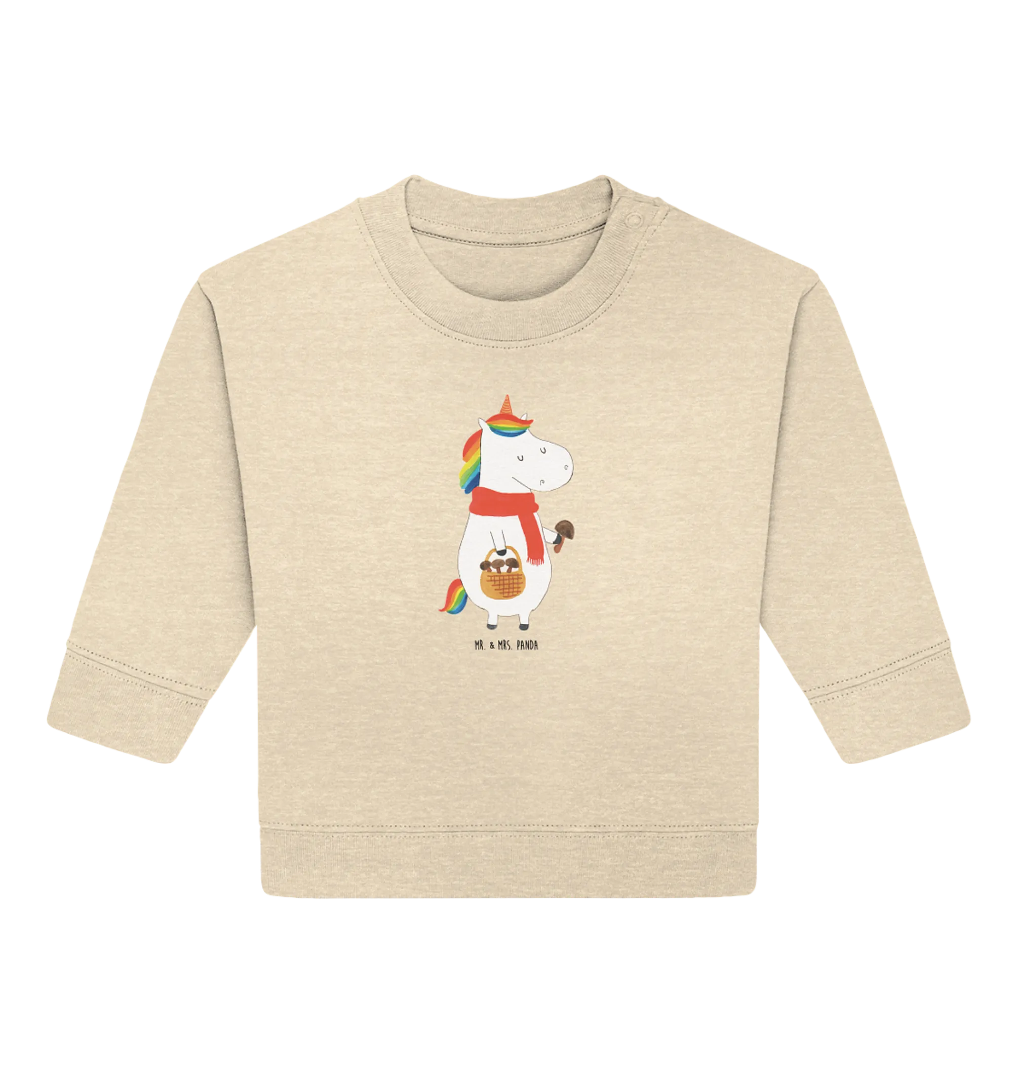 Der Organic Baby Pullover mit dem zauberhaften Einhorn Pilz-Motiv aus der speziellen Einhorn - Kollektion von Mr. & Mrs. Panda ist das perfekte Geschenk für kleine Einhornliebhaber.