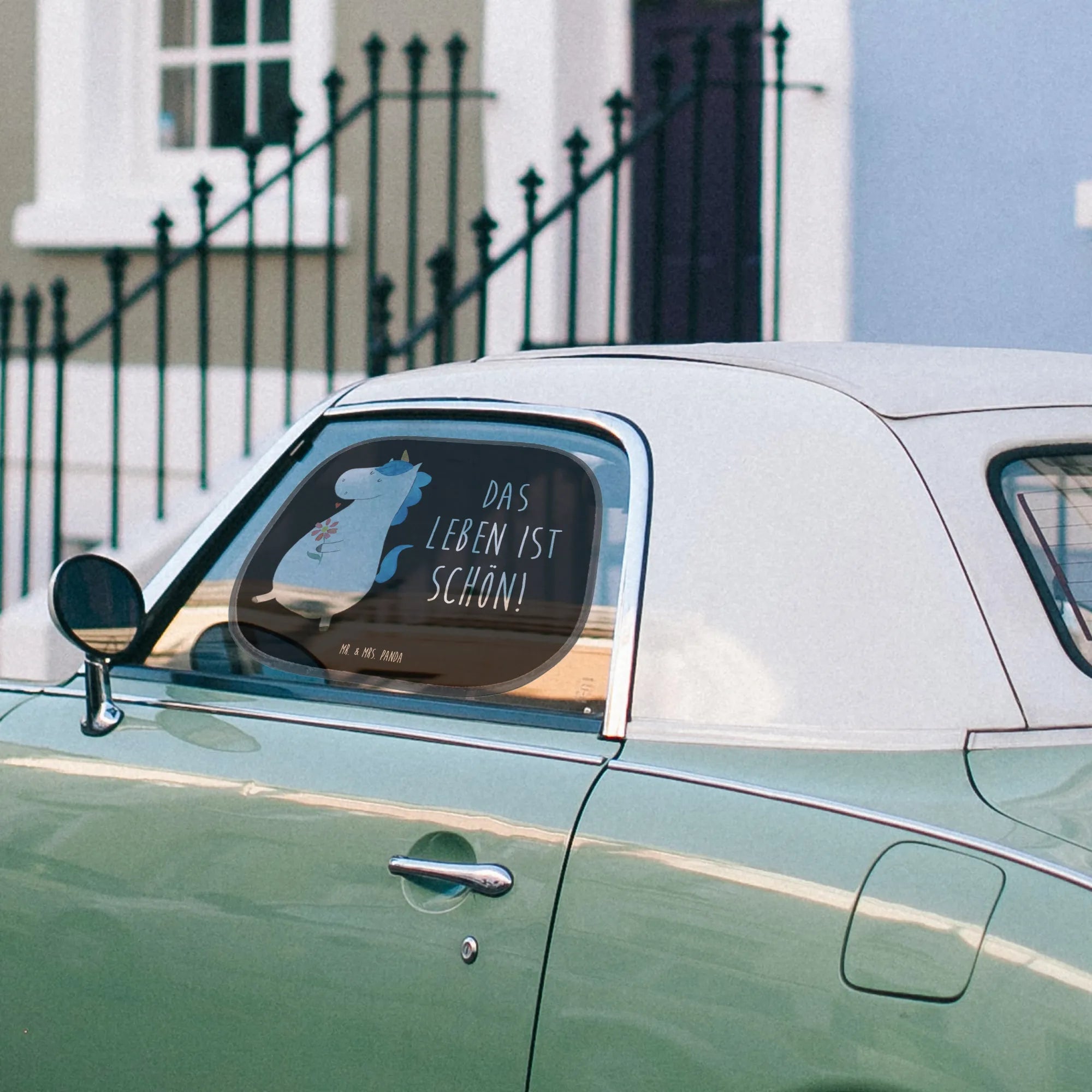 Osłona przeciwsłoneczna do samochodu Jednorożec spacer - z napisem - Biały