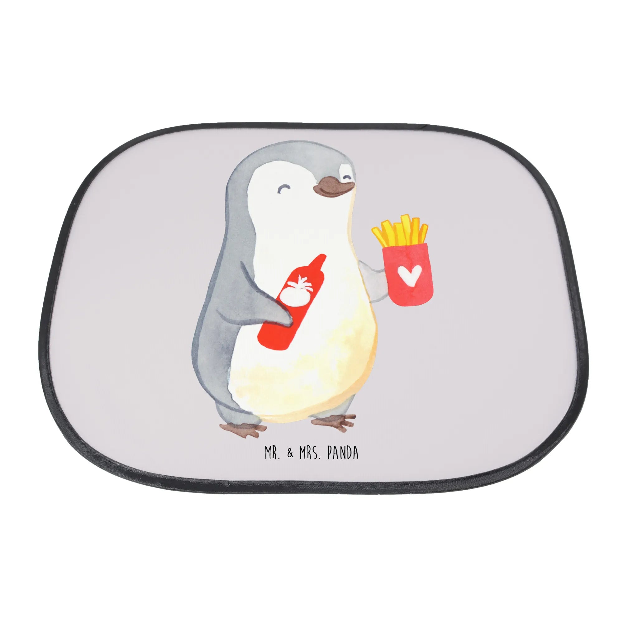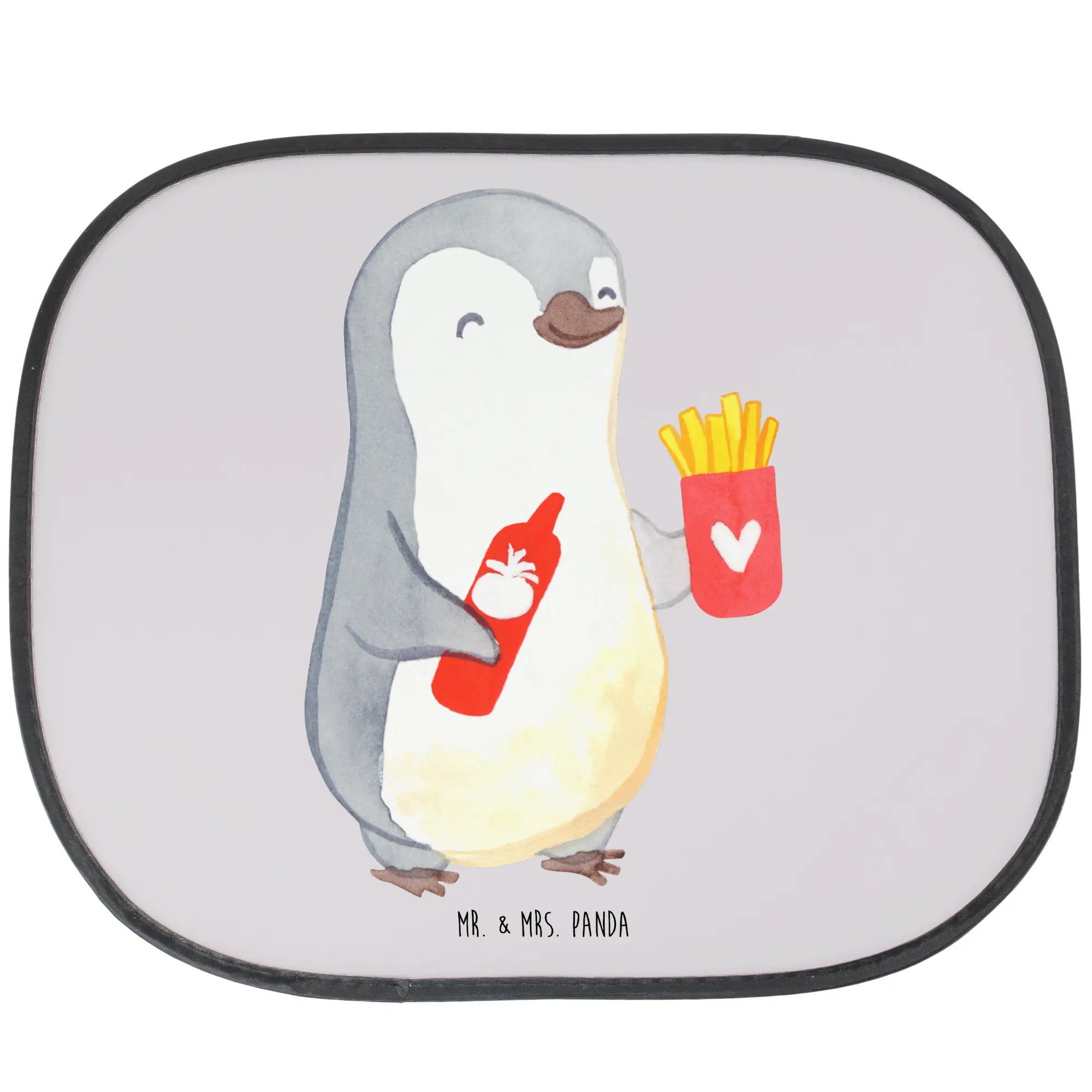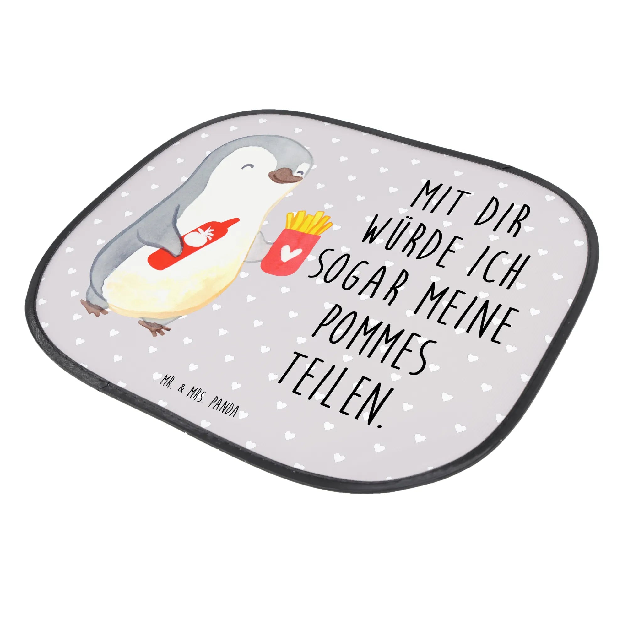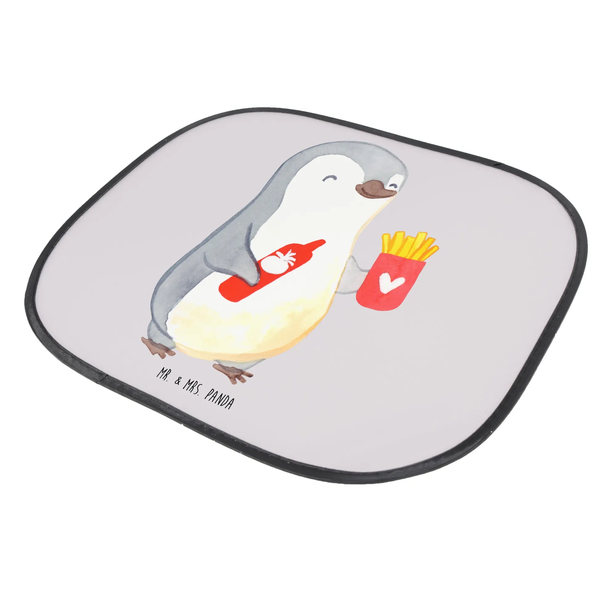 Osłona przeciwsłoneczna do samochodu pingwin frytki - z napisem - Szary Pastel
