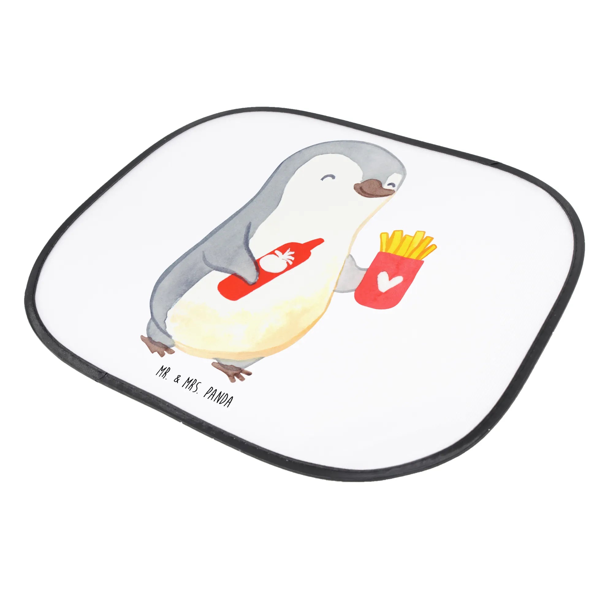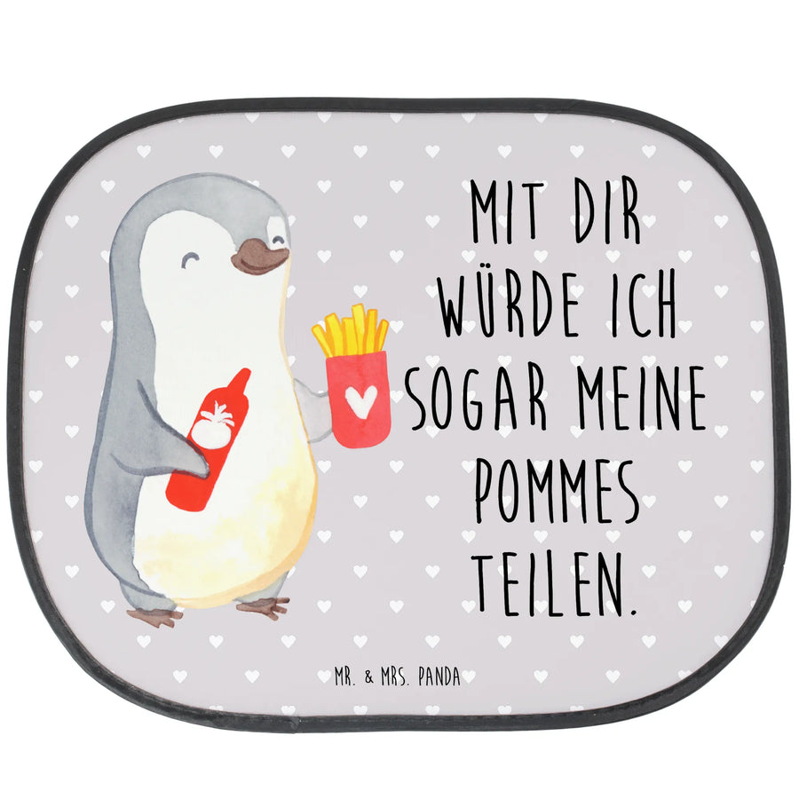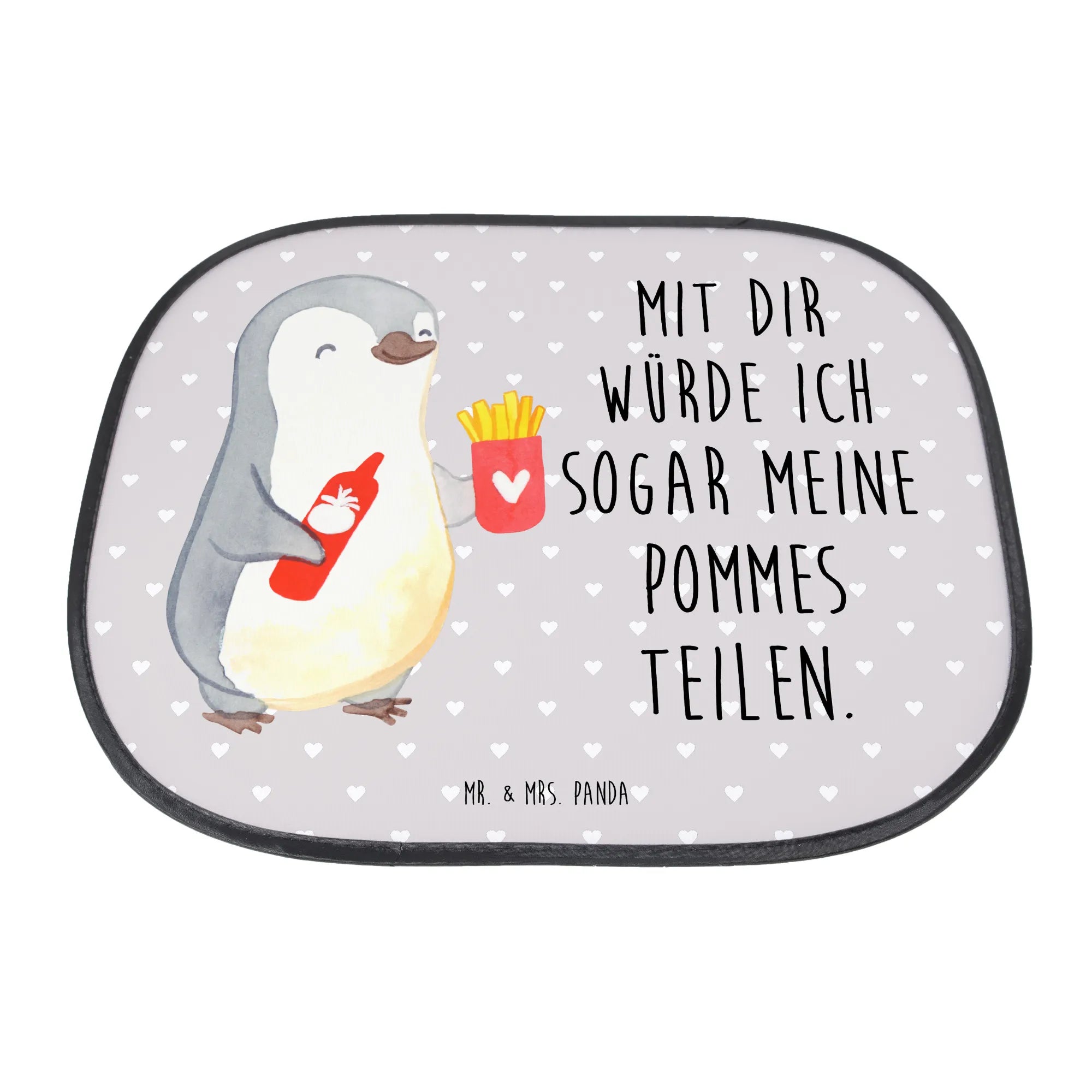 Osłona przeciwsłoneczna do samochodu pingwin frytki - z napisem - Szary Pastel