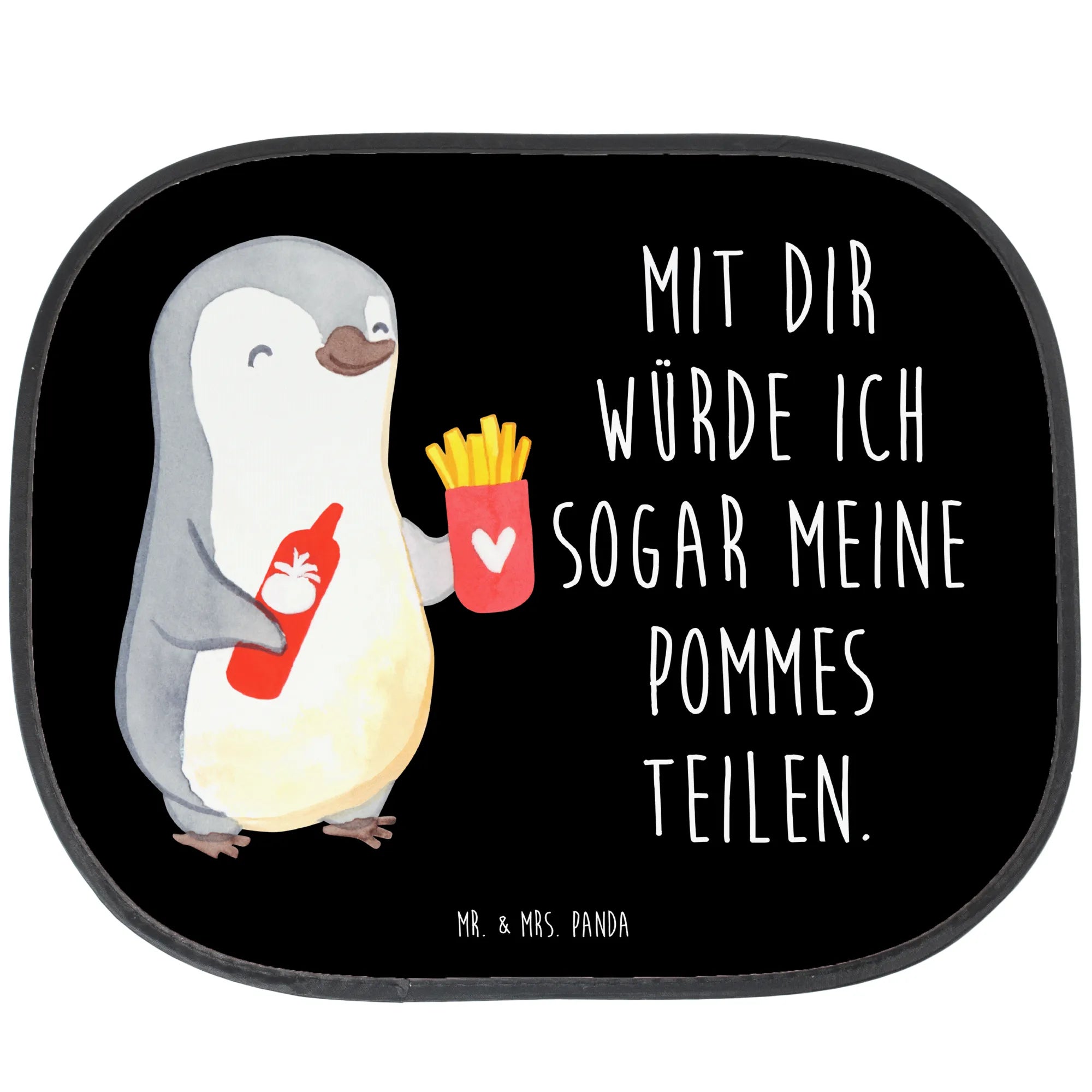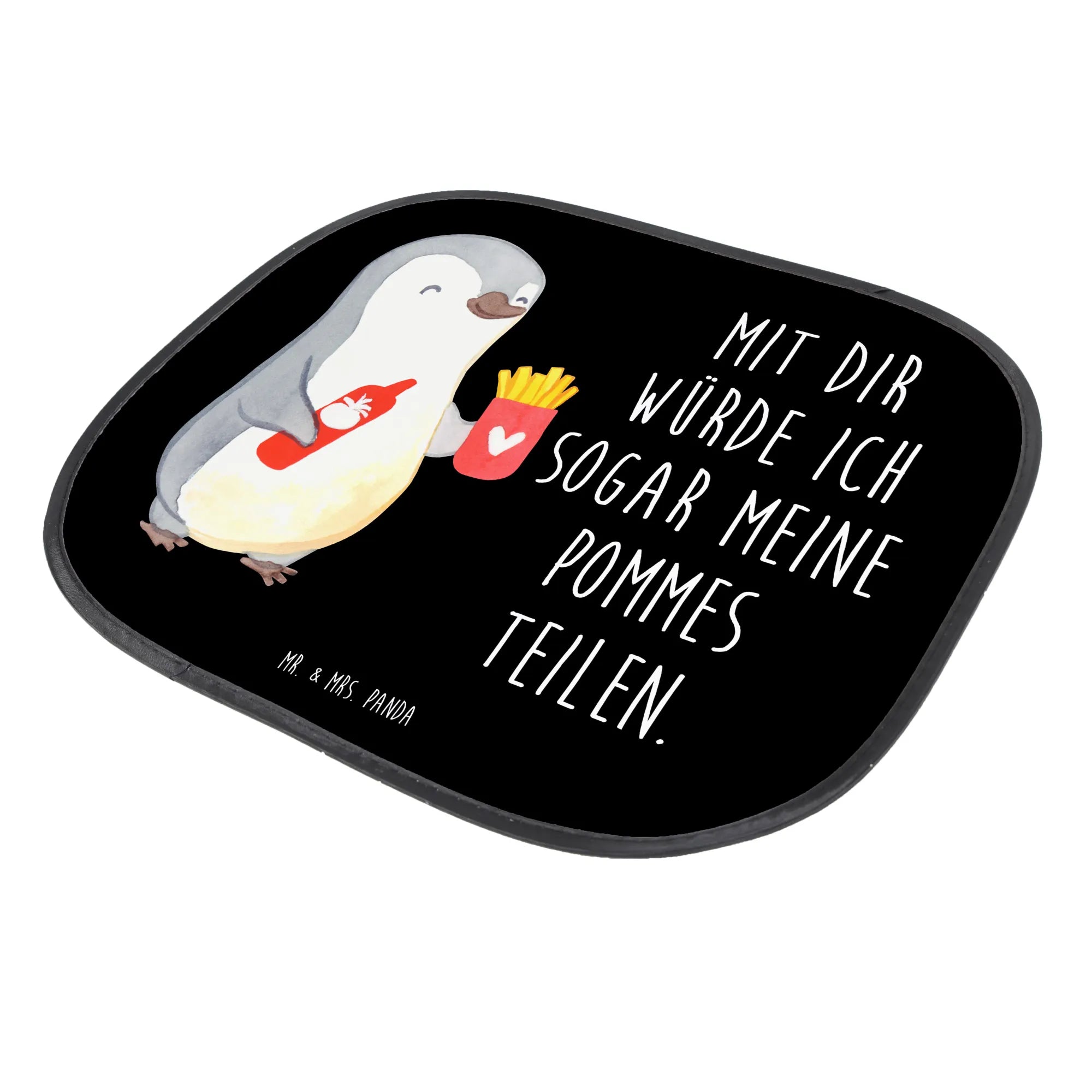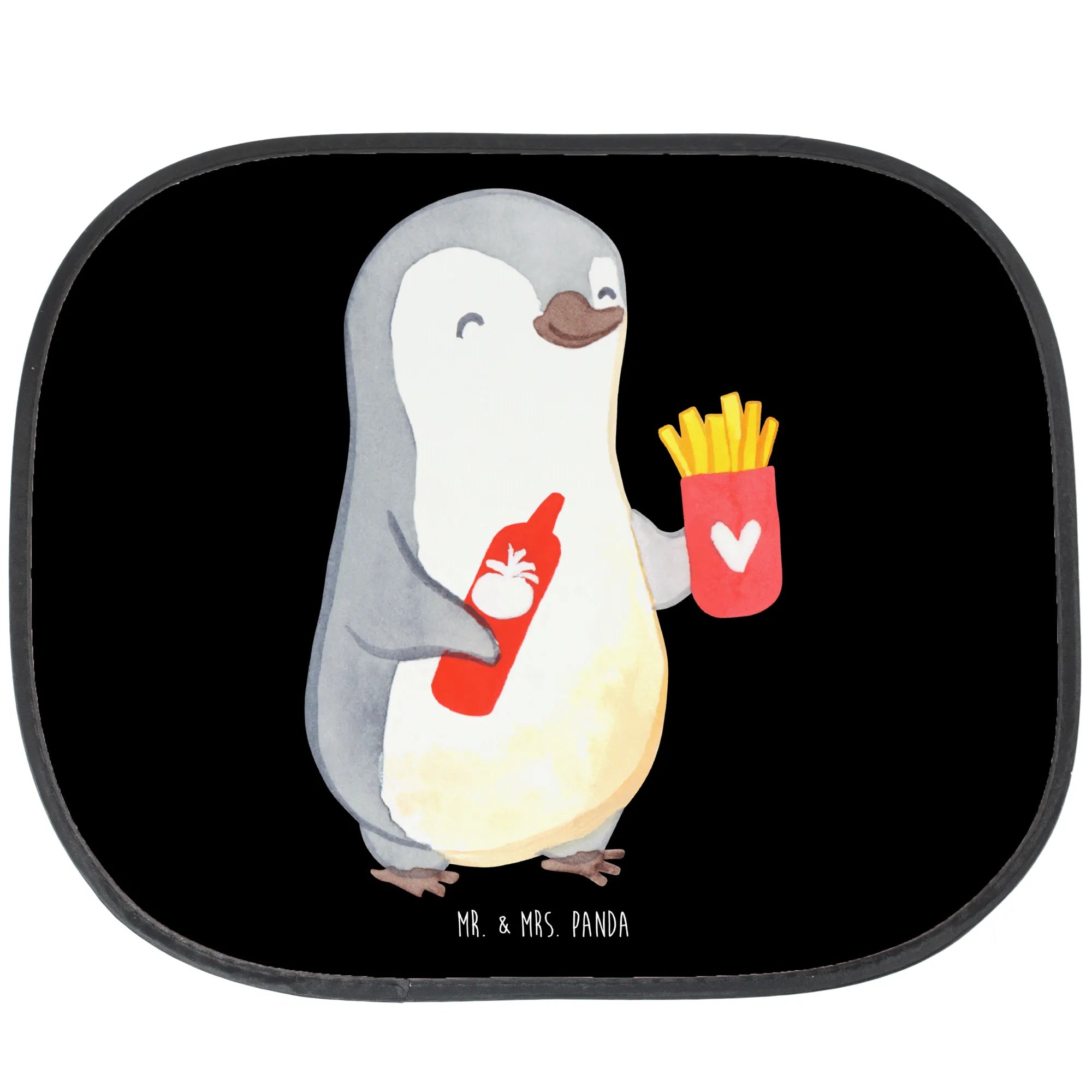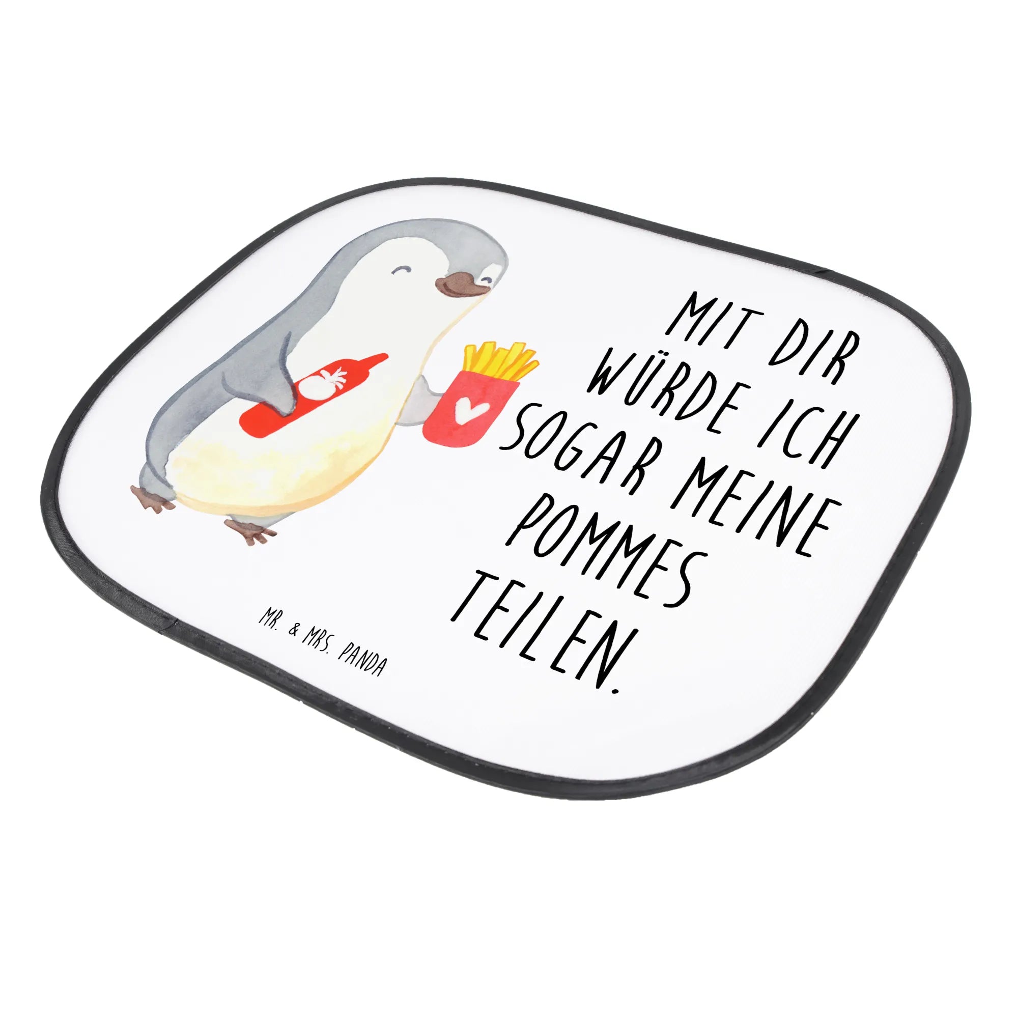 Osłona przeciwsłoneczna do samochodu pingwin frytki - z napisem - Szary Pastel