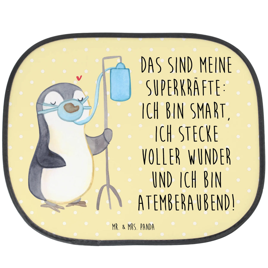 Unser Sonnenschutz Auto von Mr. & Mrs. Panda zeigt einen Pinguin an einem Sauerstoffgerät aus der Kollektion „Tiere mit Superkräften“. Er bietet seitlichen Sonnenschutz und Hitzeschutz fürs Auto, reduziert Blendung und schützt die Autoscheibe vor zu starker Sonneneinwirkung. Das Motiv trägt den Satz: „Das sind meine Superkräfte: ich bin smart, ich stecke voller Wunder und ich bin atemberaubend!“ – ein ruhiges Statement für Anerkennung und Inklusion.