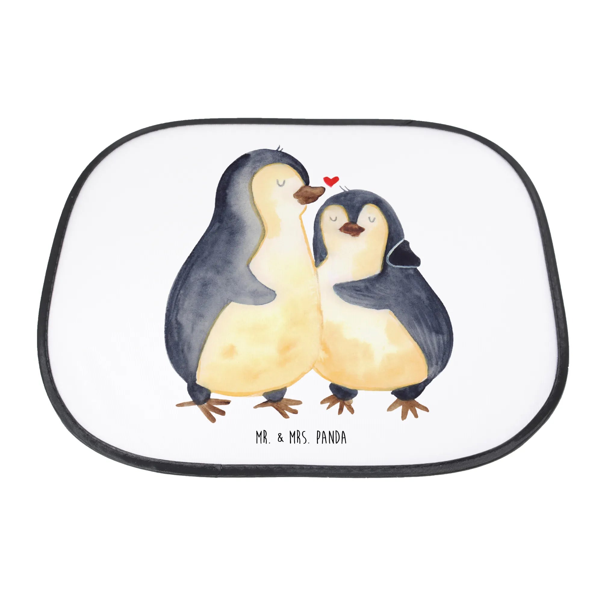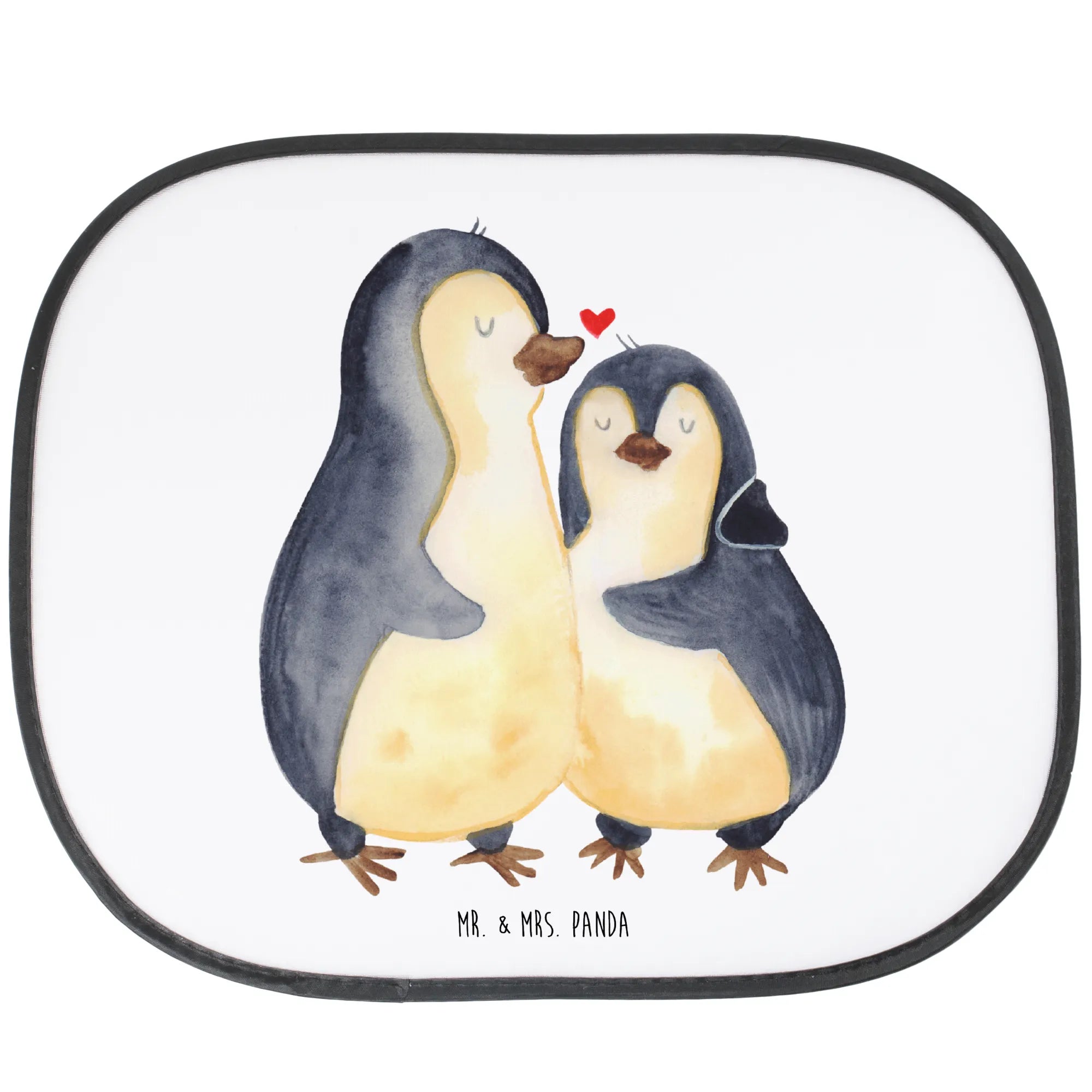 Mr. & Mrs. Panda Sonnenschutz Auto „Pinguine Einschlafen“ – ein kleines Geschenk voller Wärme und Funktion. Die zwei Pinguine kuscheln in zarten Aquarellfarben, ein rotes Herz schwebt über ihnen und der Spruch „Ich liebe es, neben dir einzuschlafen und aufzuwachen.“ macht den seitlichen Sonnenschutz zu einem perfekten Liebesgruß für unterwegs.