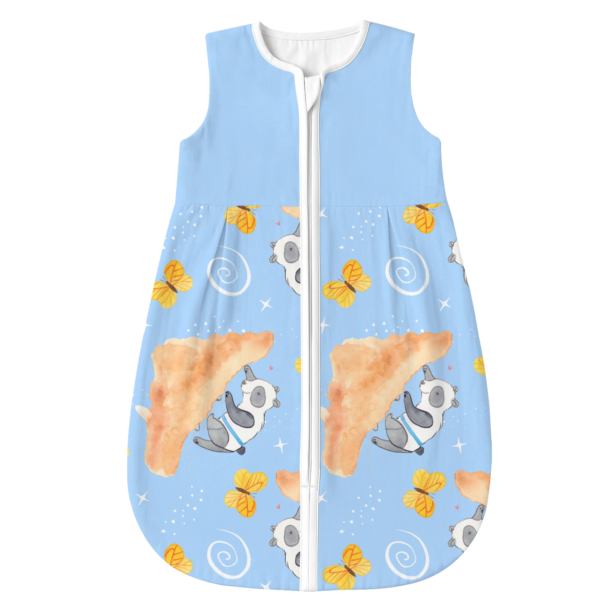Pflegehinweis: Der Schlafsack ist bei 30 °C in der Waschmaschine waschbar. Bitte verwende schonende Reinigungsmittel, damit der kletternde Panda noch lange so schön strahlt. Mach die Schlafenszeit zu einer Reise in die Berge! 🏔️💤