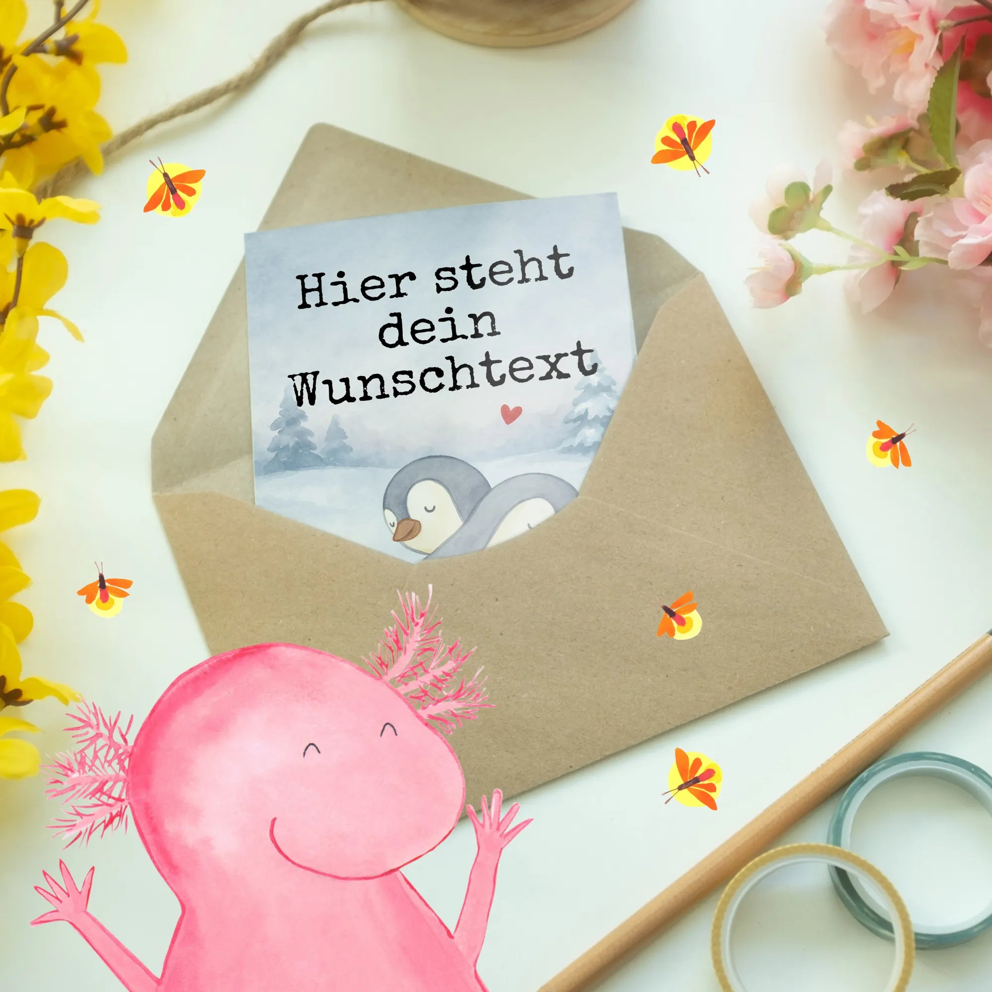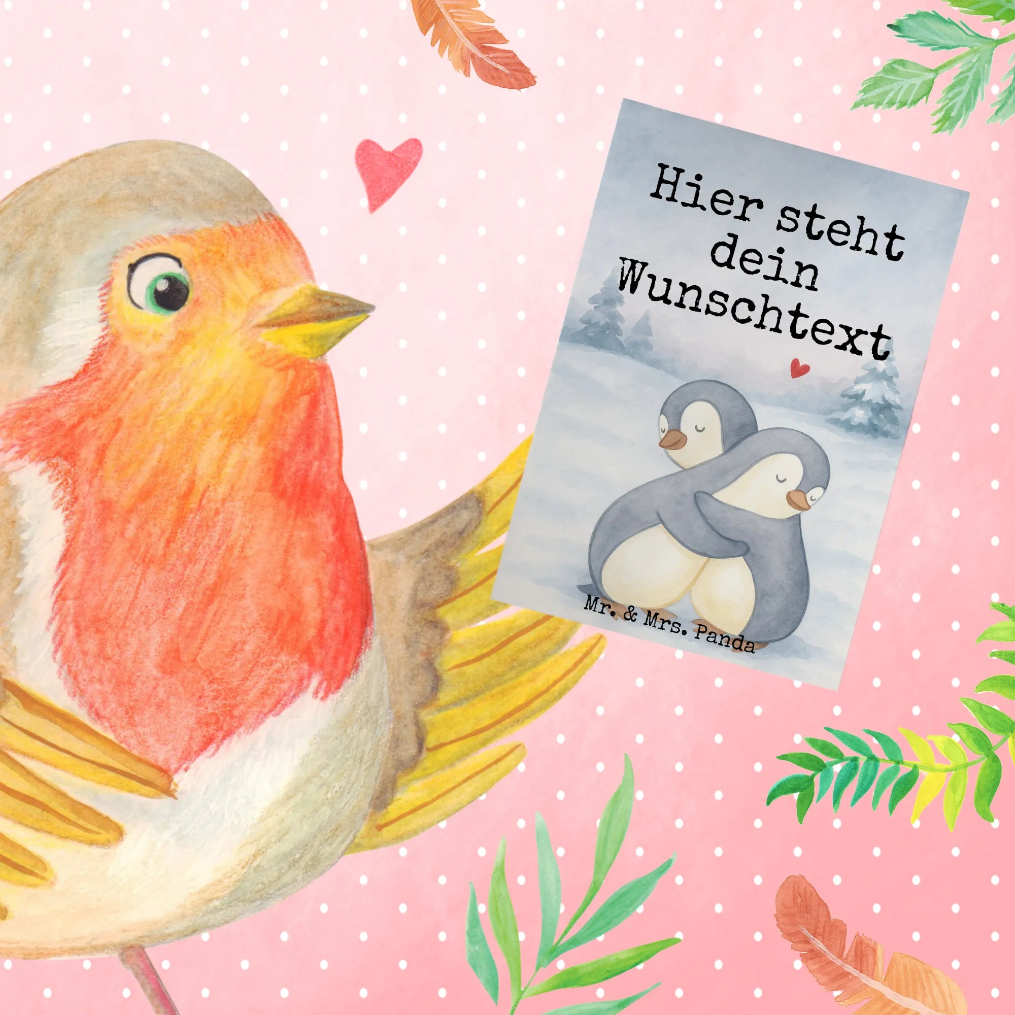 Personalised greetings card Pingwiny Przytulanie Design