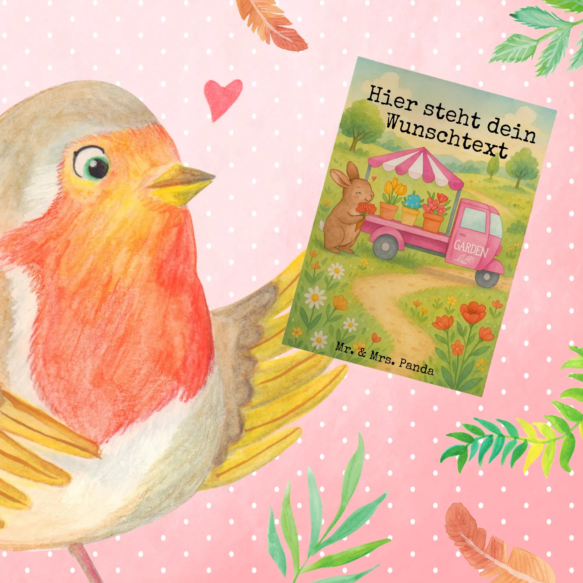 Personalised greetings card Zajączek wielkanocny Wózek kwiatowy Design