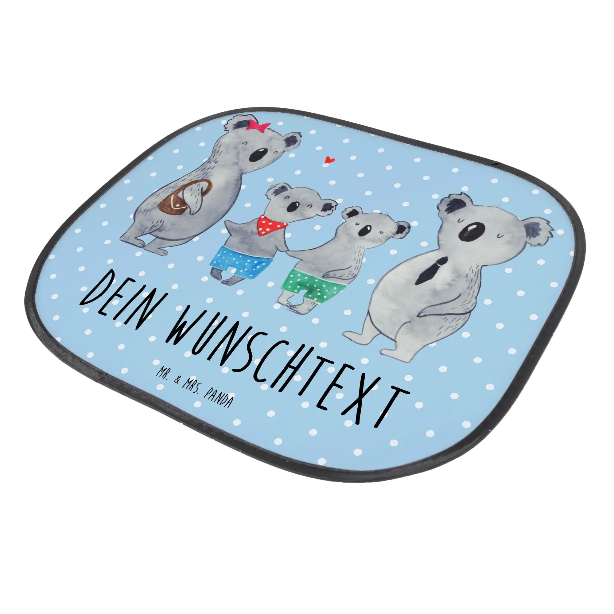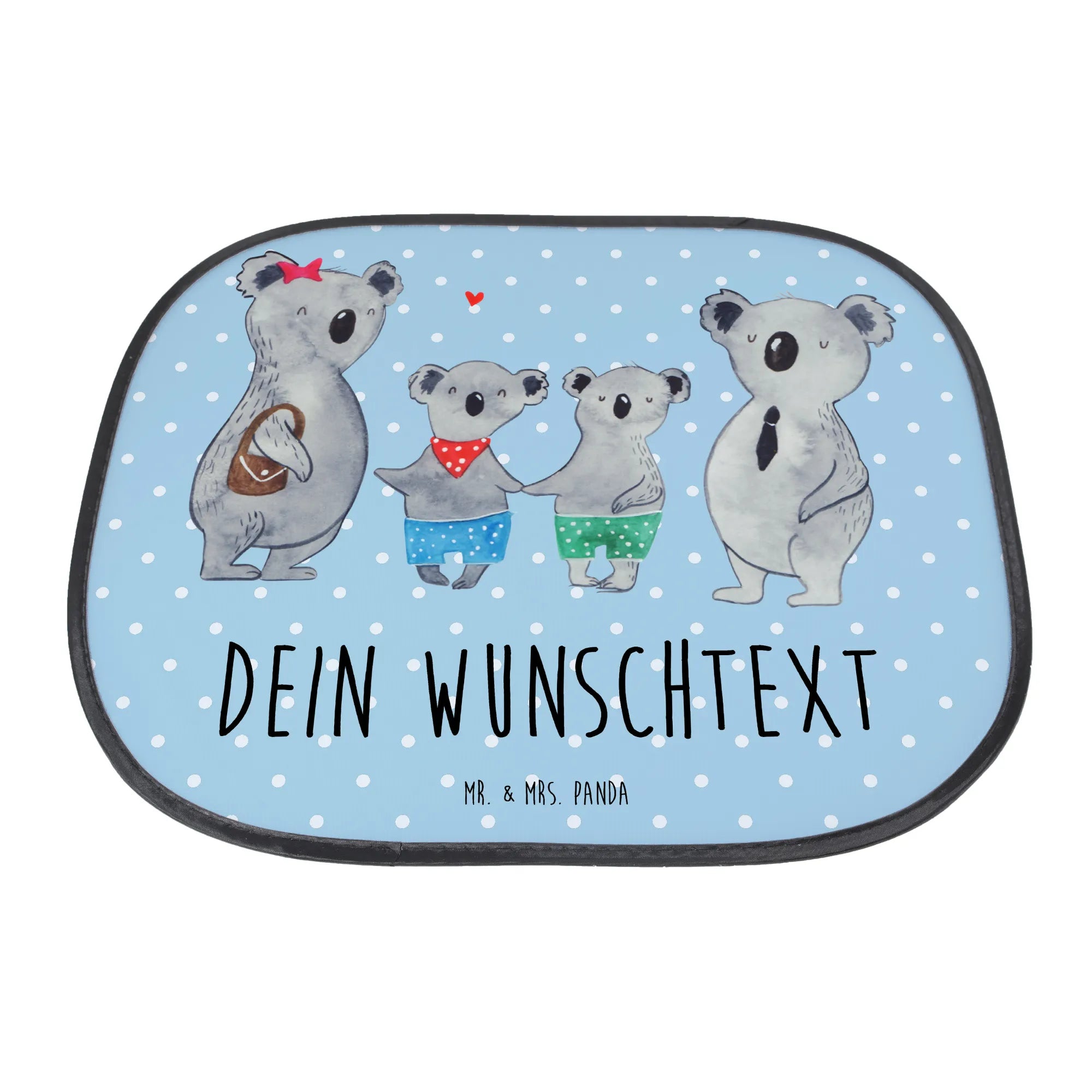 Personalisierbarer Sonnenschutz Koala Familie zwei - Blau Pastell
