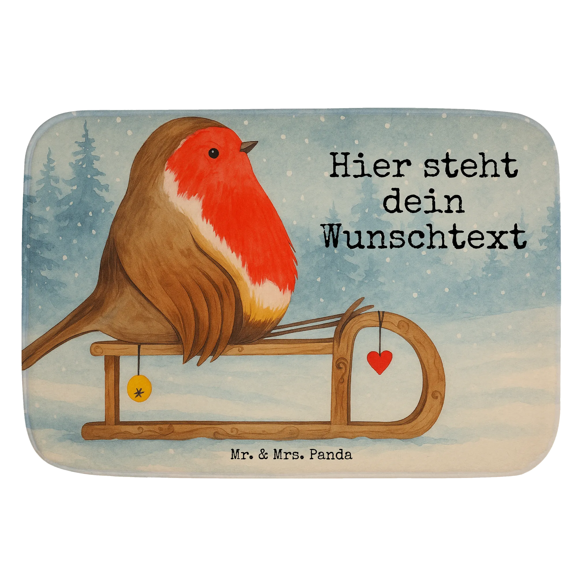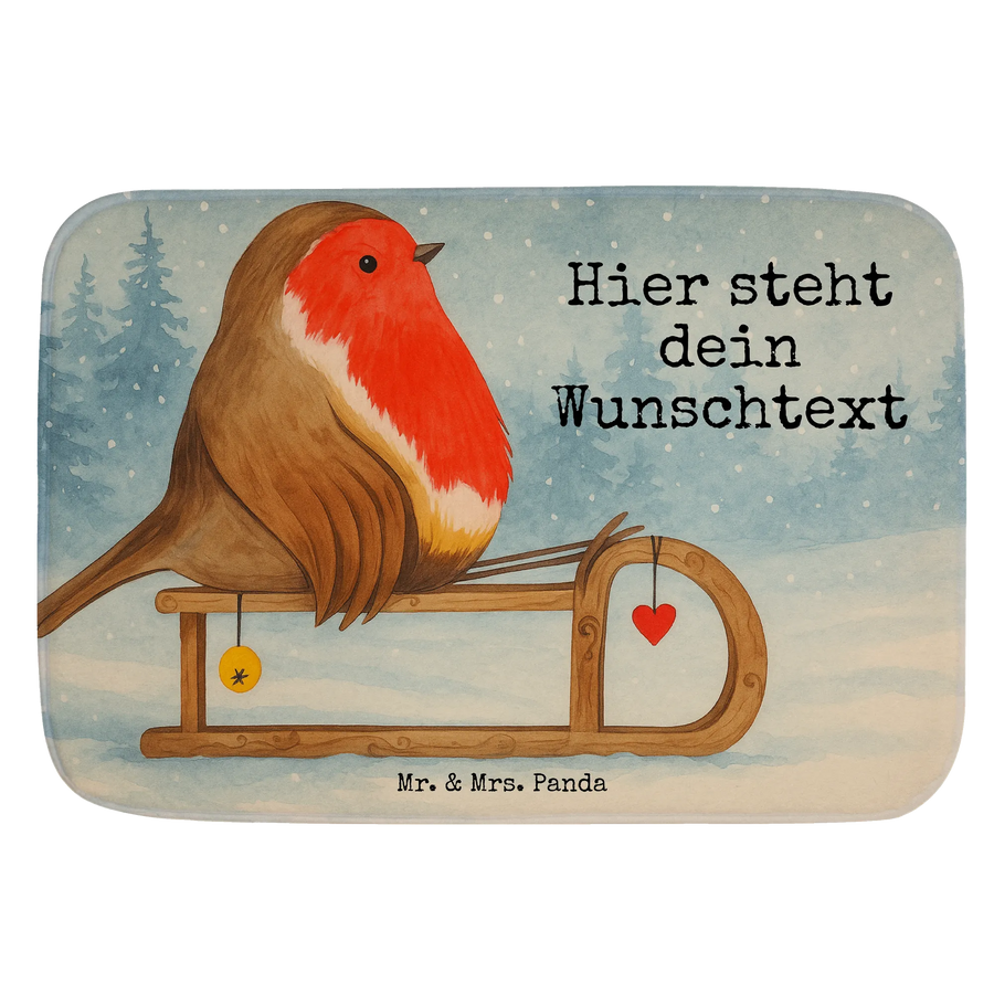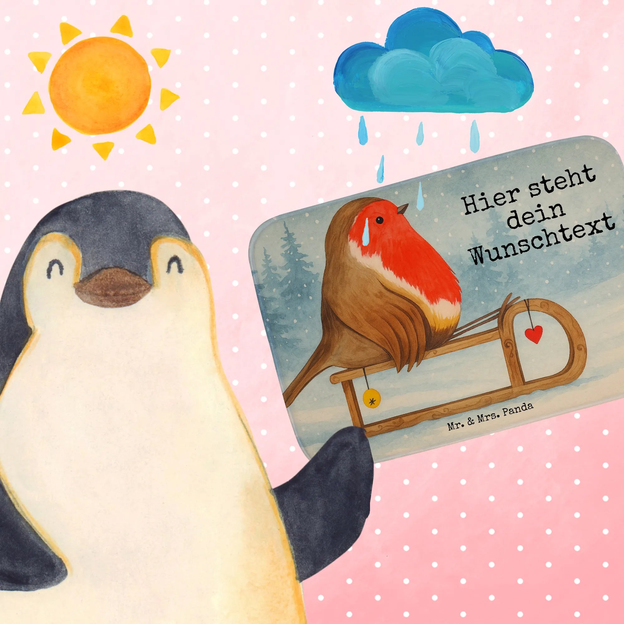 Personalisierte Badematte Rotkehlchen Schlitten Design