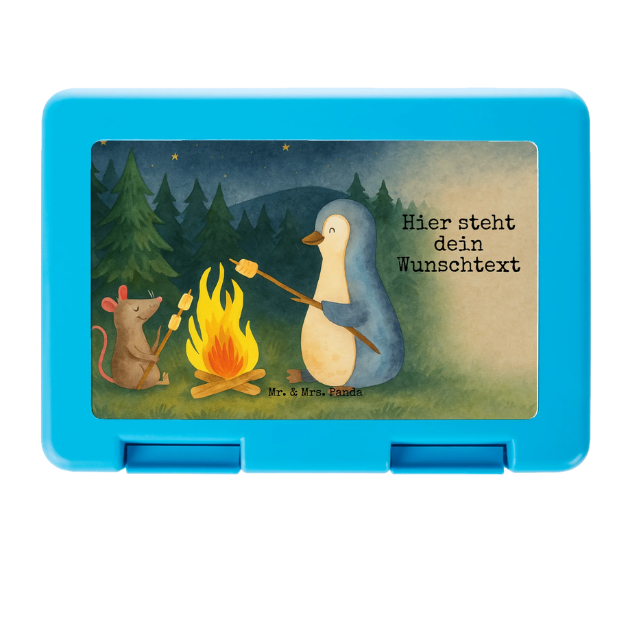 Personalisierte Brotdose Pinguin Lagerfeuer Design