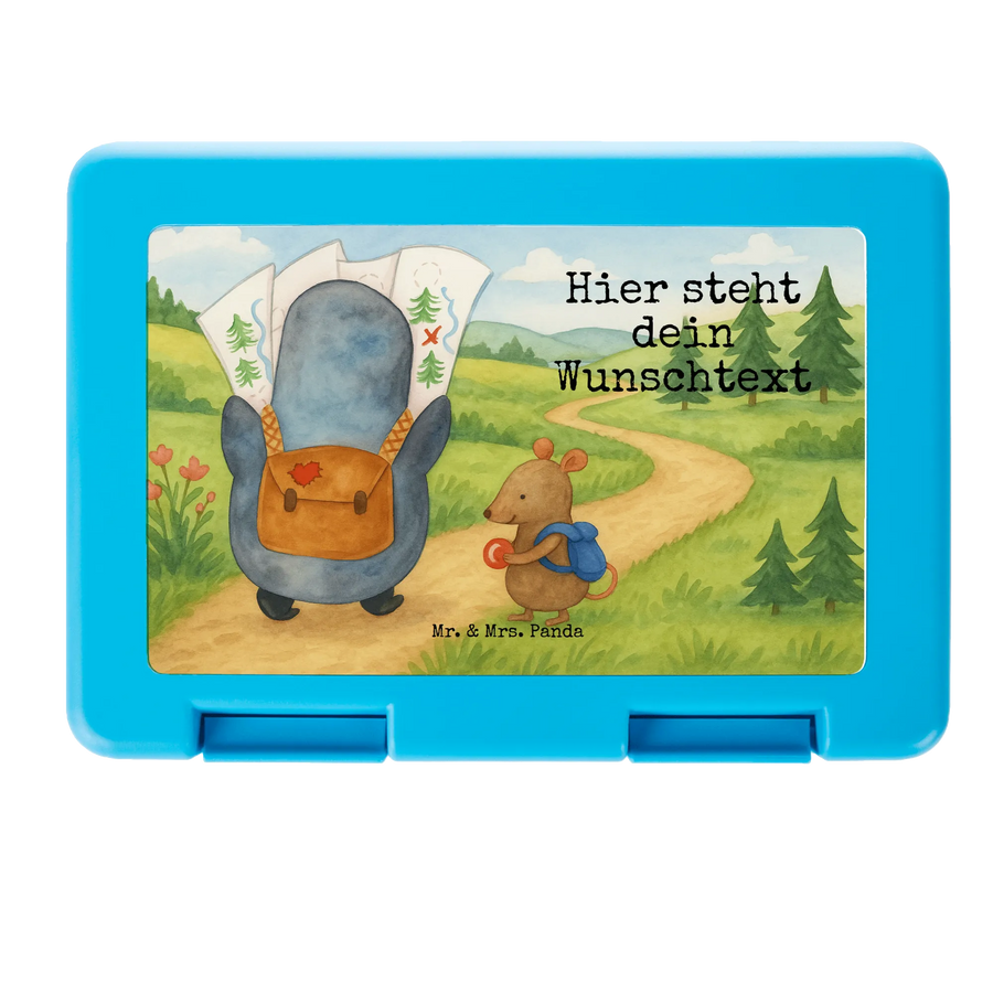 Personalisierte Brotdose Pinguin & Maus Wanderer Design