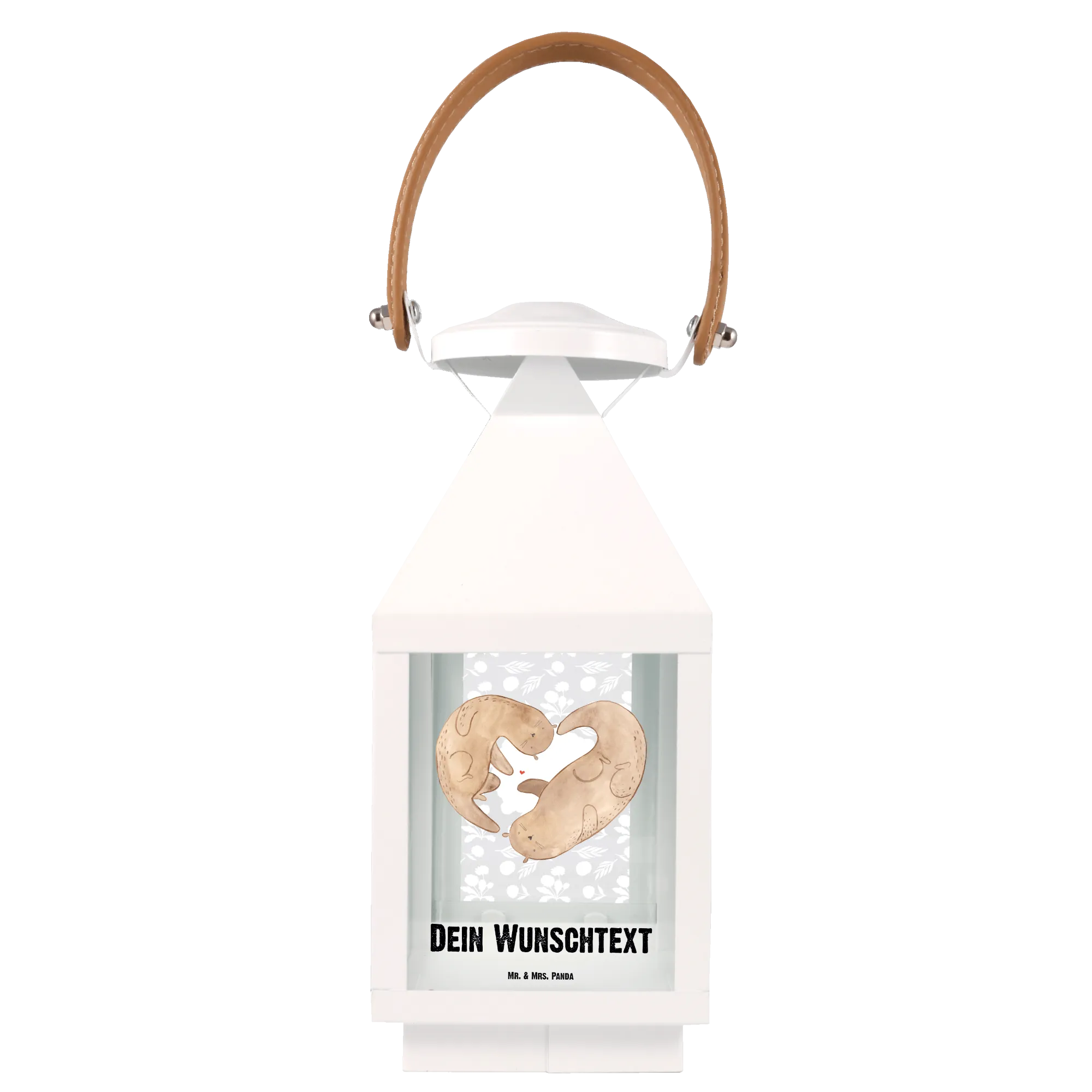 Die personalisierte Deko Laterne 'Otter Herz' von Mr. & Mrs. Panda ist das perfekte Geschenk für alle, die Liebe und Gemütlichkeit in ihrem Garten oder auf dem Balkon schätzen. Mit ihrem liebevollen Design, das einen niedlichen Otter zeigt, der ein Herz hält, zaubert diese Laterne sofort ein Lächeln auf dein Gesicht.