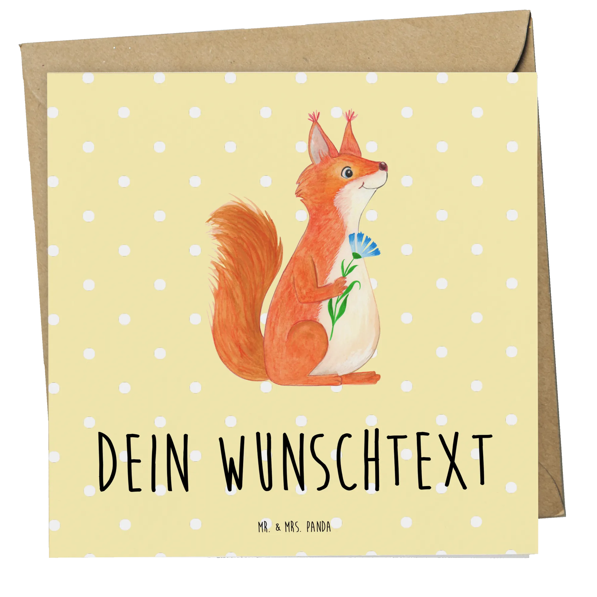 Mr. & Mrs. Panda – Personalisierte Deluxe Karte „Eichhörnchen Blume“