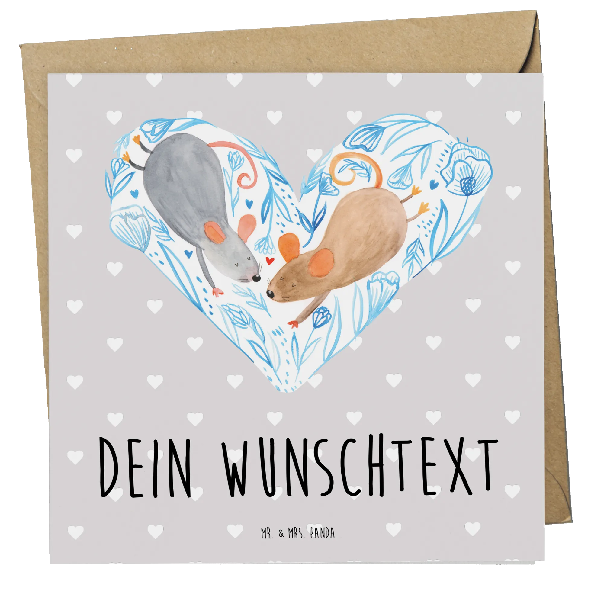 Personalisierte Deluxe Karte Mäuse Herz – Mr. & Mrs. Panda