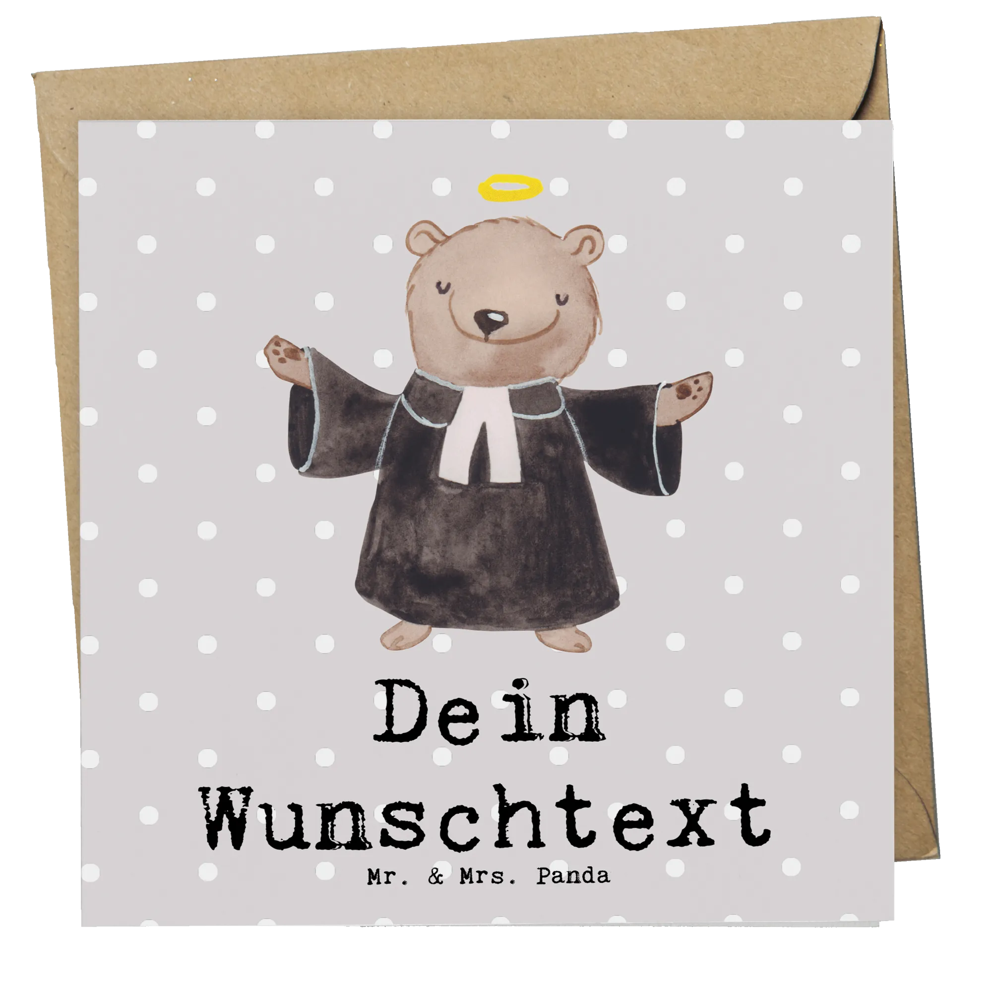 Die Karte ist aus hochwertigem 300 Gramm Karton gefertigt und hat eine edle, hochglänzende Vorderseite mit einem bezaubernden Motiv: Ein süßer Bär in einer Priesterrobe, der seine Hände zum Segen hebt. Dazu kommt der witzige Slogan: "Du bist nur ein halber Mensch, wenn du kein Religionslehrer bist!" Diese kreative und persönliche Note macht die Karte unverwechselbar.