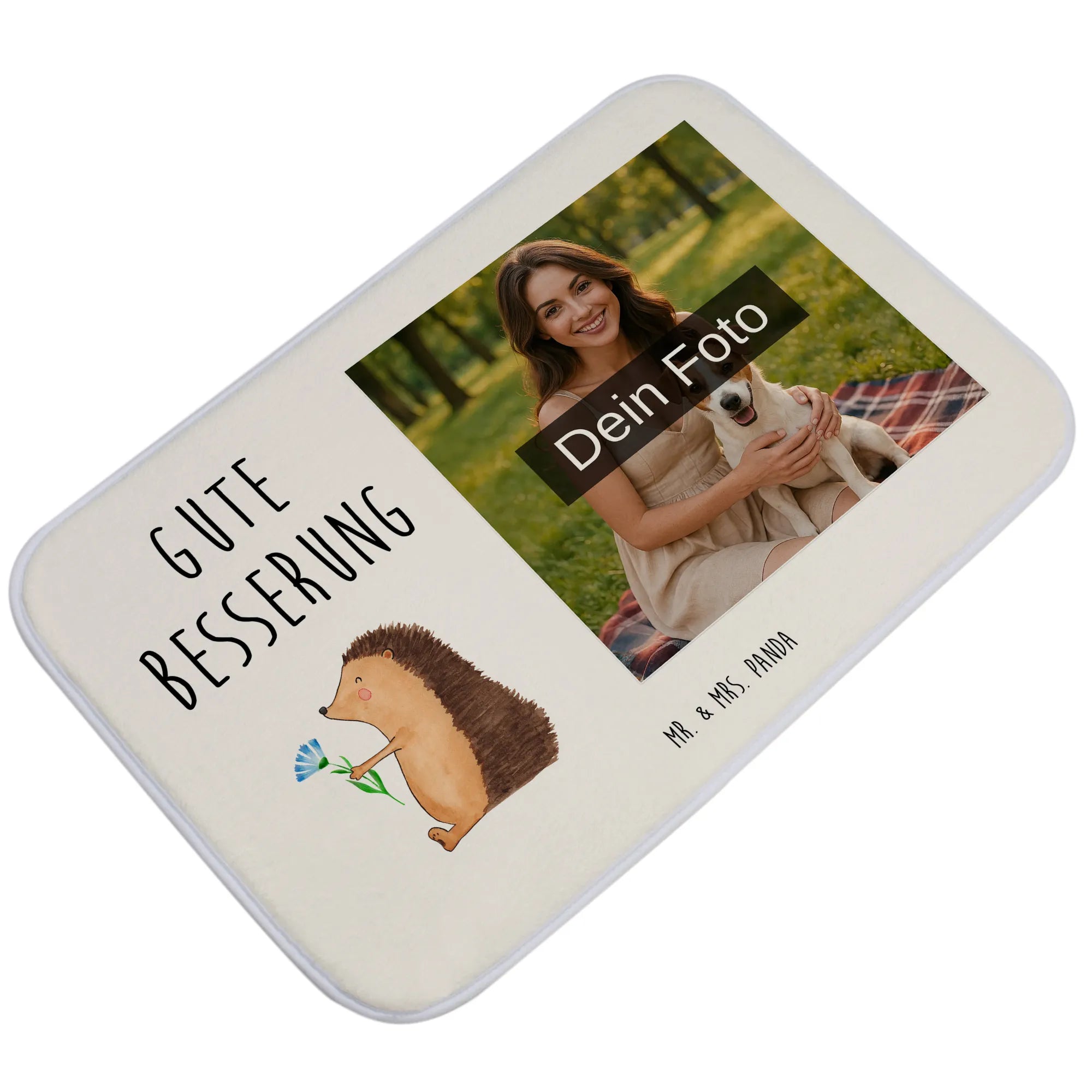 Personalisierte Foto Badematte Igel Blumen – Mr. & Mrs. Panda