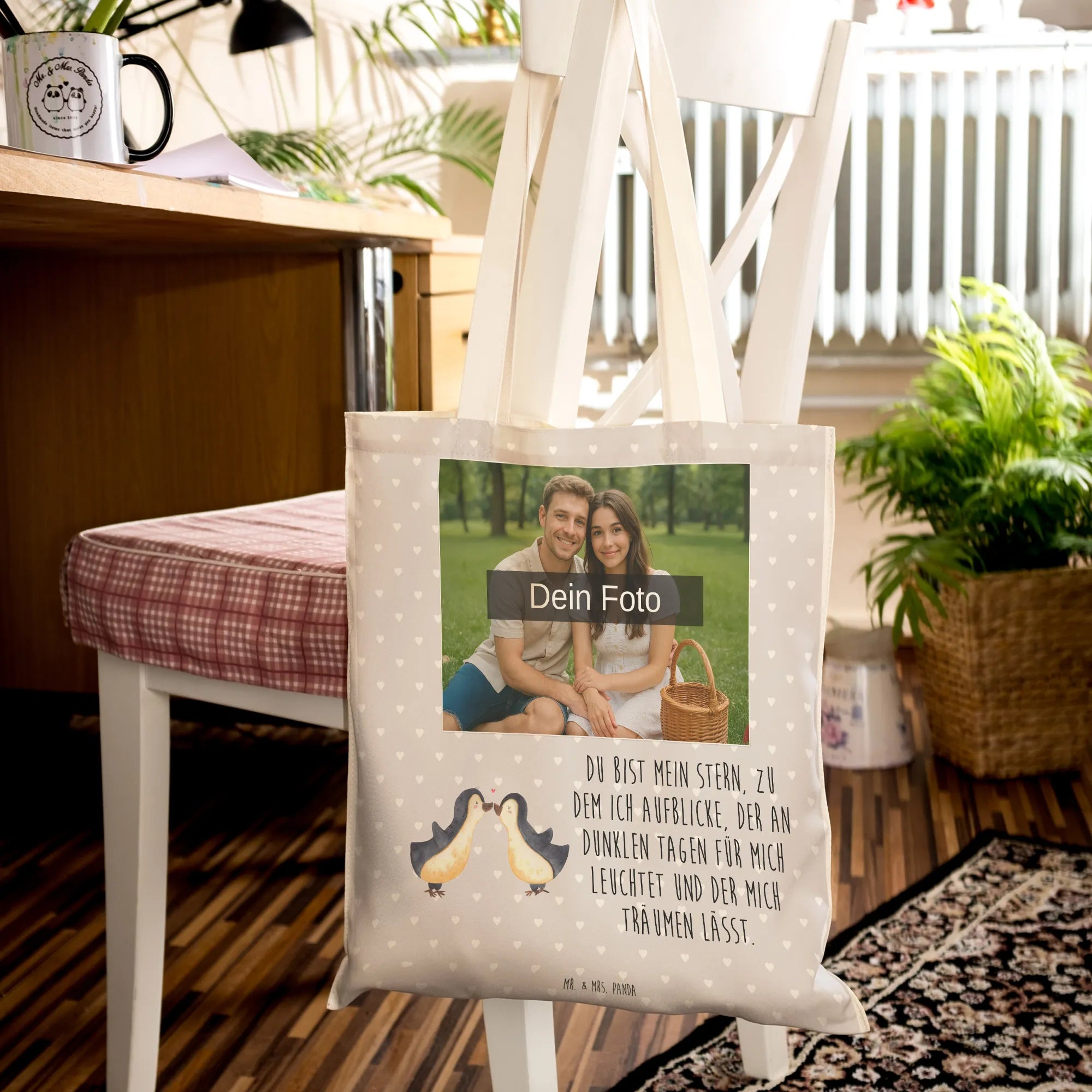 Personalisierte Foto Einkaufstasche Pinguin Liebe